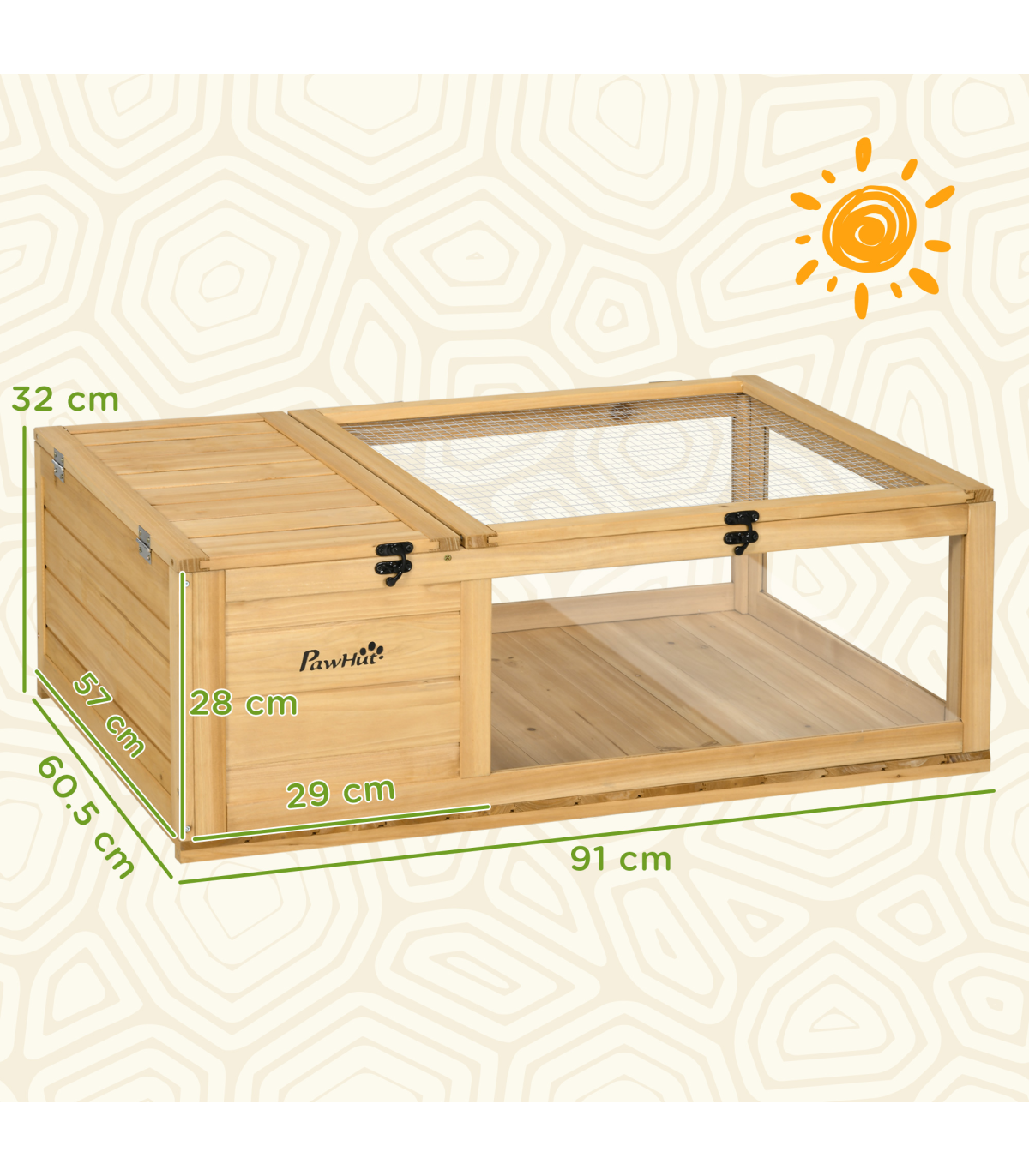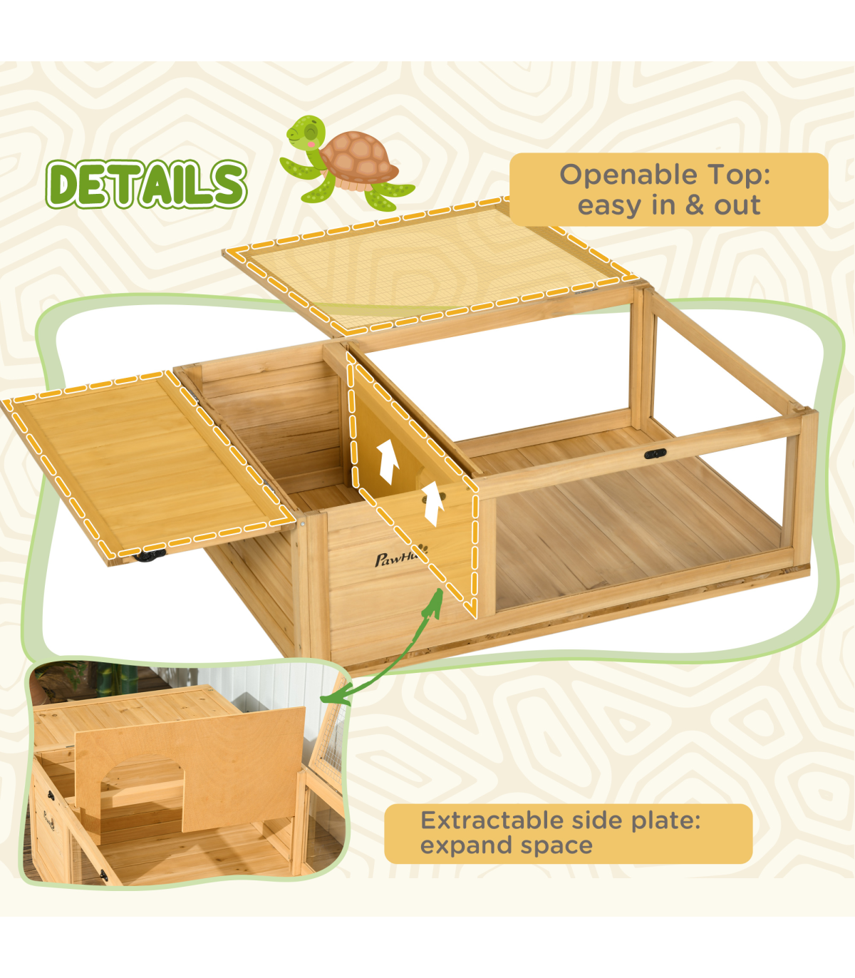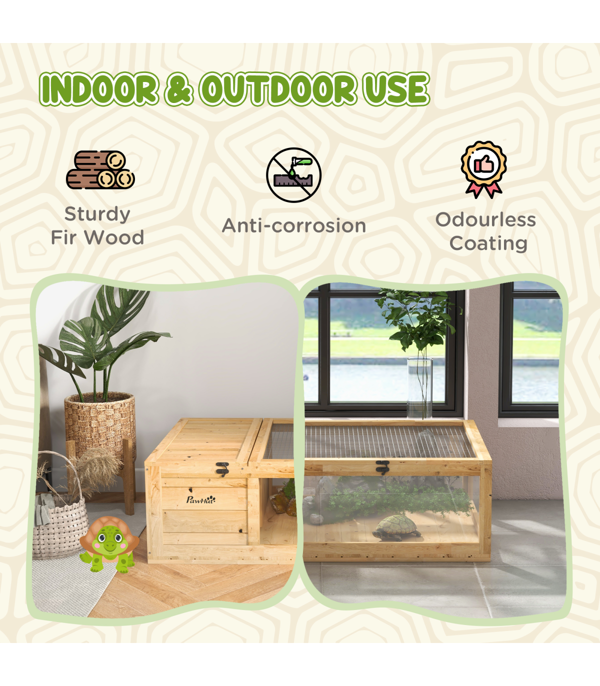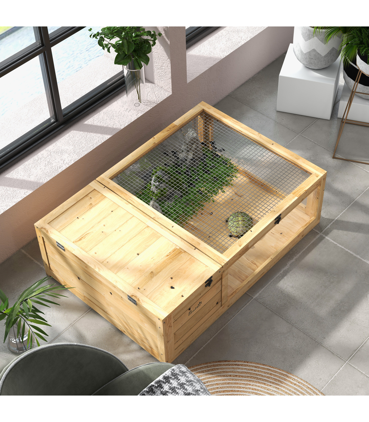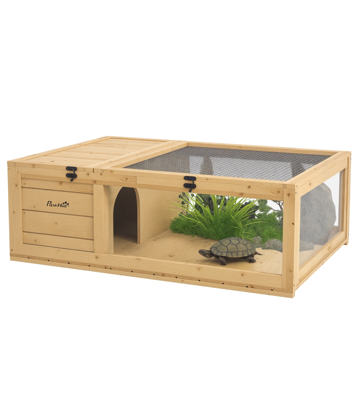 ● Ultraviolet and heat lamps can be used with this tortoise house
