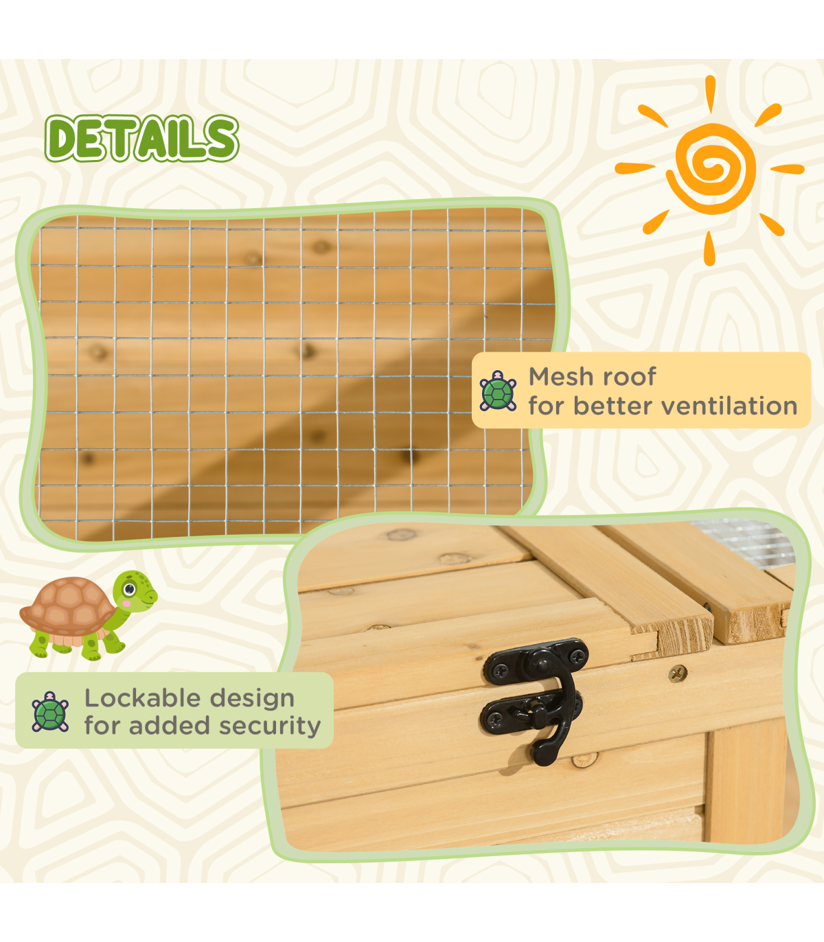 ● The mesh roof lets air flow through, keeping their space ventilated