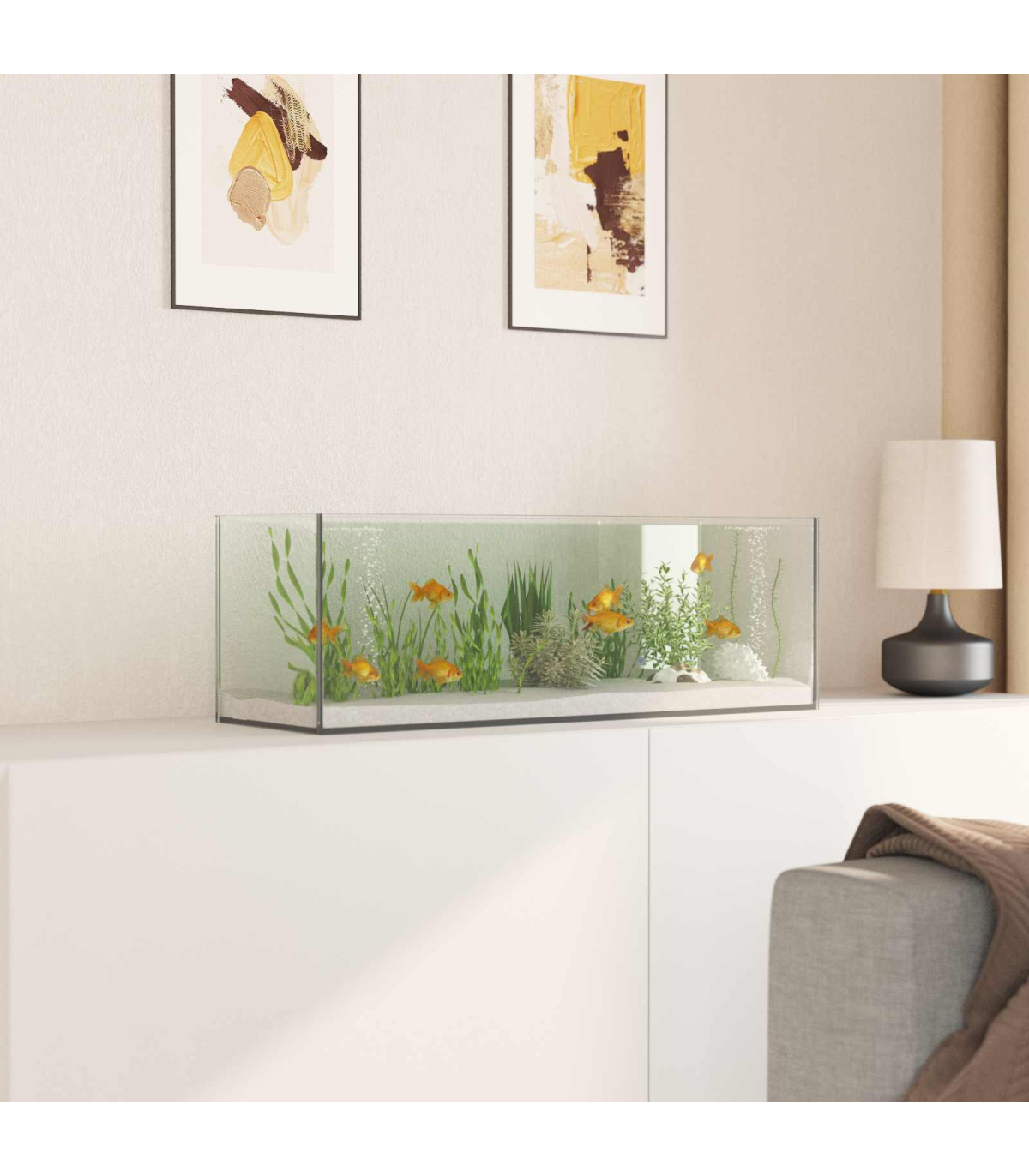 This modern Glass Aquarium is crafted for both simplicity and functionality, offering a stylish and safe home for your aquatic life. With its sleek, minimalist design, the aquarium becomes a focal point in any room, fitting seamlessly with various decors. Its rectangular shape enhances the visual appeal while providing a stunning 360-degree full view, allowing fish enthusiasts to observe their aquatic pets from every angle. The aquarium's transparency offers a clear and unobstructed view of your vibrant fish and aquatic plants, creating a serene visual experience. Durable Glass Build This aquarium features premium glass that provides a robust and clear enclosure for your aquatic life. The smooth texture of the glass helps in maintaining cleanliness and is easy to wipe down. Its transparency ensures every interaction within the aquarium is perfectly visible, bringing life to your aquatic world while maintaining a solid barrier against external elements. Safe and Smooth Edges Designed with safety in mind, the edges of the aquarium are polished to prevent injury to your hands. Smooth transitions keep both you and your aquatic pets secure from any harm, giving you peace of mind and more freedom to enjoy and interact with your aquarium environment. 360-Degree Full View Experience aquascapes from every imaginable angle. The 360-degree perspective offers a complete panorama of your fish and plants, enabling a fully immersive experience. Whether placing it on a central tabletop or tucked into a corner, this feature ensures no detail goes unnoticed. Leakproof Construction Engineered with butt-jointed seams and leakproof material, this aquarium provides a solid and secure aquatic habitat. The attention to detail ensures water stays within the confines, protecting both your floor and your fish from undesirable consequences, fostering a stable, vibrant aquatic environment. Stable and Shockproof Built to endure, the aquarium's glass construction is designed for both stability and shock resistance. It stands firmly even in busy households and manages small impact events gracefully. This ensures the safety of your underwater environment, providing long-term protection and usability.