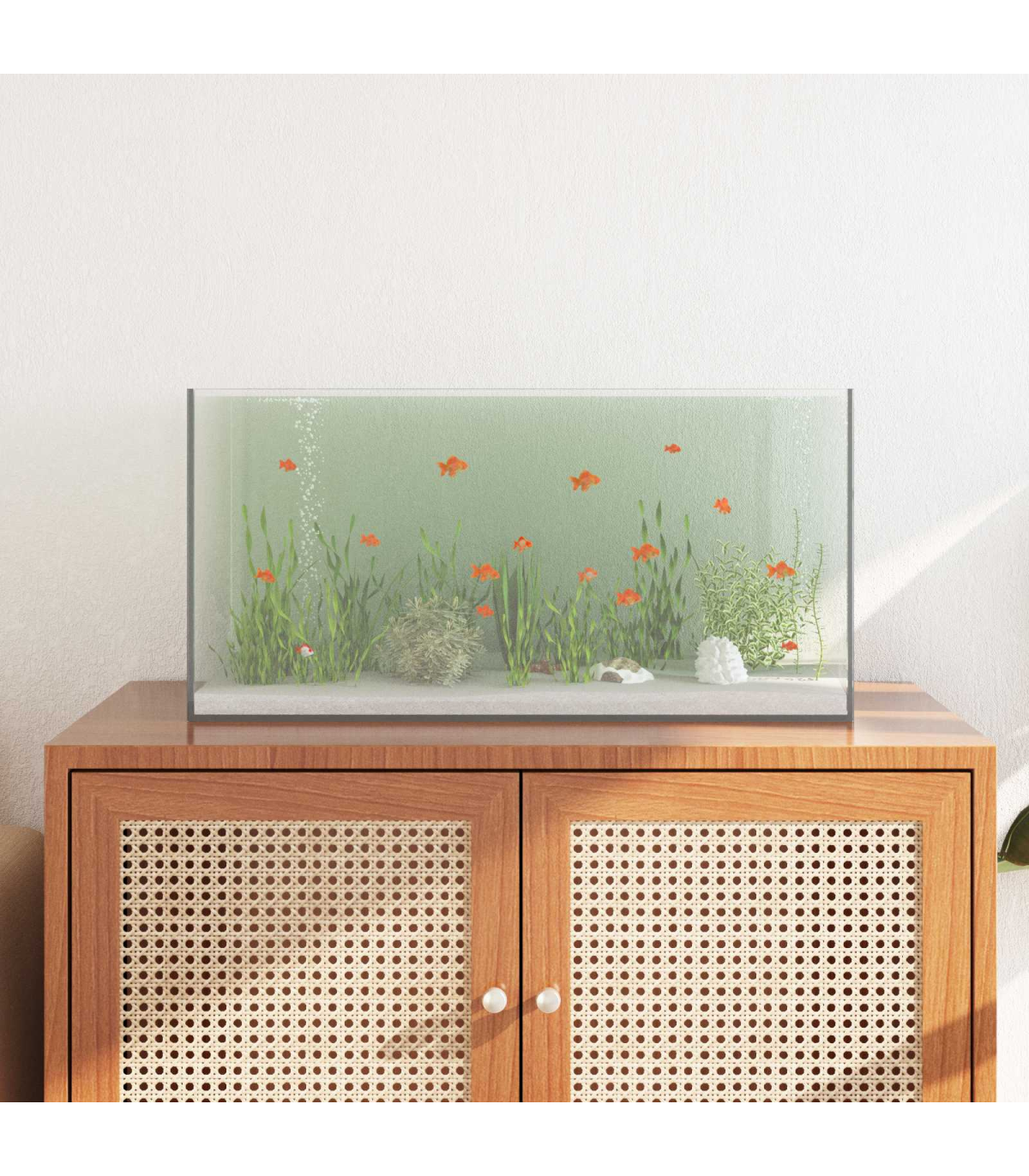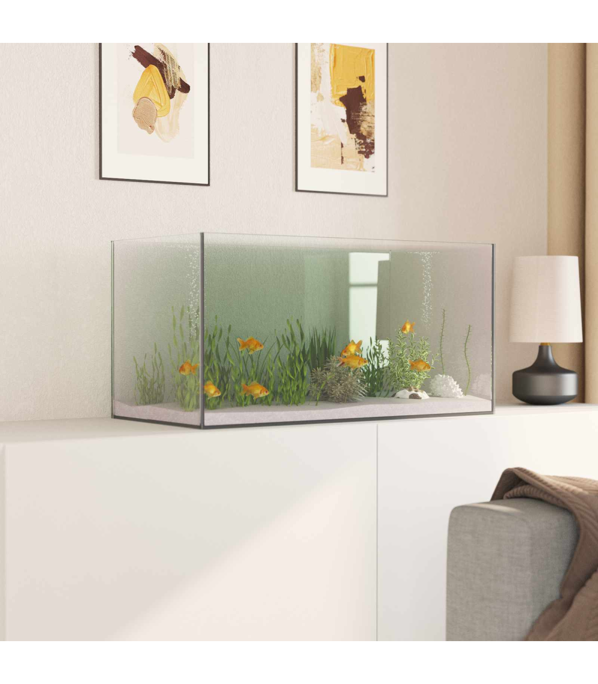 This modern Glass Aquarium is crafted for both simplicity and functionality, offering a stylish and safe home for your aquatic life. With its sleek, minimalist design, the aquarium becomes a focal point in any room, fitting seamlessly with various decors. Its rectangular shape enhances the visual appeal while providing a stunning 360-degree full view, allowing fish enthusiasts to observe their aquatic pets from every angle. The aquarium's transparency offers a clear and unobstructed view of your vibrant fish and aquatic plants, creating a serene visual experience. Durable Glass Build This aquarium features premium glass that provides a robust and clear enclosure for your aquatic life. The smooth texture of the glass helps in maintaining cleanliness and is easy to wipe down. Its transparency ensures every interaction within the aquarium is perfectly visible, bringing life to your aquatic world while maintaining a solid barrier against external elements. Safe and Smooth Edges Designed with safety in mind, the edges of the aquarium are polished to prevent injury to your hands. Smooth transitions keep both you and your aquatic pets secure from any harm, giving you peace of mind and more freedom to enjoy and interact with your aquarium environment. 360-Degree Full View Experience aquascapes from every imaginable angle. The 360-degree perspective offers a complete panorama of your fish and plants, enabling a fully immersive experience. Whether placing it on a central tabletop or tucked into a corner, this feature ensures no detail goes unnoticed. Leakproof Construction Engineered with butt-jointed seams and leakproof material, this aquarium provides a solid and secure aquatic habitat. The attention to detail ensures water stays within the confines, protecting both your floor and your fish from undesirable consequences, fostering a stable, vibrant aquatic environment. Stable and Shockproof Built to endure, the aquarium's glass construction is designed for both stability and shock resistance. It stands firmly even in busy households and manages small impact events gracefully. This ensures the safety of your underwater environment, providing long-term protection and usability.