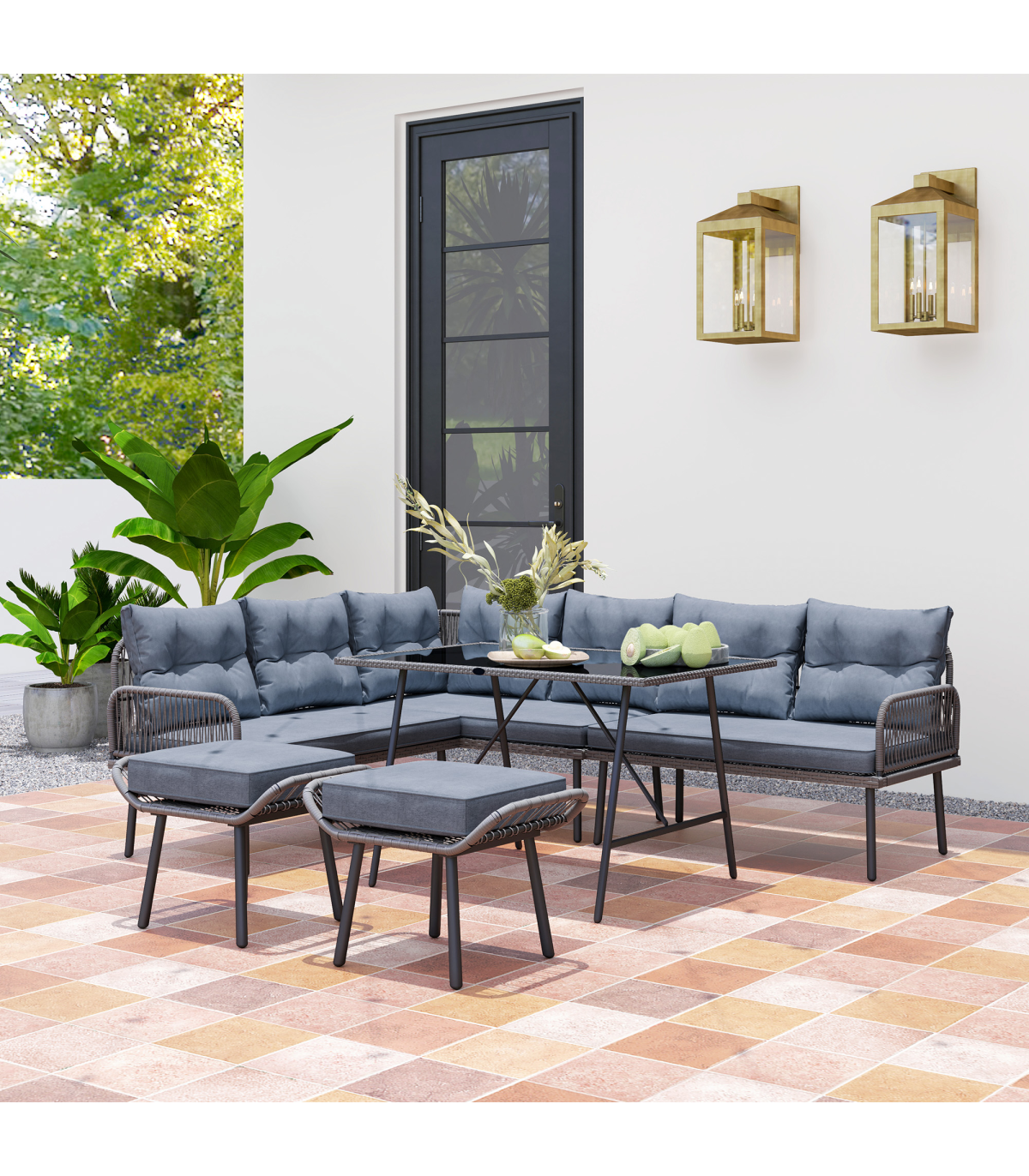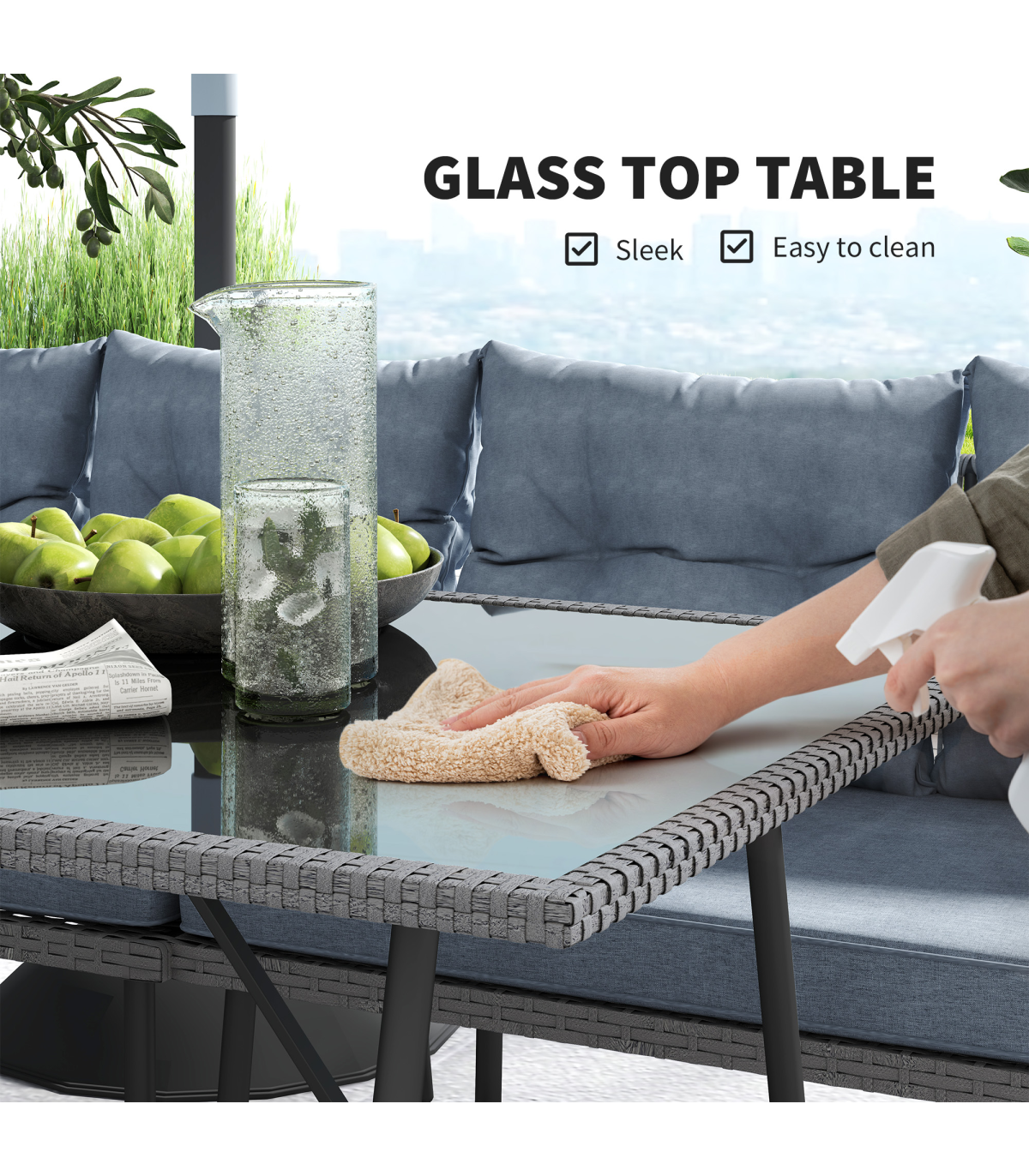 Outsunny Sectional Outdoor Furniture with Glass Top Table, Charcoal Grey