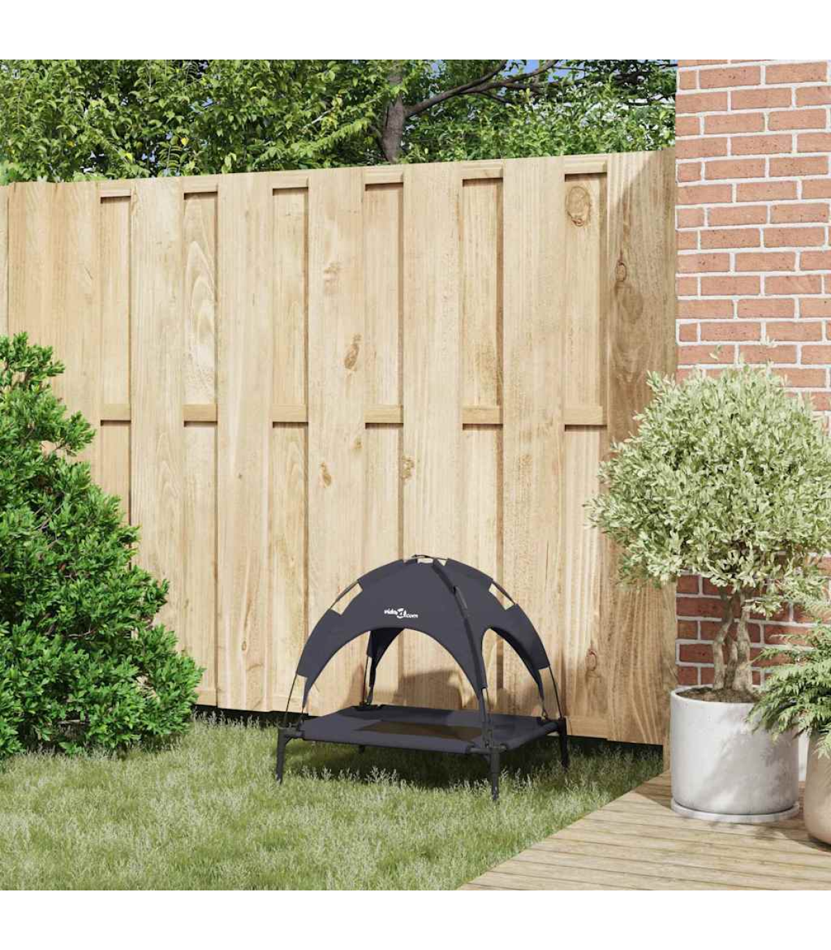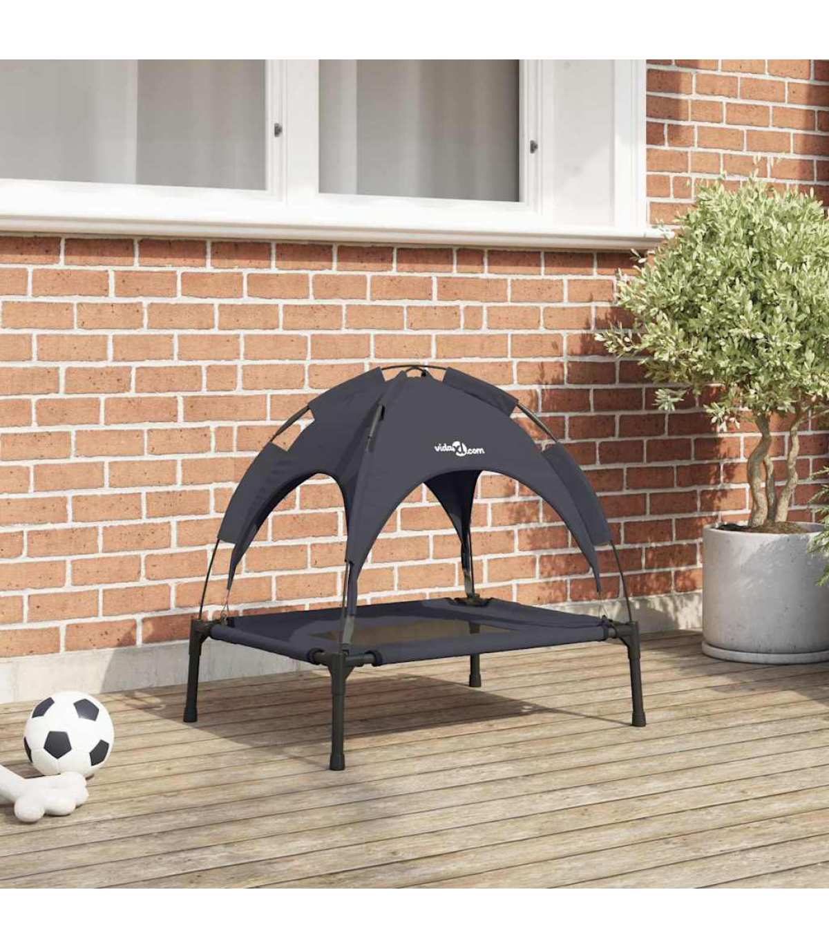 This dog bed with canopy is a comfortable and practical sleeping solution for your furry friend. Long-lasting and breathable material: The elevated dog bed is made of Oxford fabric and textilene, making it durable and suitable for daily outdoor use.Sturdy and stable frame: The powder-coated steel frame ensures the sturdiness and durability of the raised dog bed. The four non-slip rubber feet also add extra stability.Removable canopy: The dog couch bed comes with a removable canopy for full shade and protection.Elevated design: The dog bed keeps your dog out of dirt and moisture, providing a comfortable, dry sleeping surface.Wide applications: The dog bed cot is suitable for both indoor and outdoor use. It can be placed anywhere in the home, as well as on your porch, patio, or backyard.