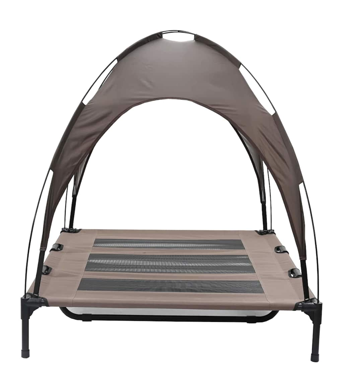 This dog bed with canopy is a comfortable and practical sleeping solution for your furry friend. Long-lasting and breathable material: The elevated dog bed is made of Oxford fabric and textilene, making it durable and suitable for daily outdoor use.Sturdy and stable frame: The powder-coated steel frame ensures the sturdiness and durability of the raised dog bed. The four non-slip rubber feet also add extra stability.Removable canopy: The dog couch bed comes with a removable canopy for full shade and protection.Elevated design: The dog bed keeps your dog out of dirt and moisture, providing a comfortable, dry sleeping surface.Wide applications: The dog bed cot is suitable for both indoor and outdoor use. It can be placed anywhere in the home, as well as on your porch, patio, or backyard.