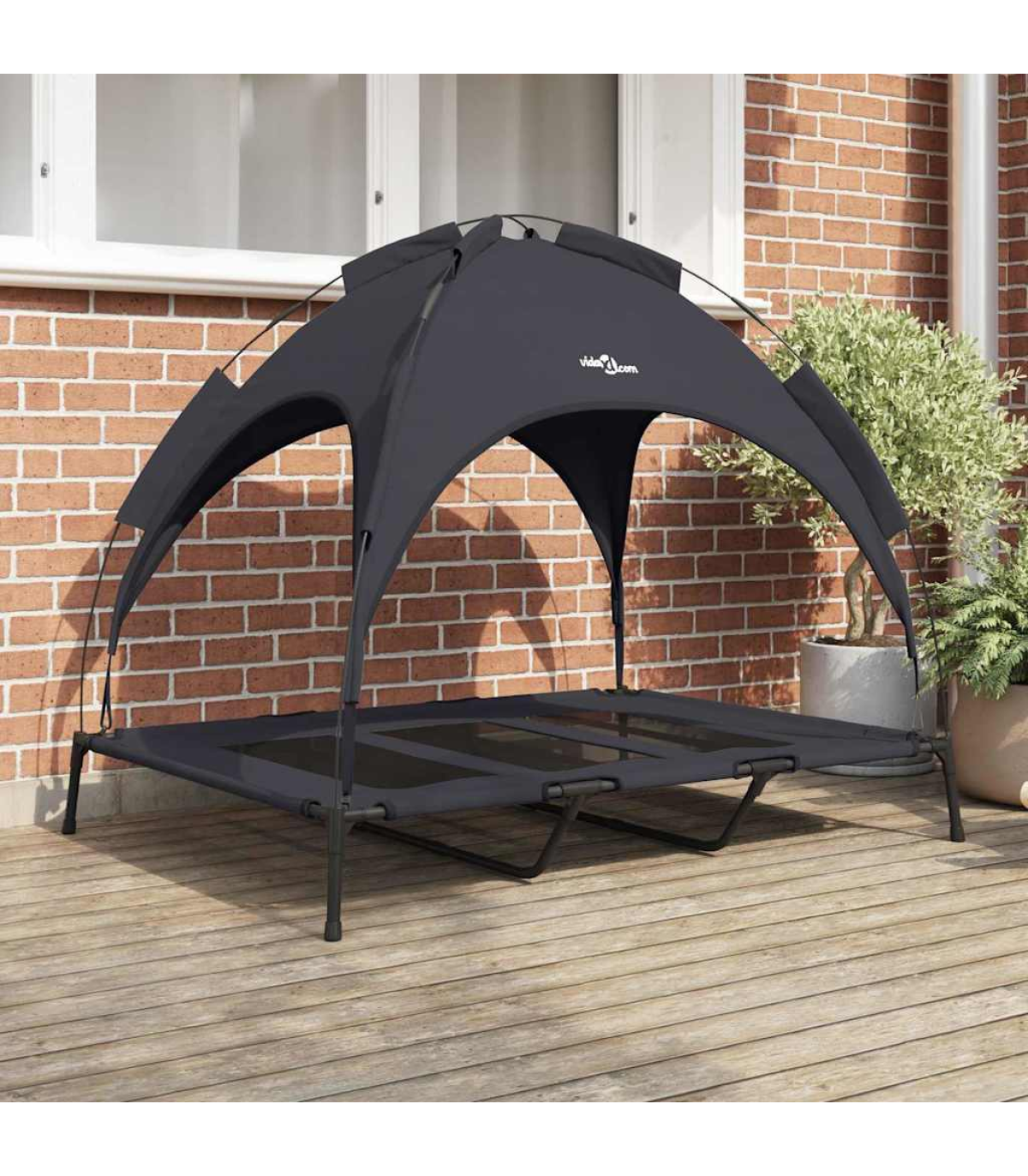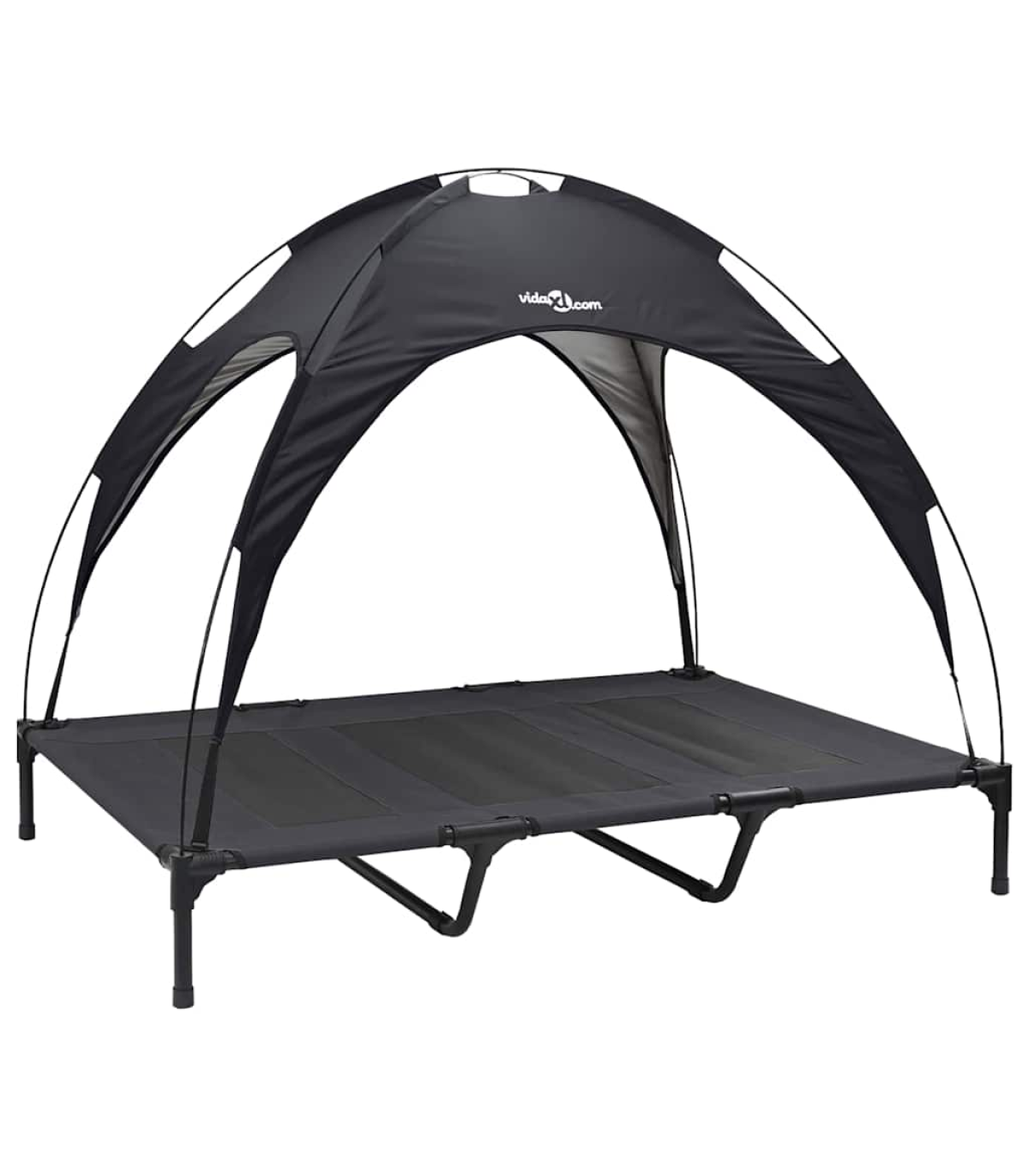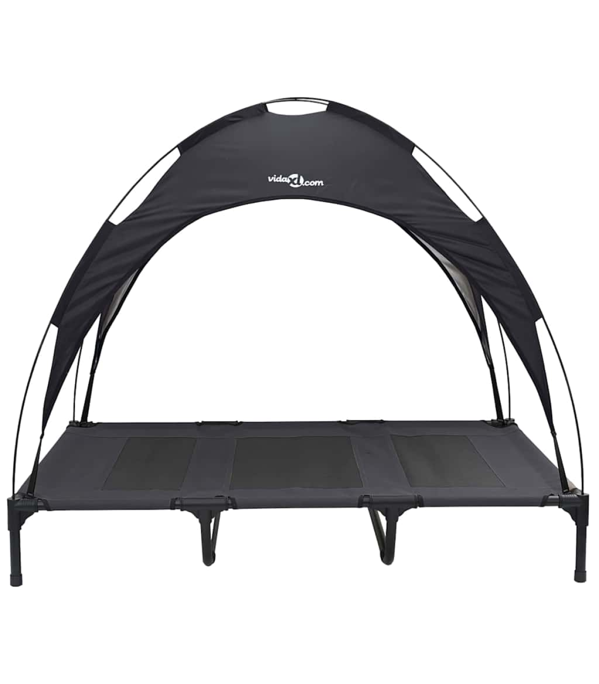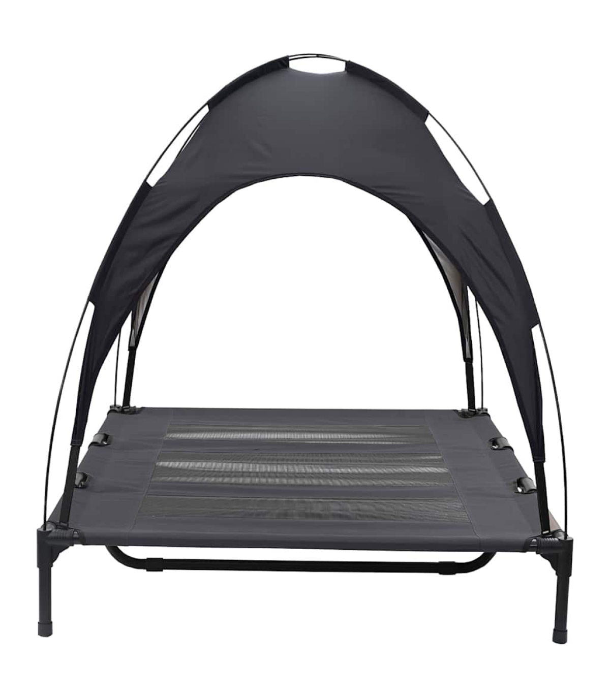 This dog bed with canopy is a comfortable and practical sleeping solution for your furry friend. Long-lasting and breathable material: The elevated dog bed is made of Oxford fabric and textilene, making it durable and suitable for daily outdoor use.Sturdy and stable frame: The powder-coated steel frame ensures the sturdiness and durability of the raised dog bed. The four non-slip rubber feet also add extra stability.Removable canopy: The dog couch bed comes with a removable canopy for full shade and protection.Elevated design: The dog bed keeps your dog out of dirt and moisture, providing a comfortable, dry sleeping surface.Wide applications: The dog bed cot is suitable for both indoor and outdoor use. It can be placed anywhere in the home, as well as on your porch, patio, or backyard.