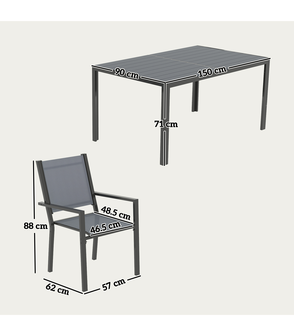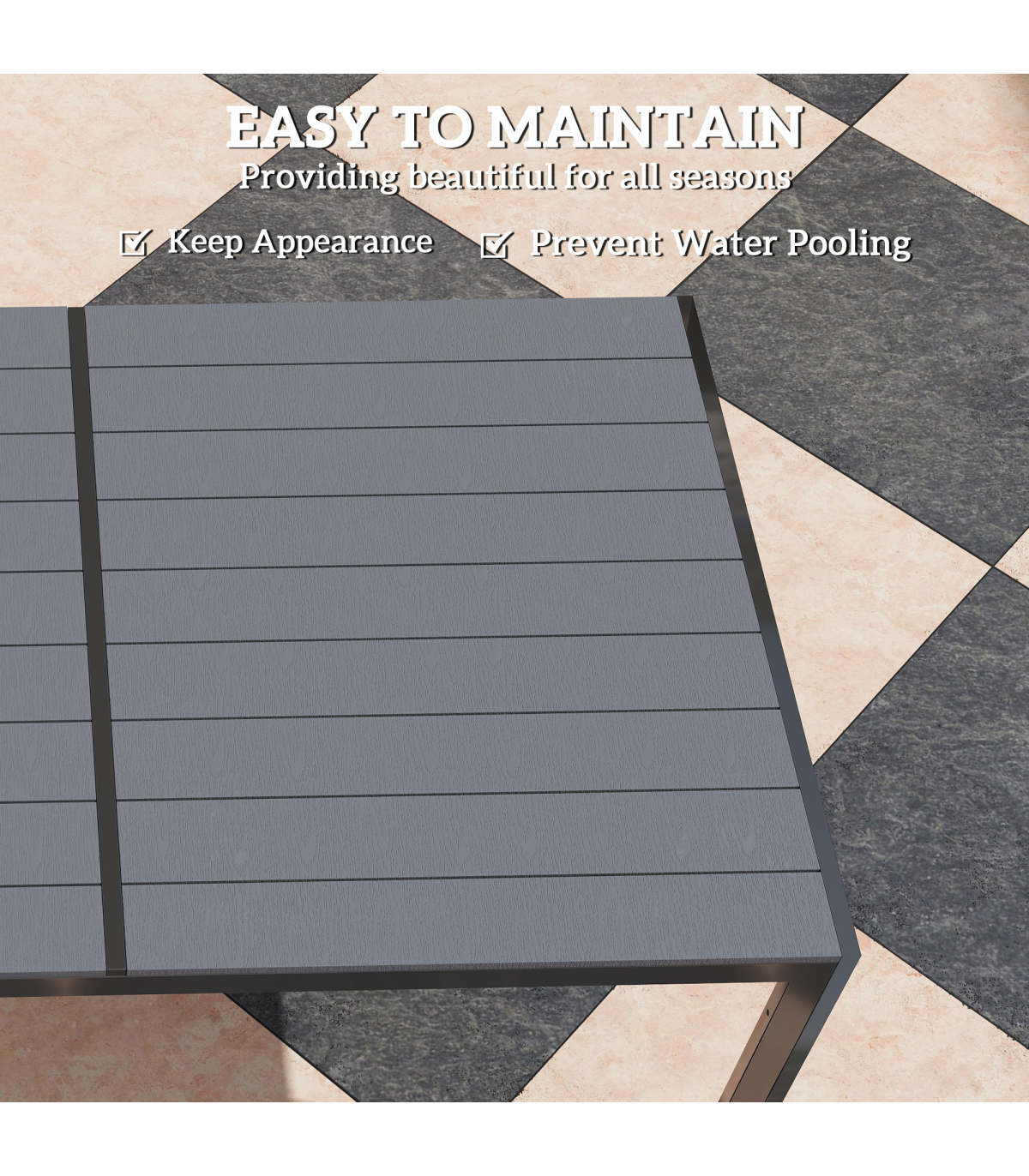 ● All-weather, 150 cm rectangular table, wood-plastic composite, slatted design
