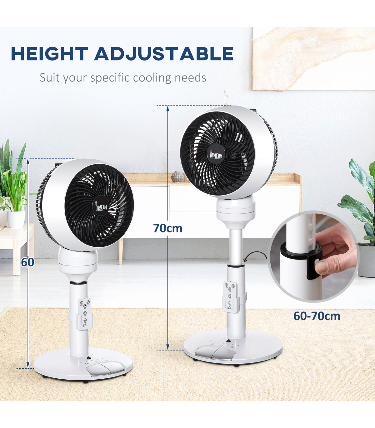 - 70 oscillation, 90 vertical tilt and 360 movement direct the airflow exactly where you want
