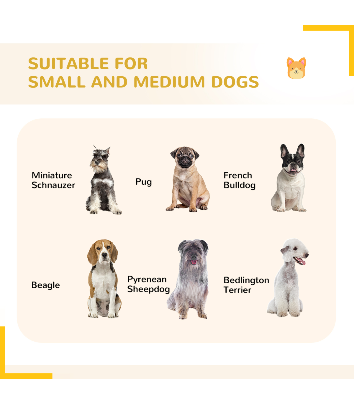 - Suitable for medium and small dogs up to 50cm in shoulder height