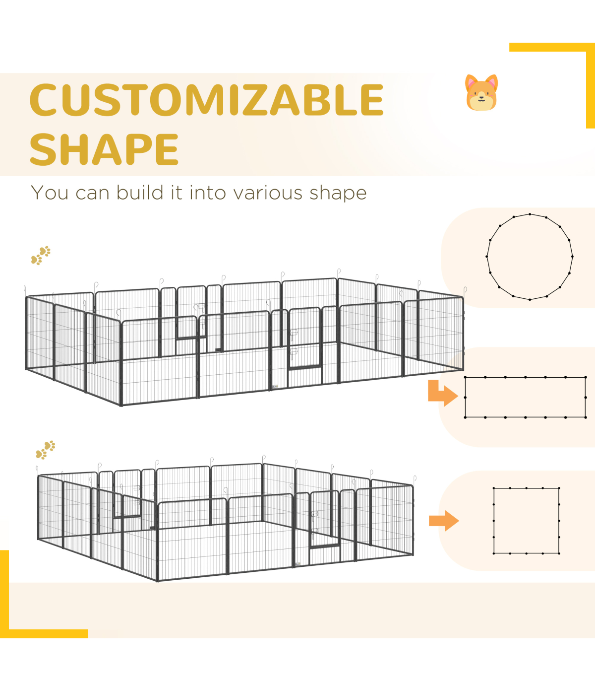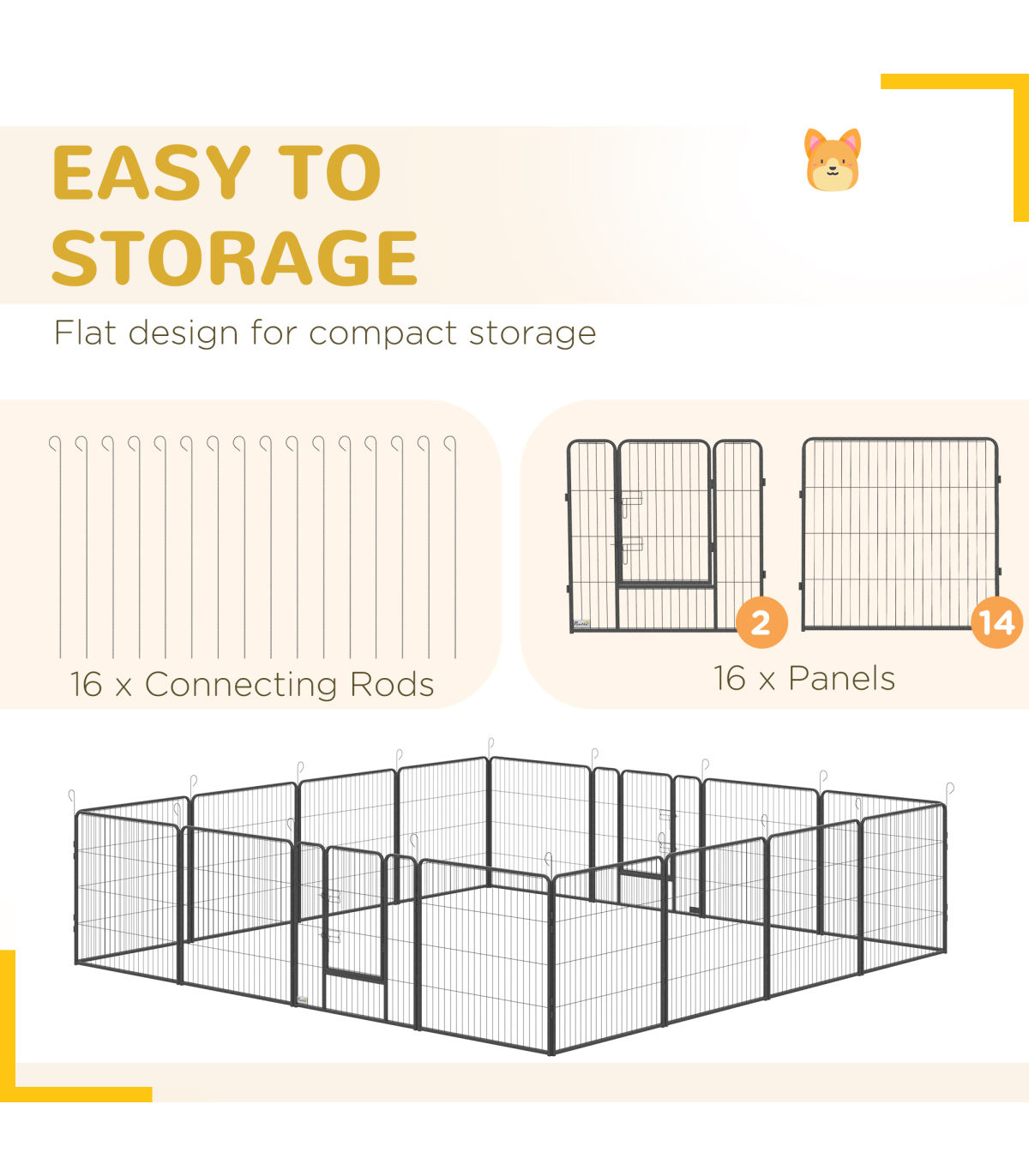 - Easy to store: Dog fence can be easily disassembled, making it flat and compact for convenient storage and transportation.