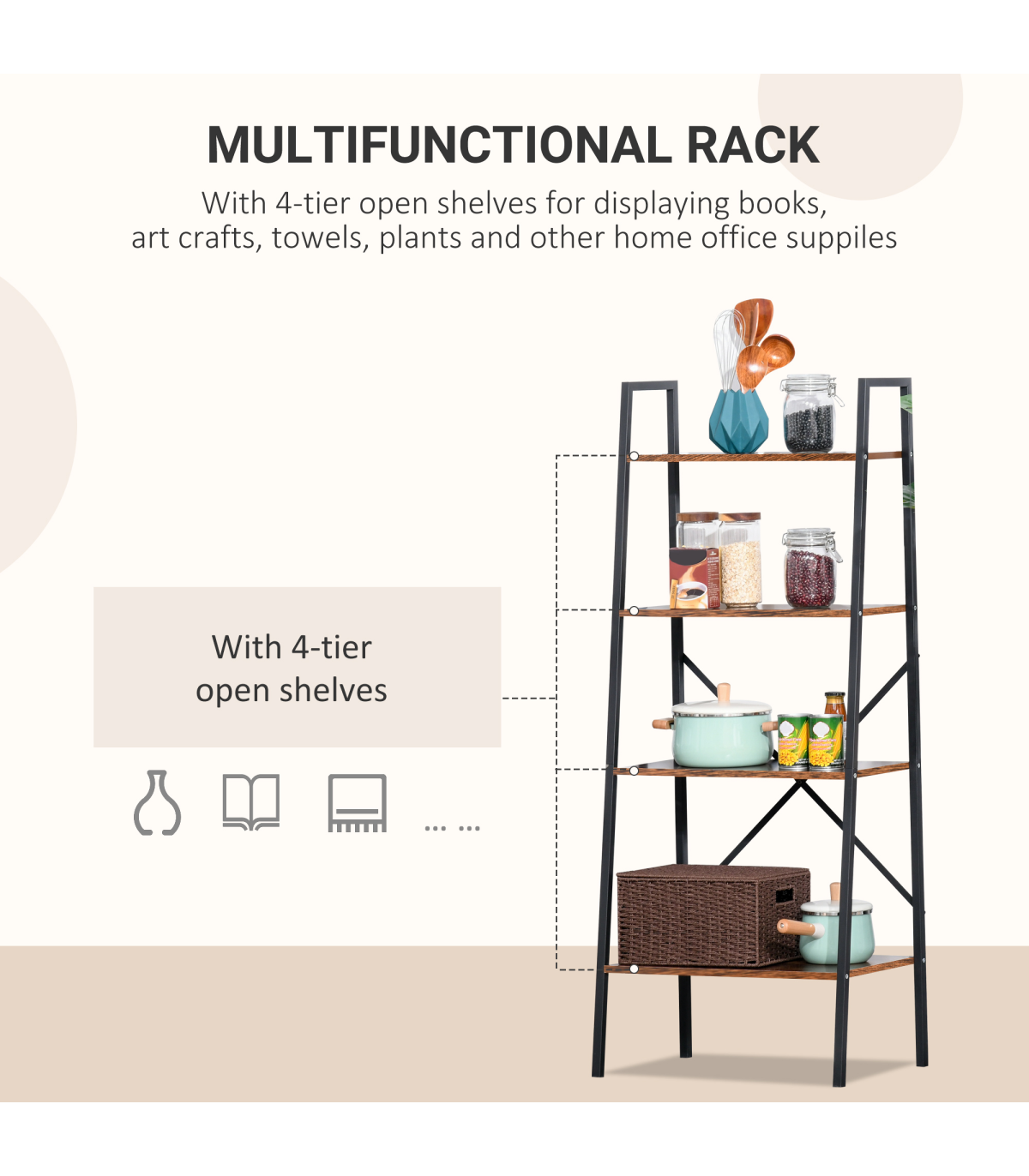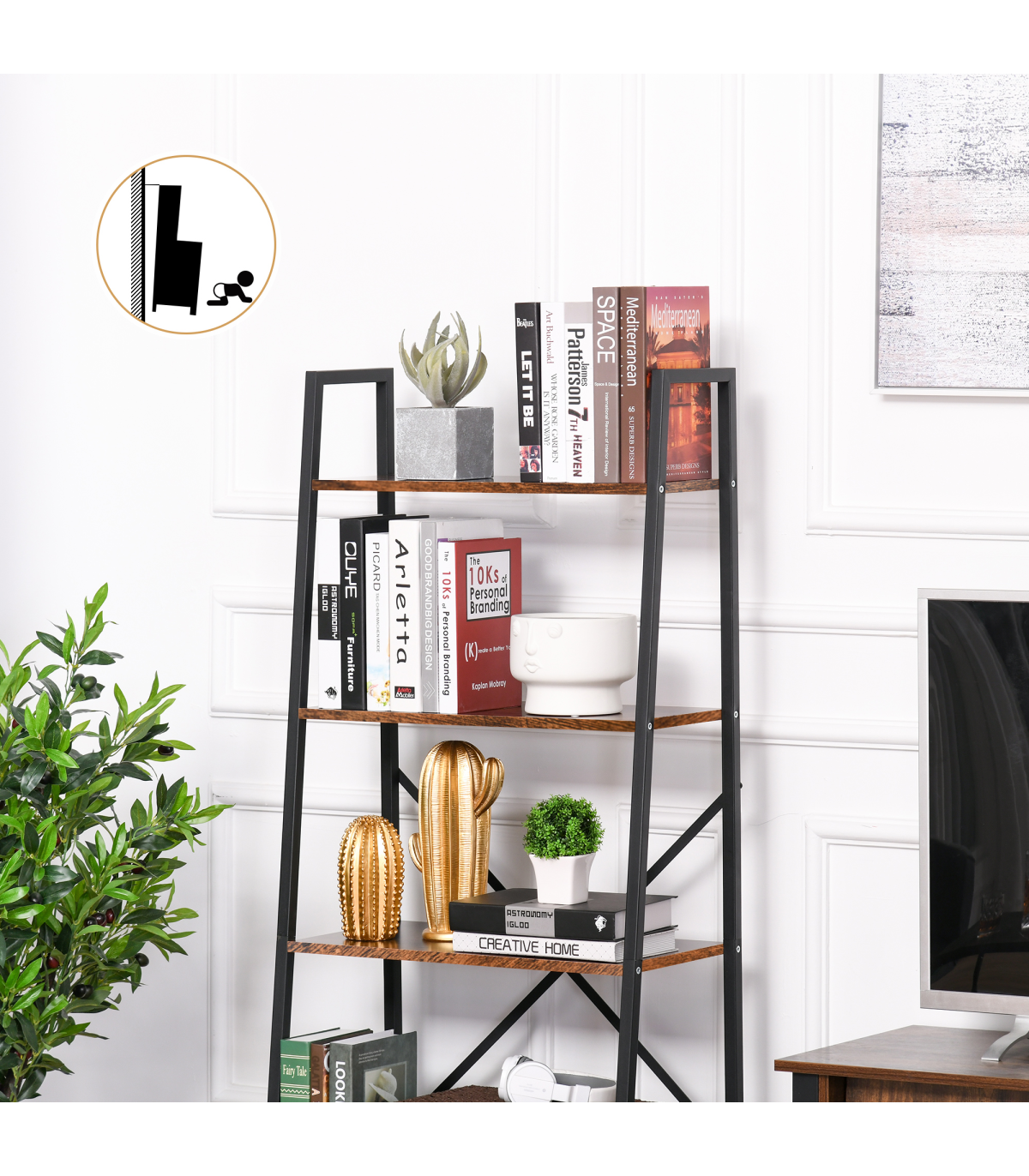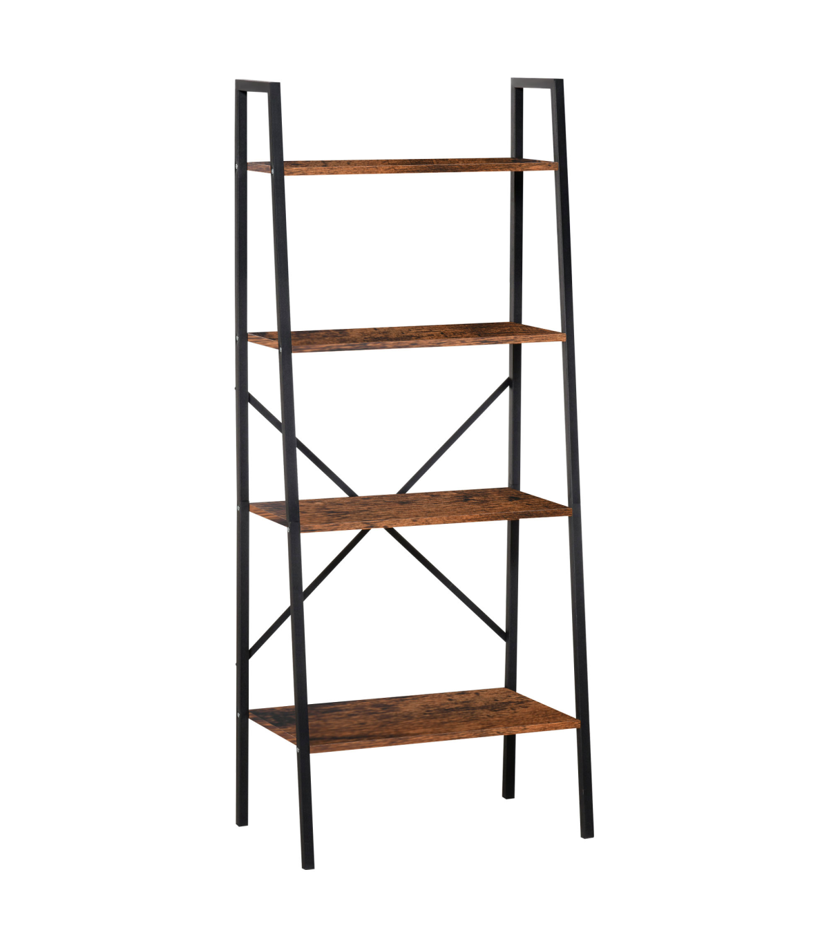 The 4-Tier Minimalistic Ladder Shelf Unit is designed with four wide shelves, providing plenty of display room for your ornaments, books, photos, and more. The steel frame ensures a sturdy and durable structure, while the MDF shelves offer a safe and even surface for display with a smooth and easy-to-clean melamine coating. The minimalistic look allows your items to stand out while blending into the background of your room. The unit also features foot caps for extra stability and floor protection. Assembly is required.