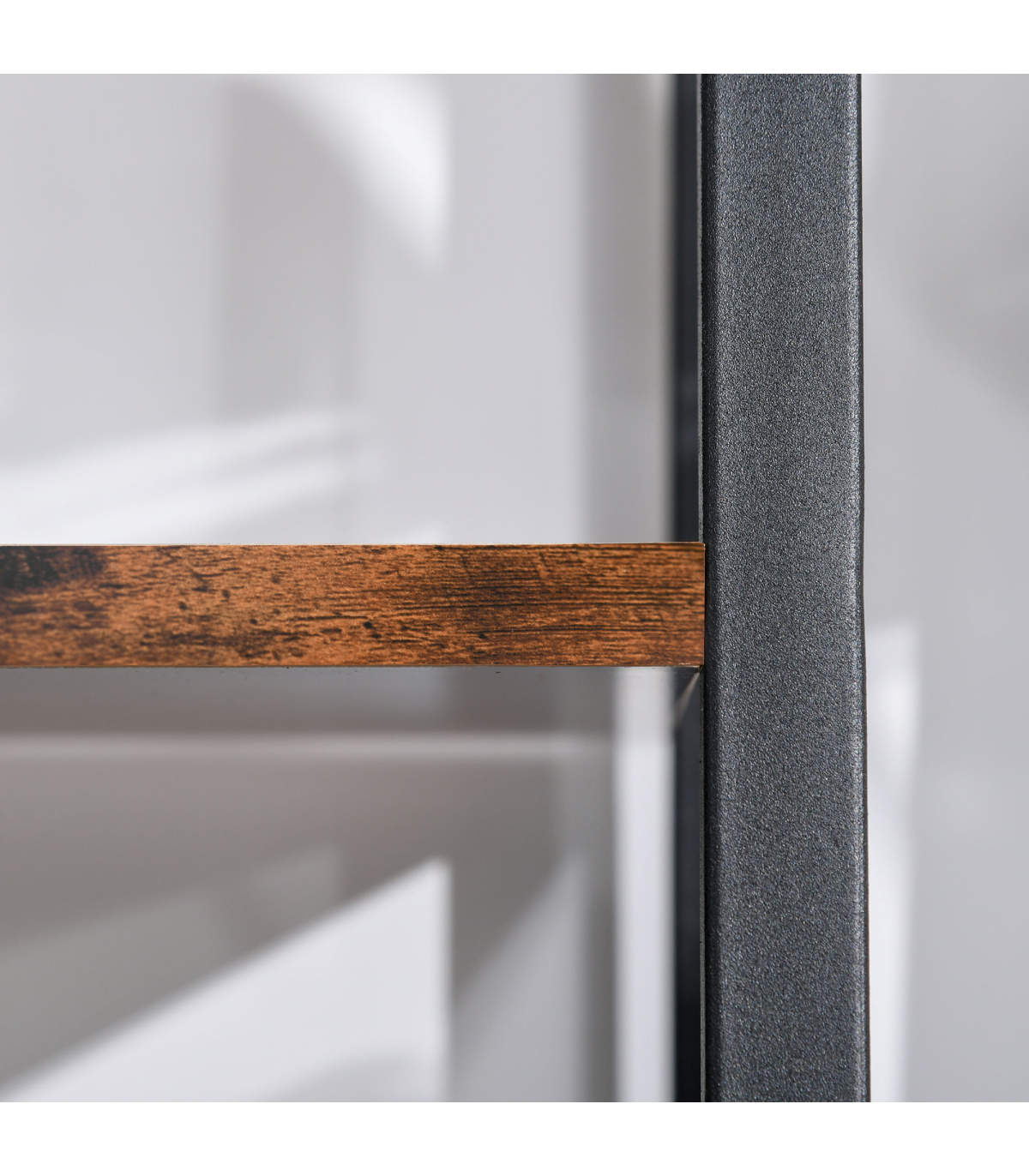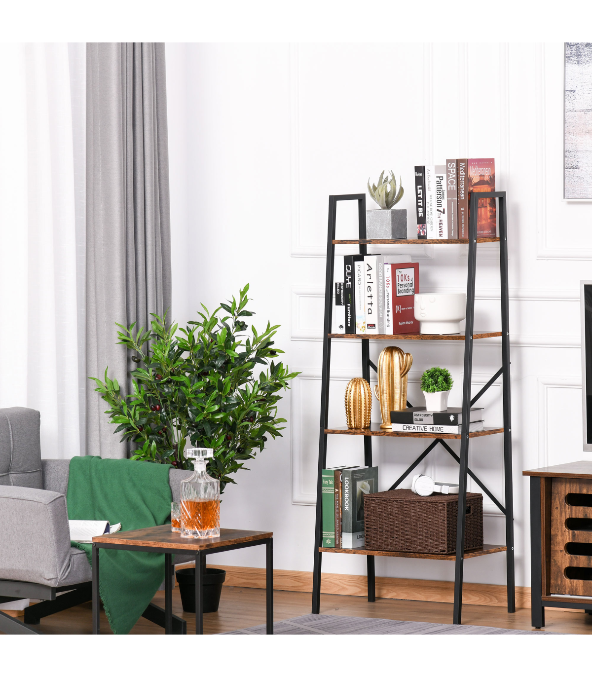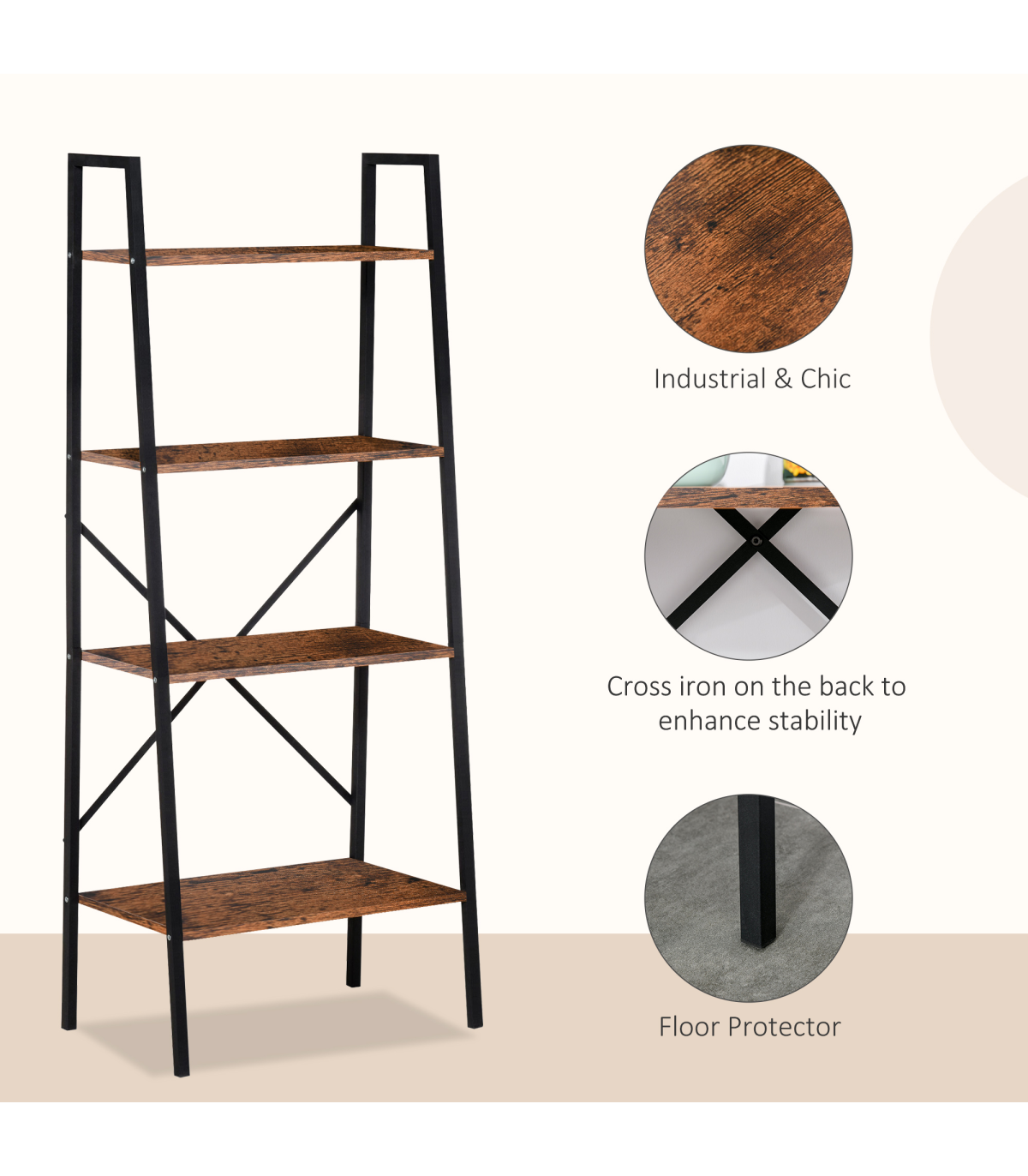 The 4-Tier Minimalistic Ladder Shelf Unit is designed with four wide shelves, providing plenty of display room for your ornaments, books, photos, and more. The steel frame ensures a sturdy and durable structure, while the MDF shelves offer a safe and even surface for display with a smooth and easy-to-clean melamine coating. The minimalistic look allows your items to stand out while blending into the background of your room. The unit also features foot caps for extra stability and floor protection. Assembly is required.