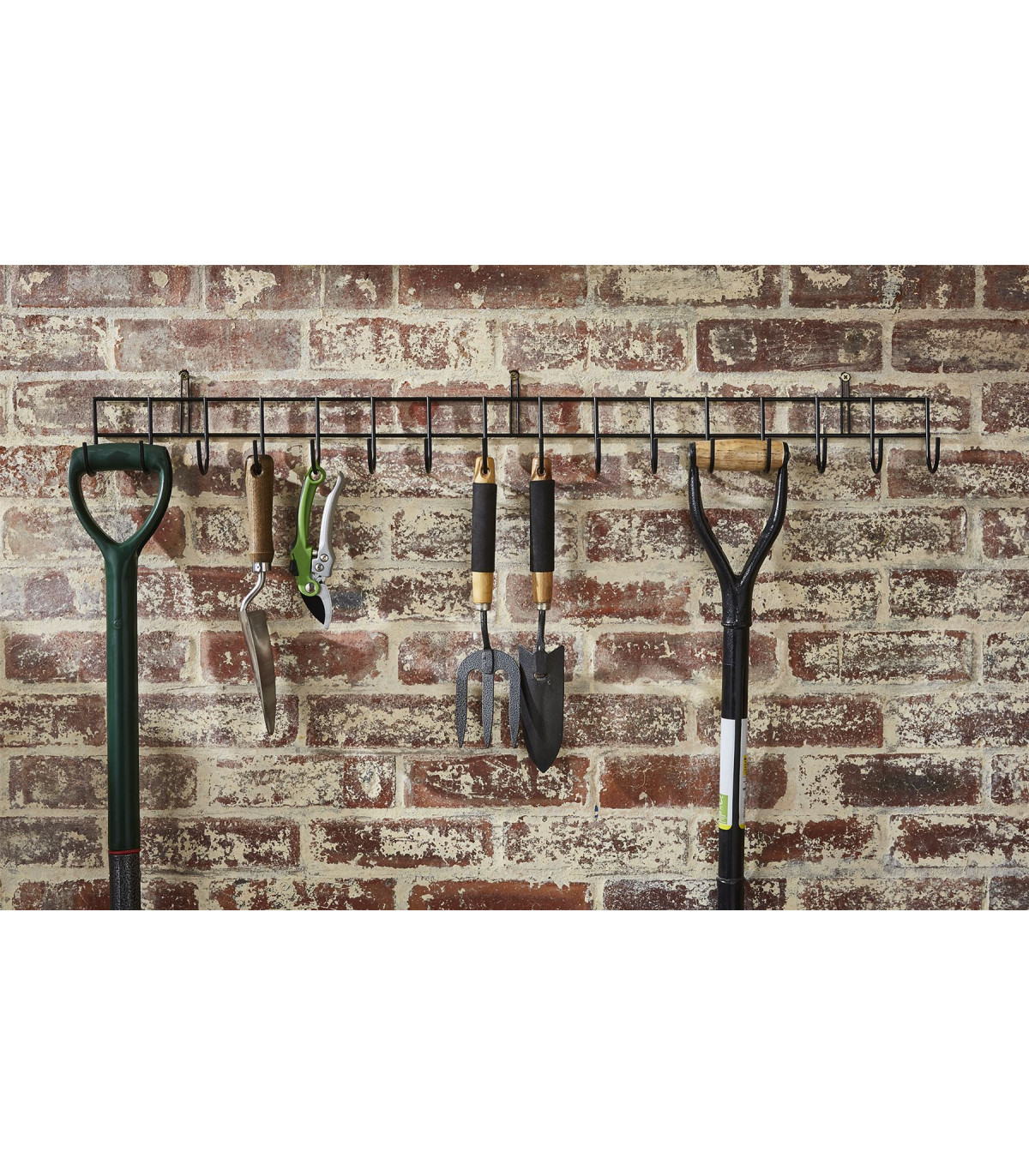 This Extra-Long Tool Rack in Black Powder Coating is a must-have for any home, garden shed, or garage. With 16 hooks, it provides ample space to keep your tools organized and easily accessible. The sturdy metal construction ensures durability, while the black powder coating adds a sleek touch to your space. Installation is a breeze with all the necessary fixings included. Please note that tools are not included.