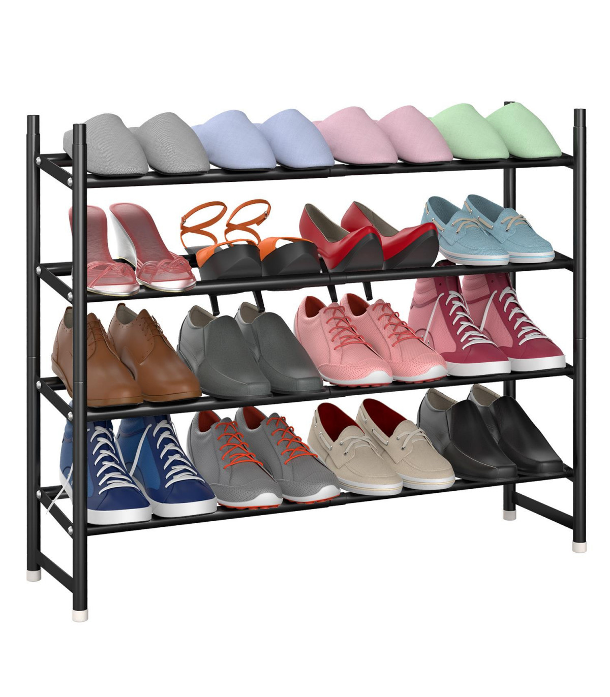 This 4 Tier Minimalist Shoe Rack is the perfect solution for keeping your hallway, entryway, or balcony organized and clutter-free. The sleek and modern design of the metal frame makes it suitable for various areas in your home such as entrances, corridors, closets, bedrooms, and laundry rooms. Made from high-quality metal pipes, this shoe rack is durable and anti-rusted, with foot pads to protect your floor from scratches and ensure stability.
