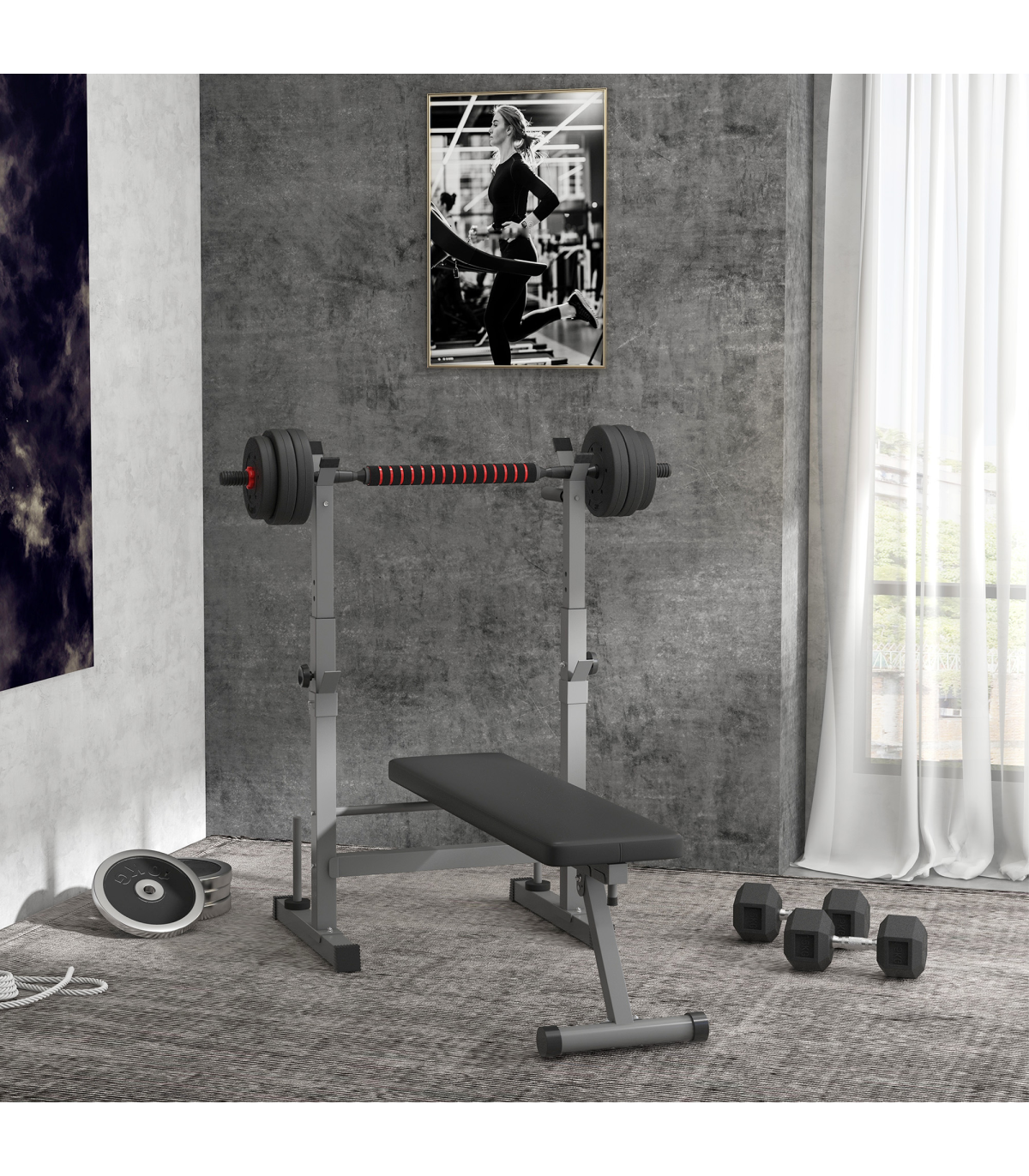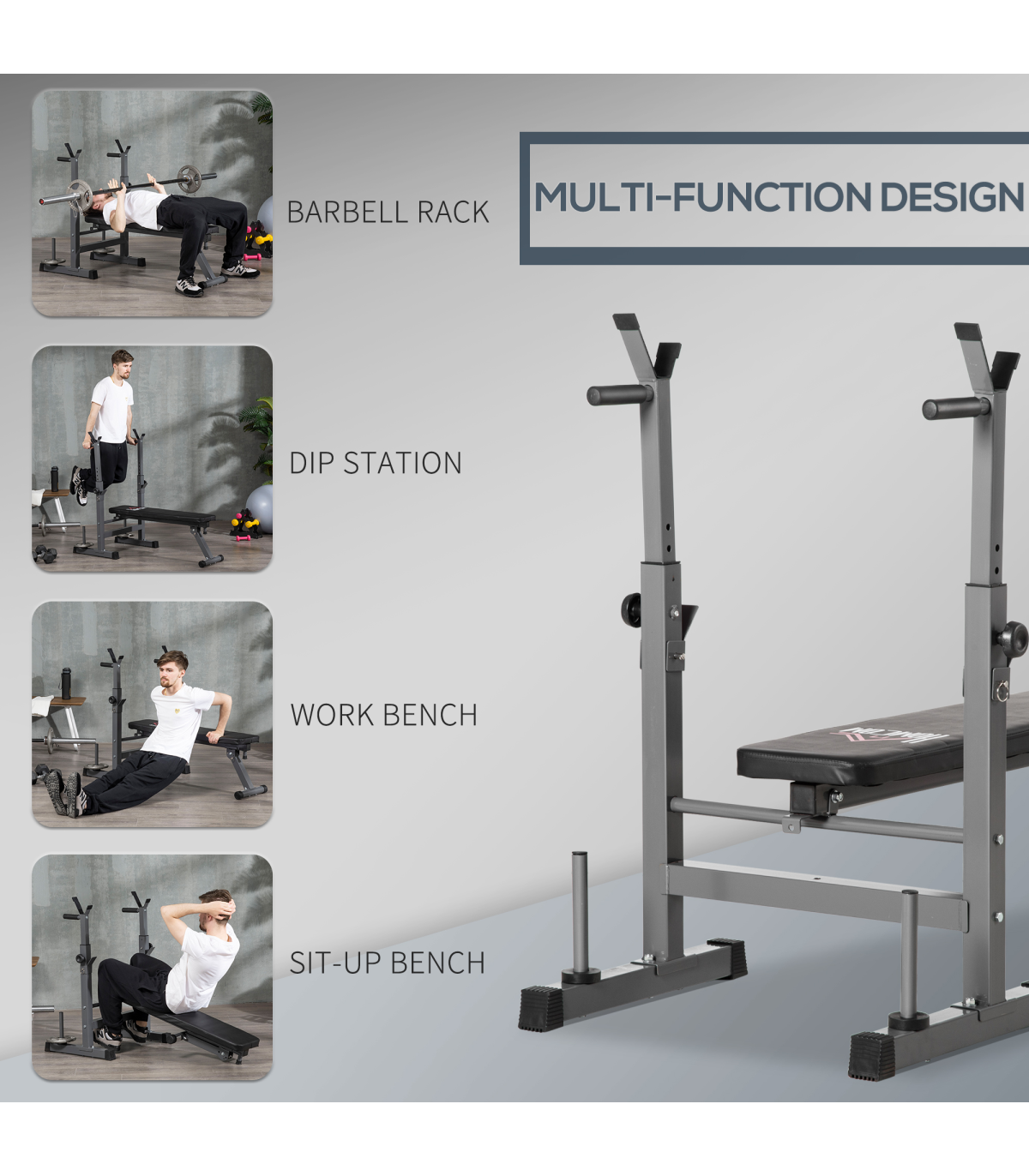 - Adjustable Weight Bench Foldable with Barbell Rack and Dip Station HOMCOM