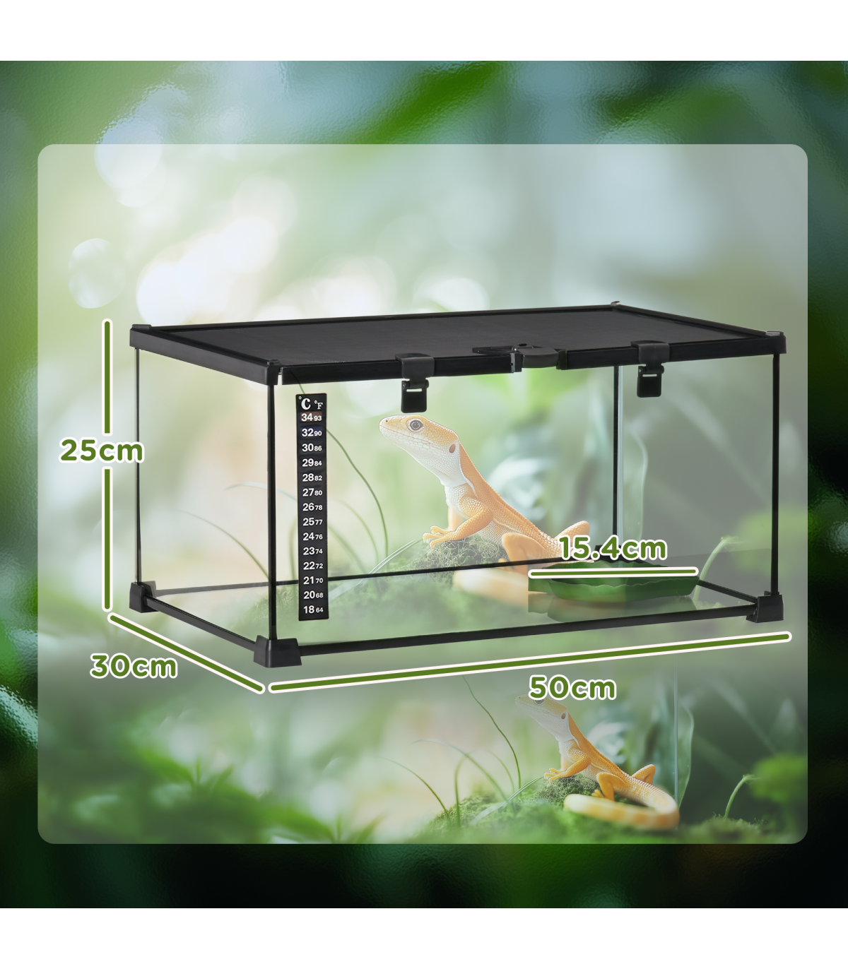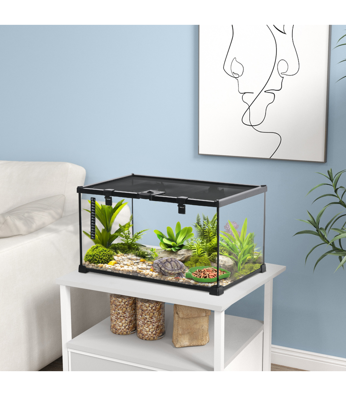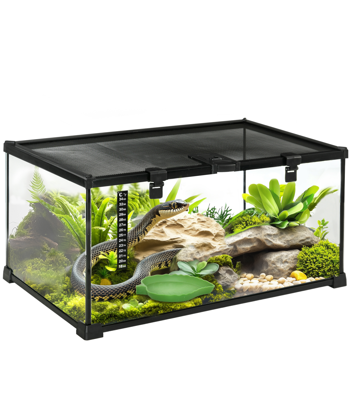 Treat your pets to a new home with this reptile box from PawHut. You're able to put dirt, water and plants inside – creating the perfect habitat to flourish. It has a raised base, providing space for a substrate heater, so temperature needs are met. The locks make it easy to open for cleaning and it stops pets from escaping. It's well-ventilated, thanks to the wired mesh and there's a port on the top cover for feeding. Watch them settle into their improved surroundings through the 360�� glass.