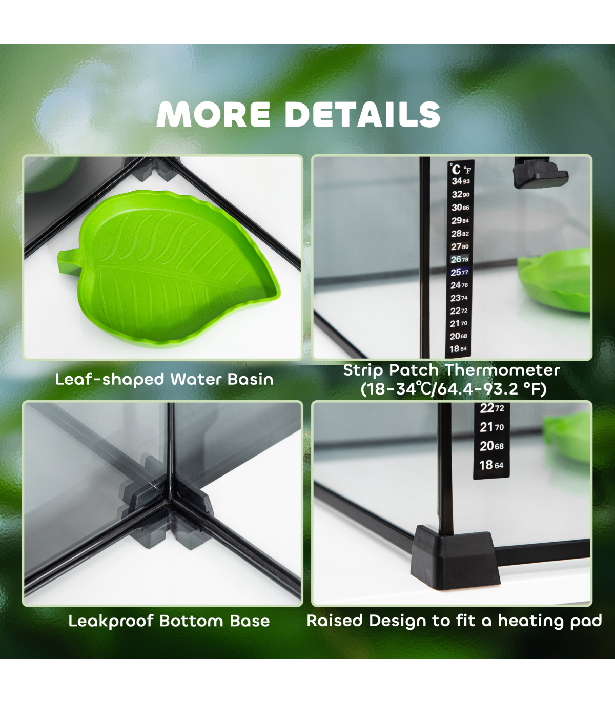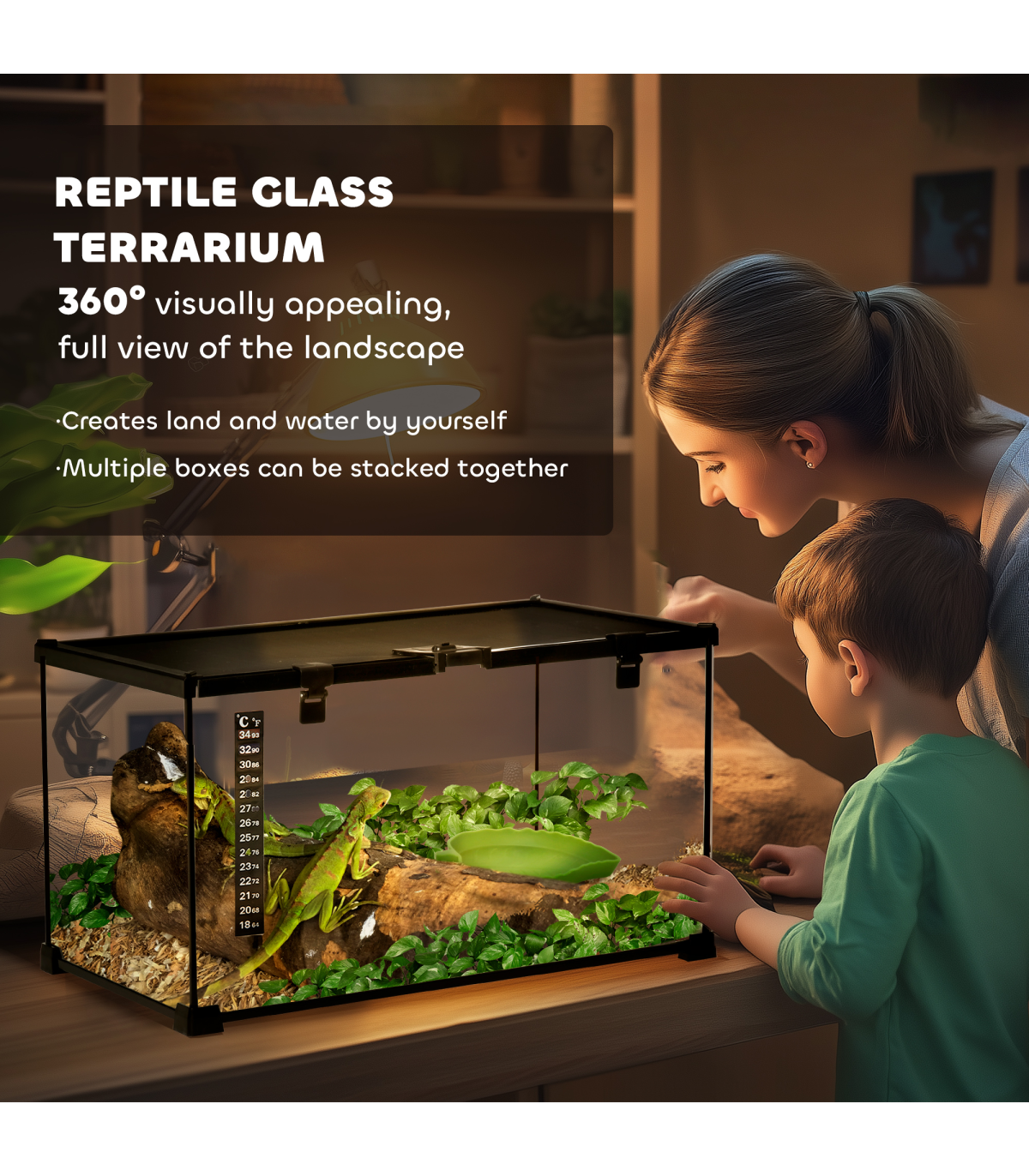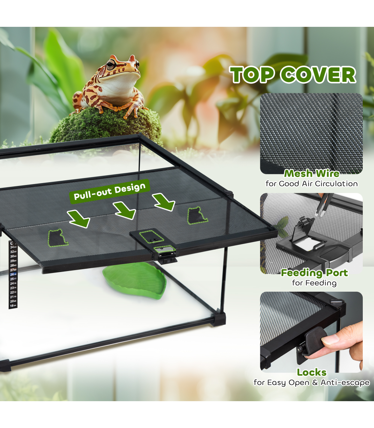 Treat your pets to a new home with this reptile box from PawHut. You're able to put dirt, water and plants inside – creating the perfect habitat to flourish. It has a raised base, providing space for a substrate heater, so temperature needs are met. The locks make it easy to open for cleaning and it stops pets from escaping. It's well-ventilated, thanks to the wired mesh and there's a port on the top cover for feeding. Watch them settle into their improved surroundings through the 360�� glass.
