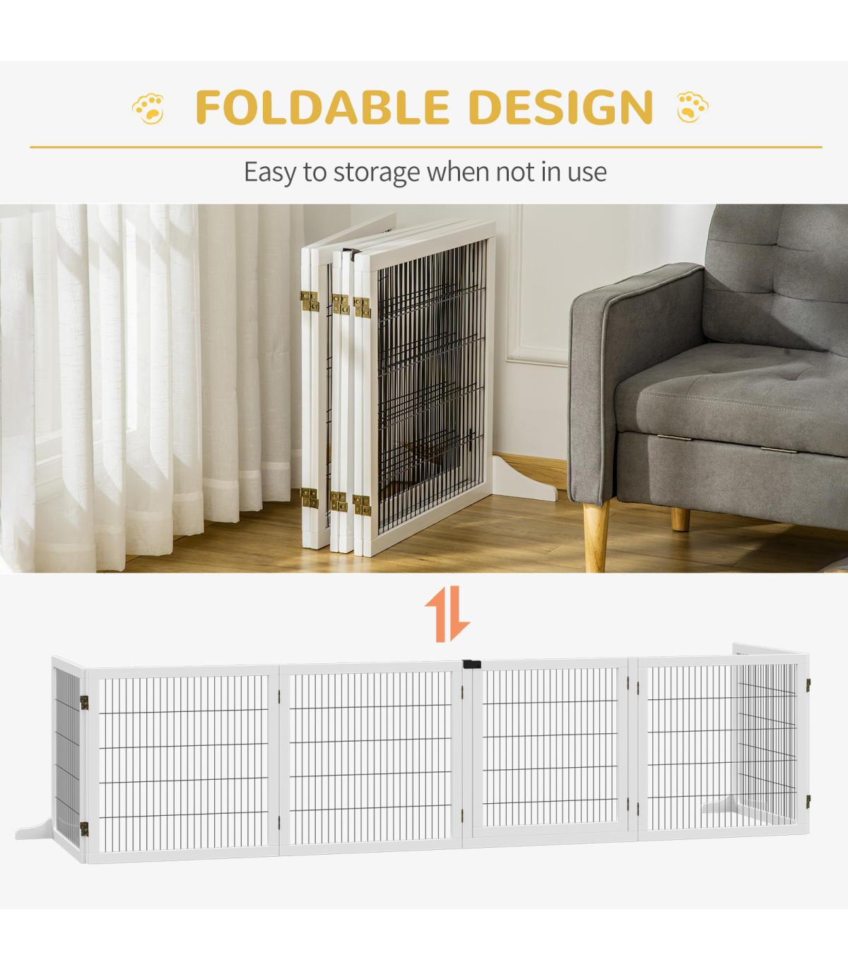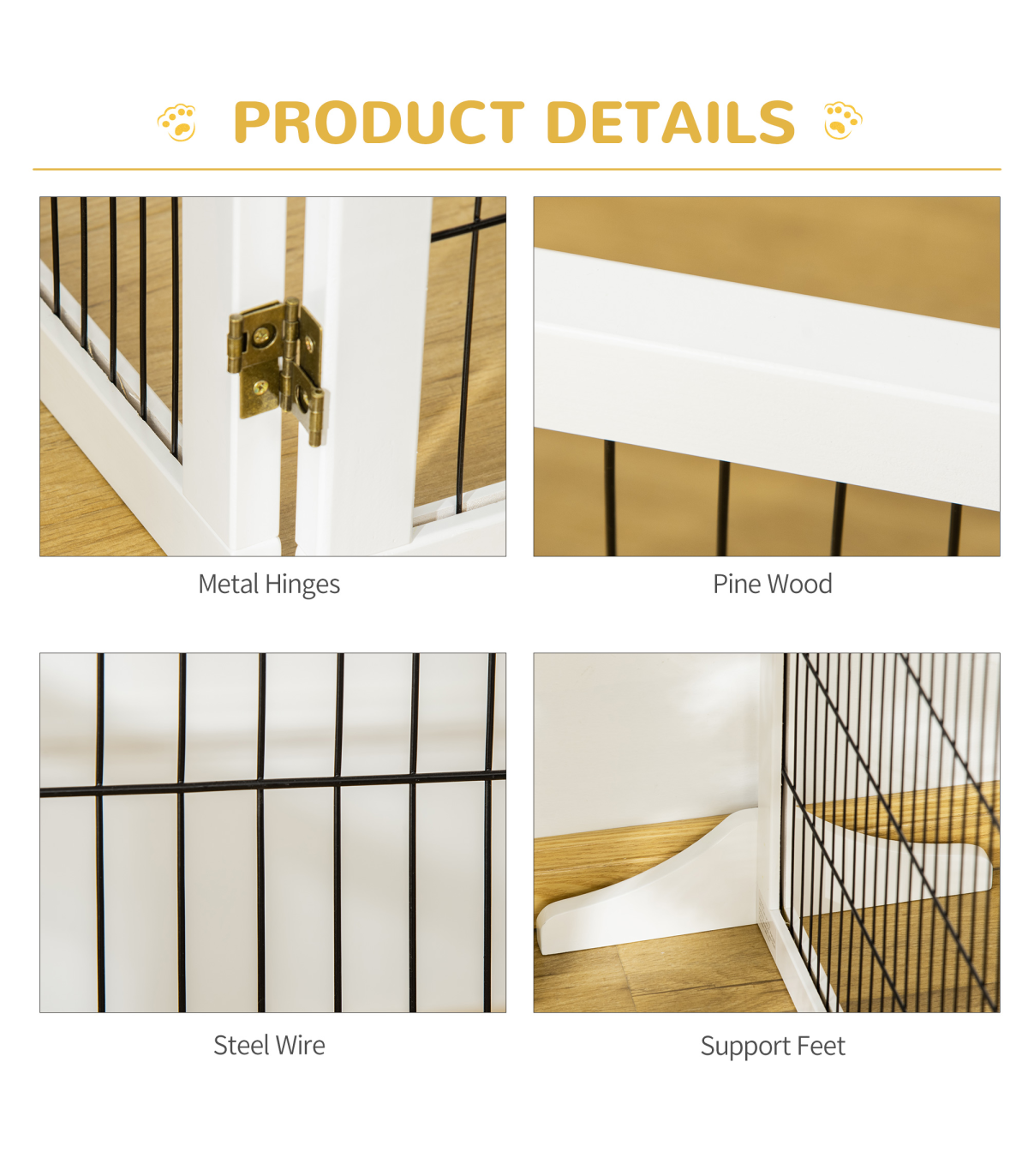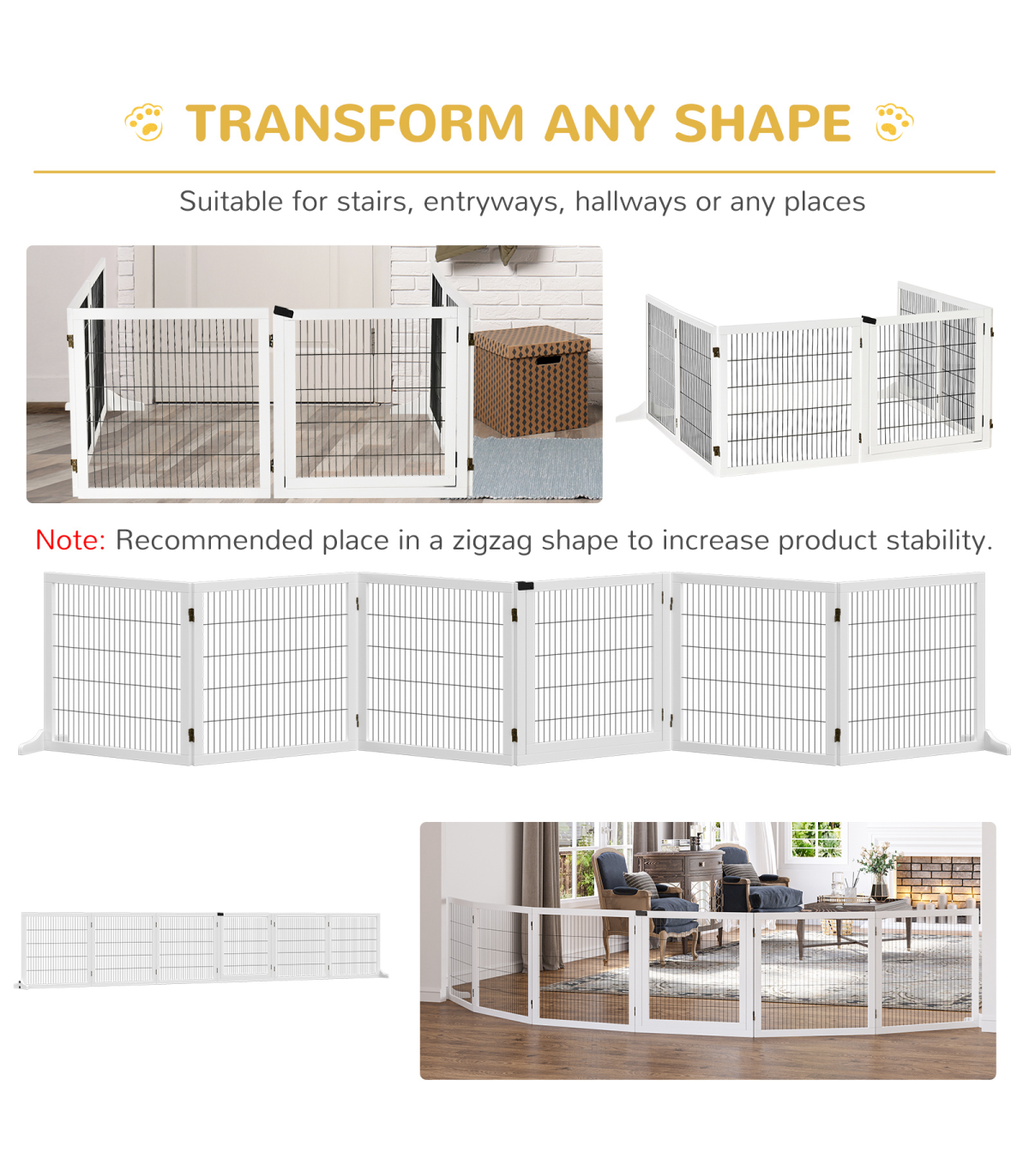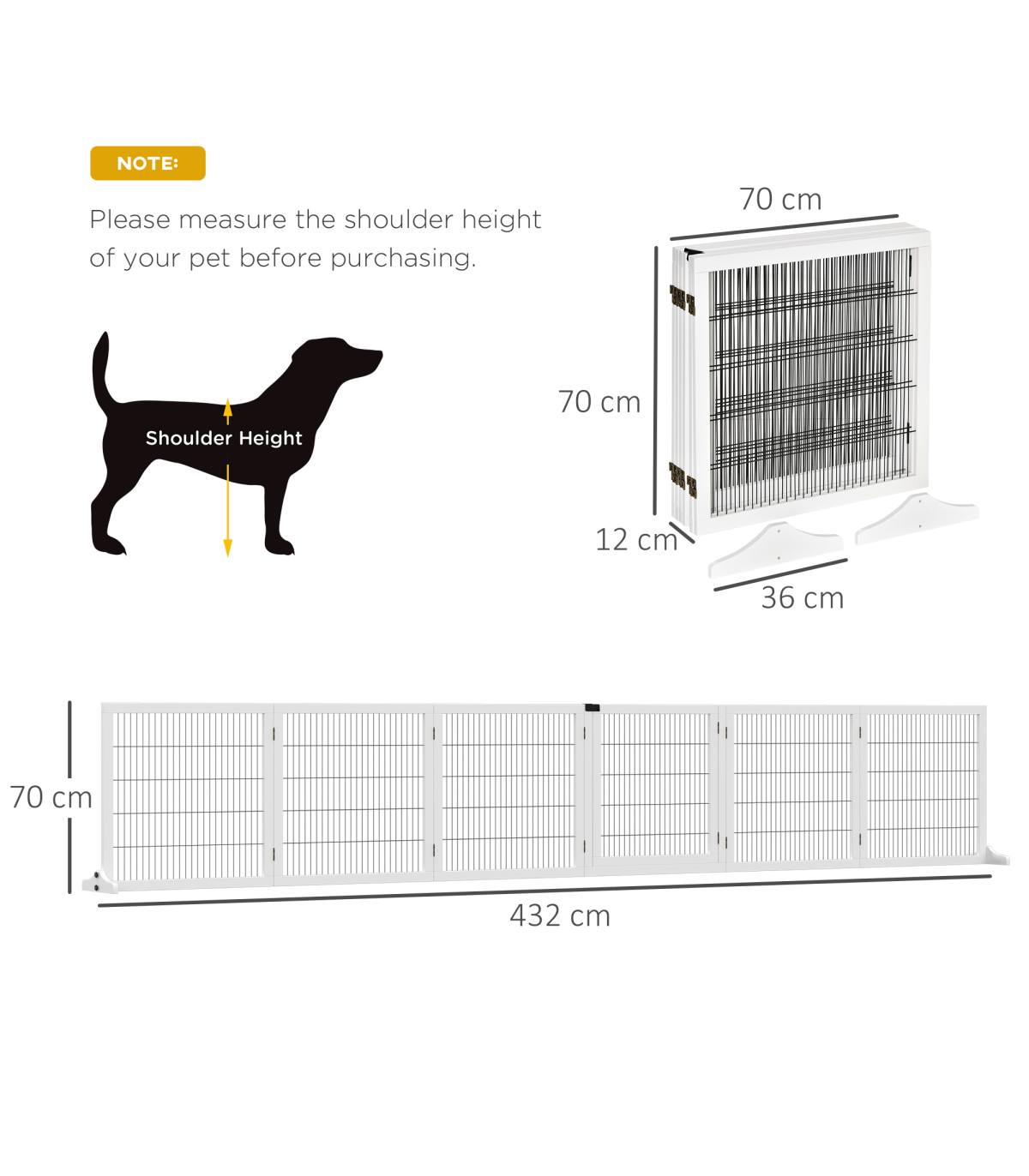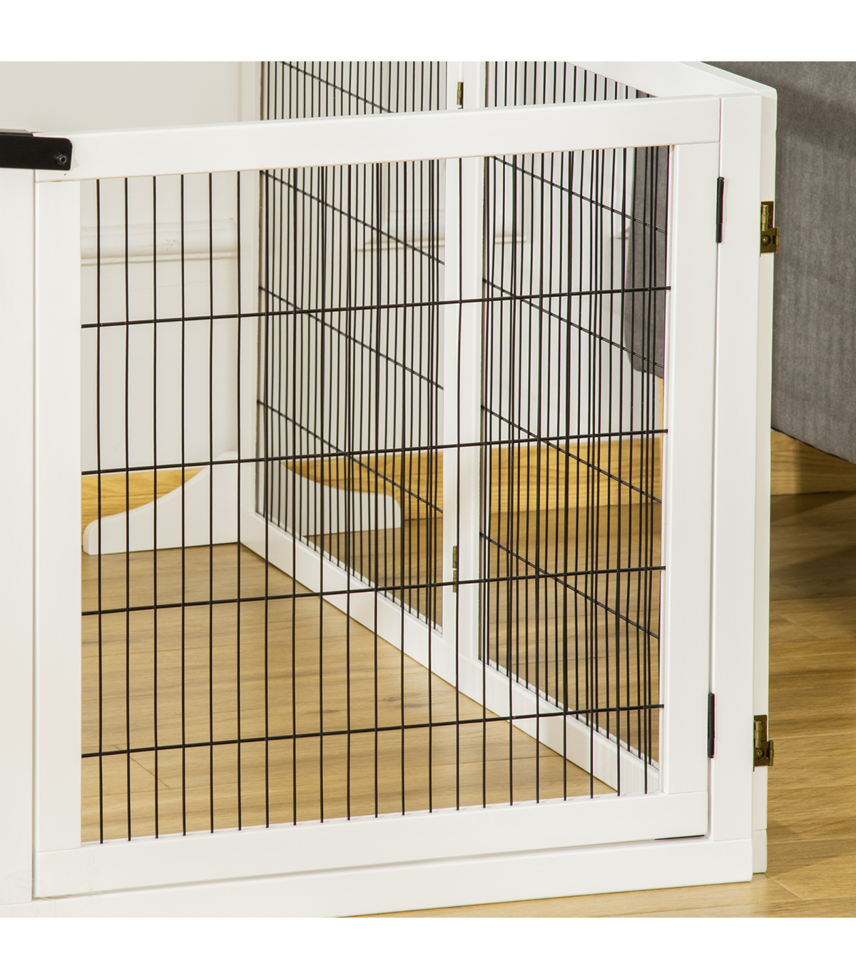 This PawHut pet barrier is an efficient way to keep your pets in one area, whilst its all-white design adds a decorative touch. The pet fence is freestanding and has six flexible panels secured with strong hinges, which can bend into different shapes C perfect for different sized areas. Pets can easily pass through the middle and it features a safety lock, so they remain put. The two support feet keep this fence upright and balanced - a secure way to stop pets from going where they shouldn't.