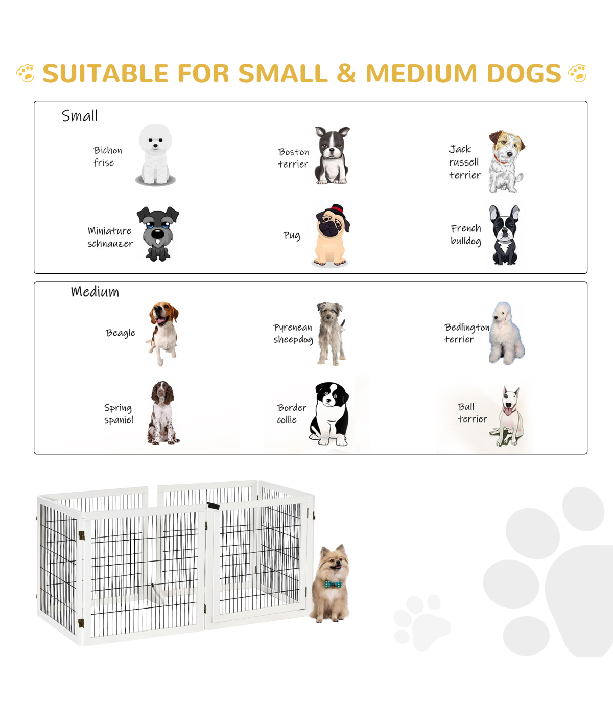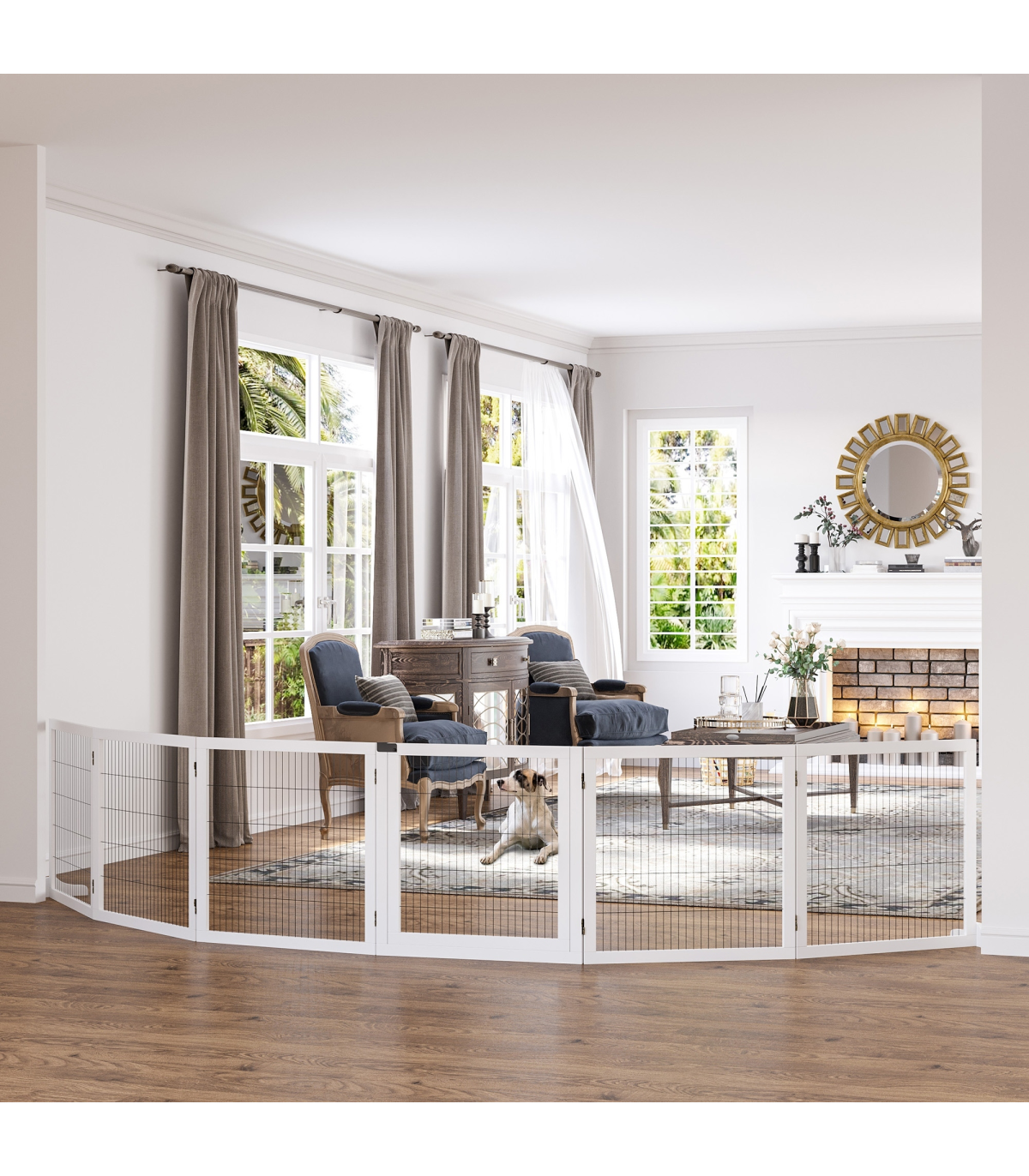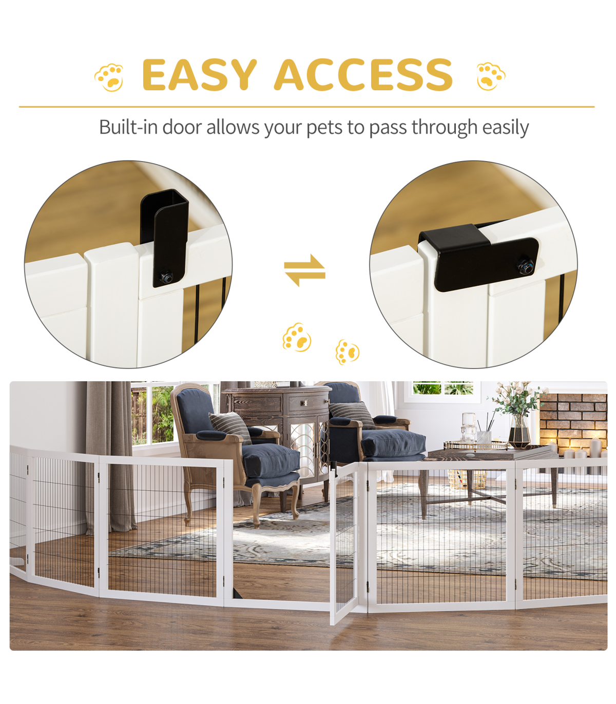This PawHut pet barrier is an efficient way to keep your pets in one area, whilst its all-white design adds a decorative touch. The pet fence is freestanding and has six flexible panels secured with strong hinges, which can bend into different shapes - perfect for different sized areas. Pets can easily pass through the middle and it features a safety lock, so they remain put. The two support feet keep this fence upright and balanced - a secure way to stop pets from going where they shouldn't.