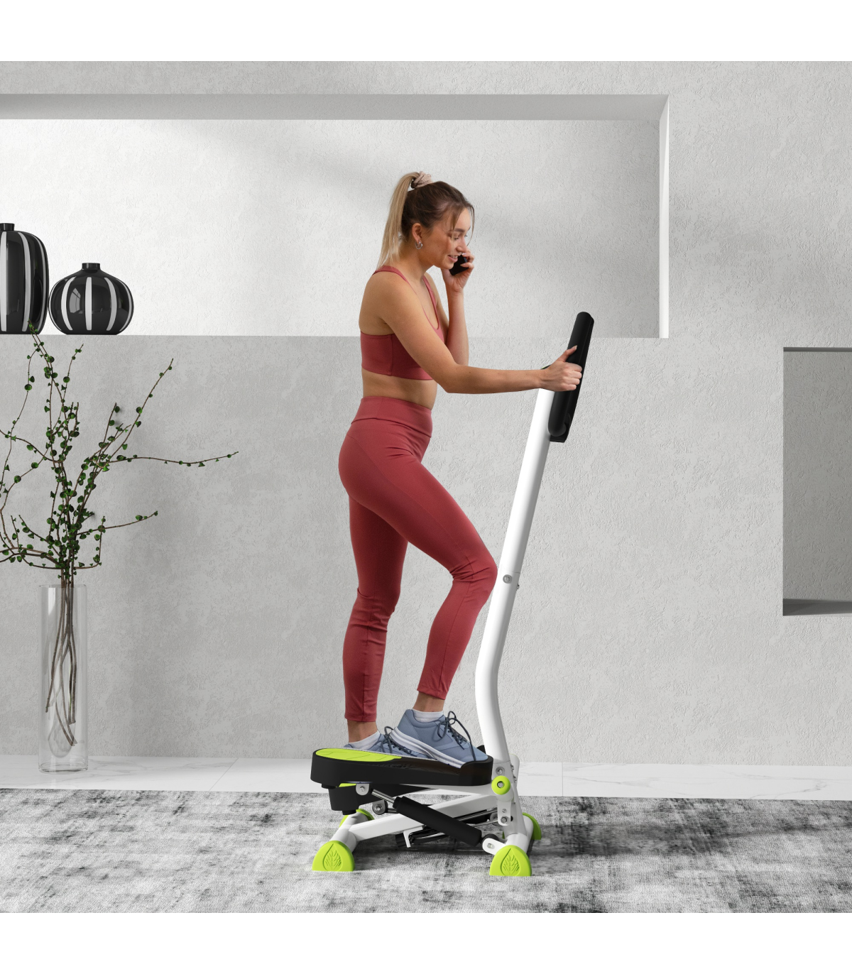 This HOMCOM stepper stand is designed to help tone your calves, legs, and surrounding areas of the body. The steel frame provides a sturdy structure, while the two handlebars offer a secure grip during workouts. The large platforms with a textured top prevent feet from slipping off, ensuring a safe exercise experience. The built-in LCD screen keeps track of your total step count, time, and calories burnt.