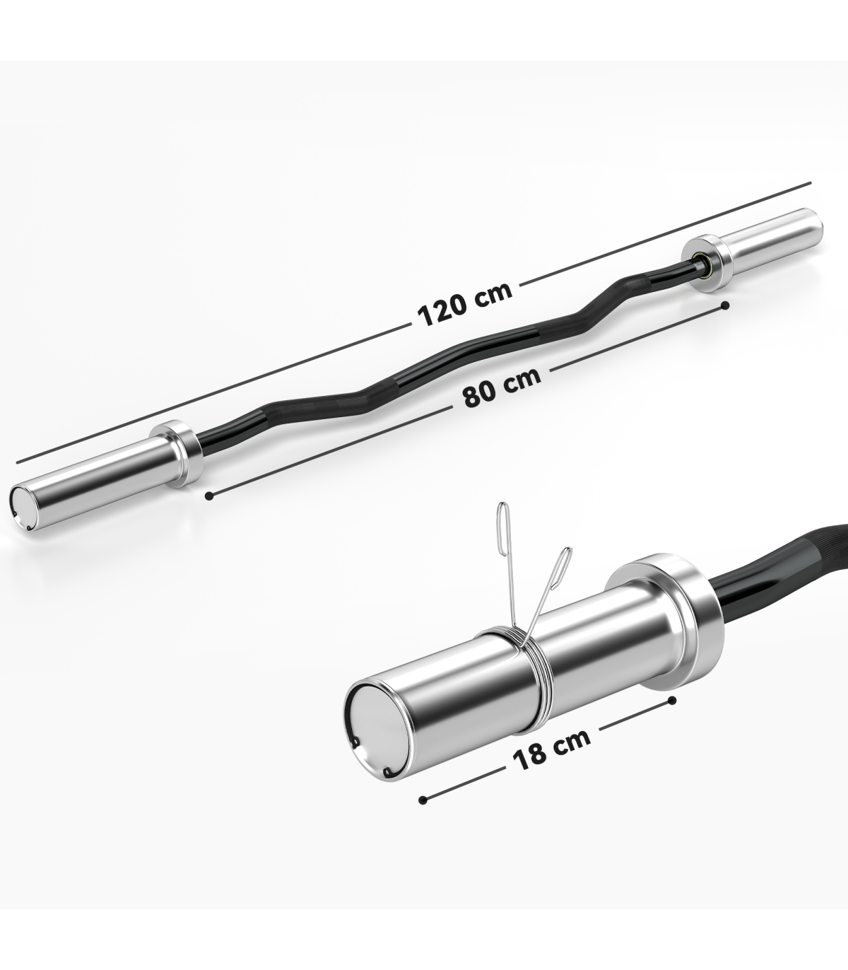 Colour: Silver-tone and black Material: Steel Dimensions: ?5 x 120Lcm. Grip: ?2.5 x 80L. Sleeves: ?5 x 18Lcm Net weight: 8kg Weight capacity: 100kg Item label: A91-284V00BK