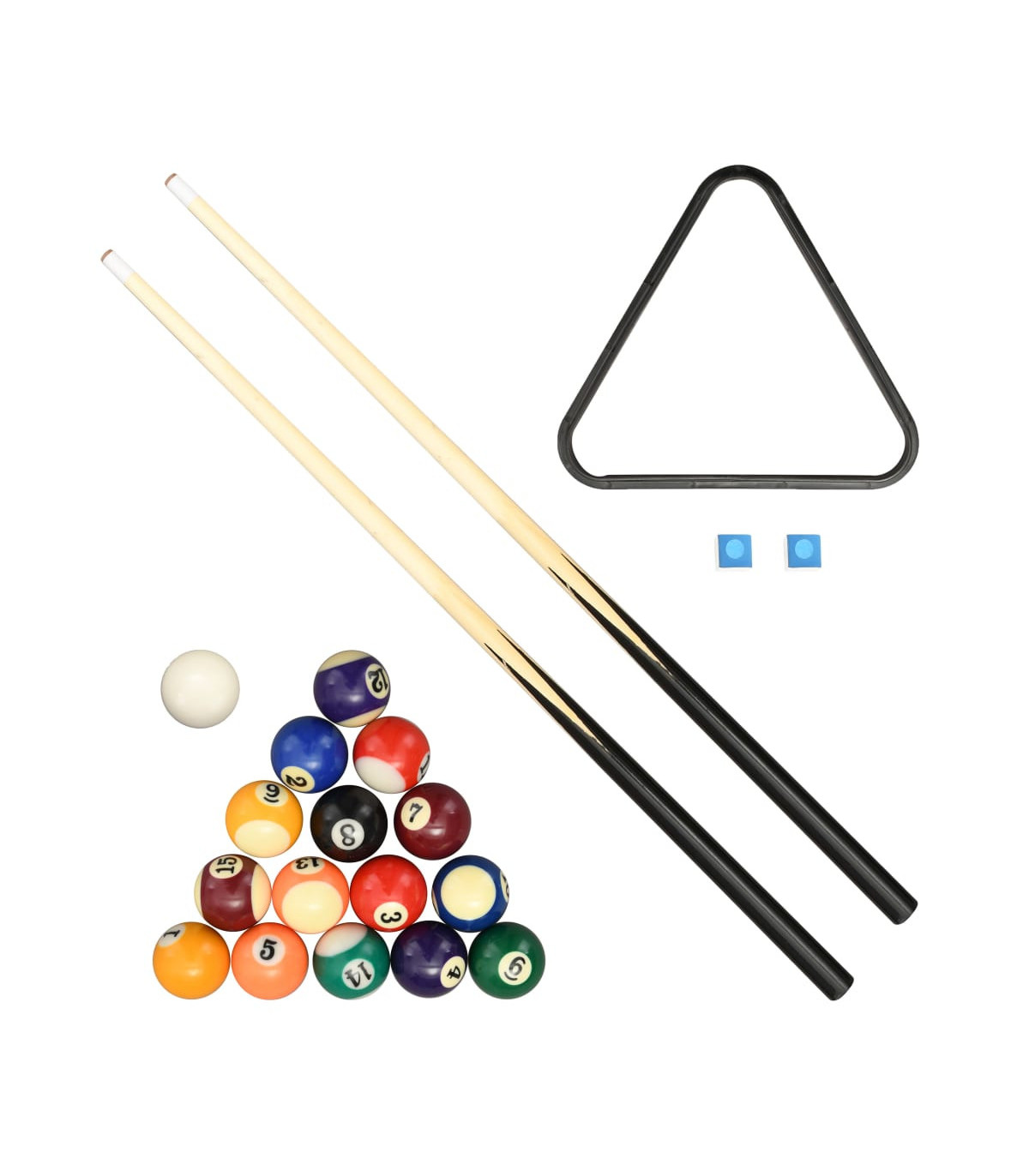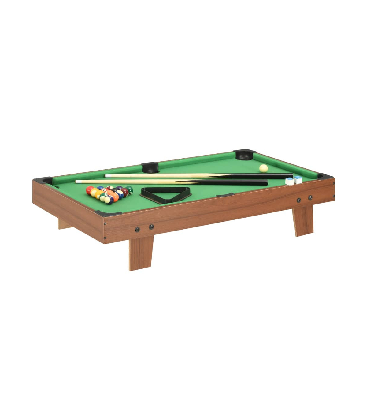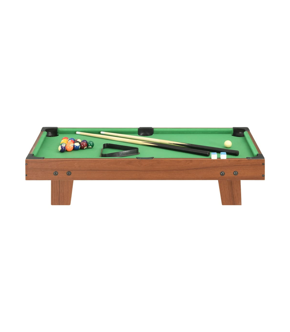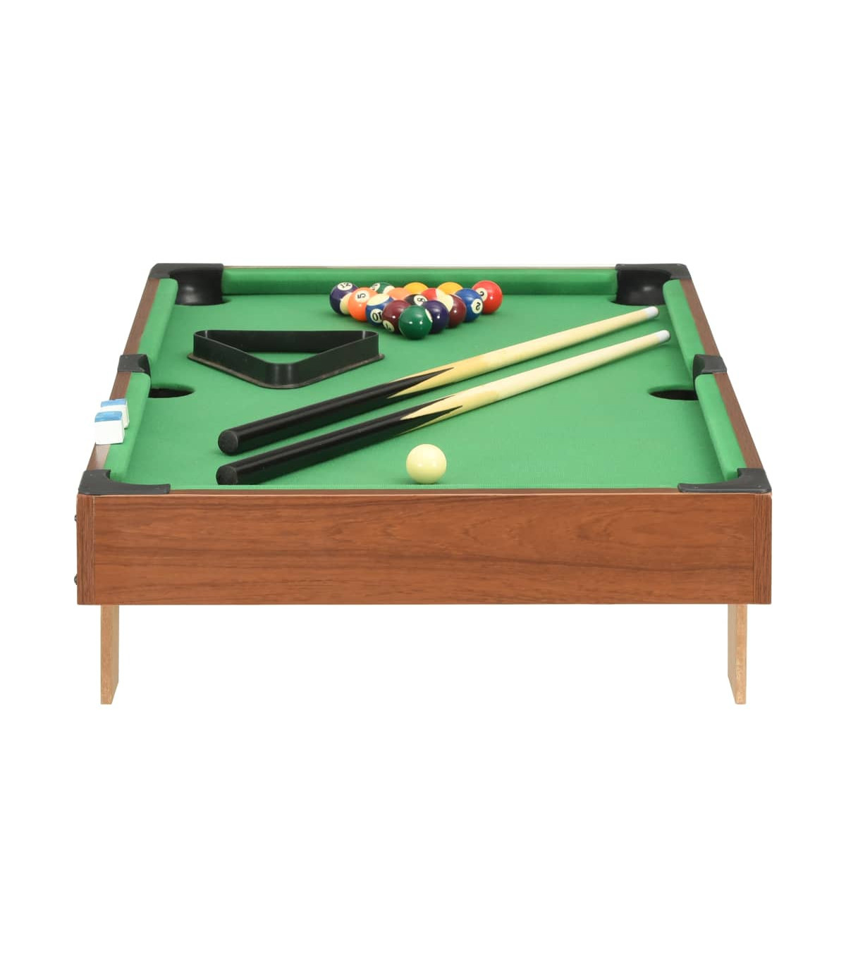 Our mini portable pool table is truly a must for any pool fan who doesn't have the space for a full sized table. It can be placed on any regular table top and then you’re ready to play! Made of quality MDF board, billiard table is exceedingly stable for long term use. This game table is very suitable for green hands to get familiar with the rules. When not in use, you can just store in the corner and will not occupy much room. This fun set includes 1 billiard table, 1 triangle rack, 16 balls, 2 cues, as well as 2 billiard chalks.