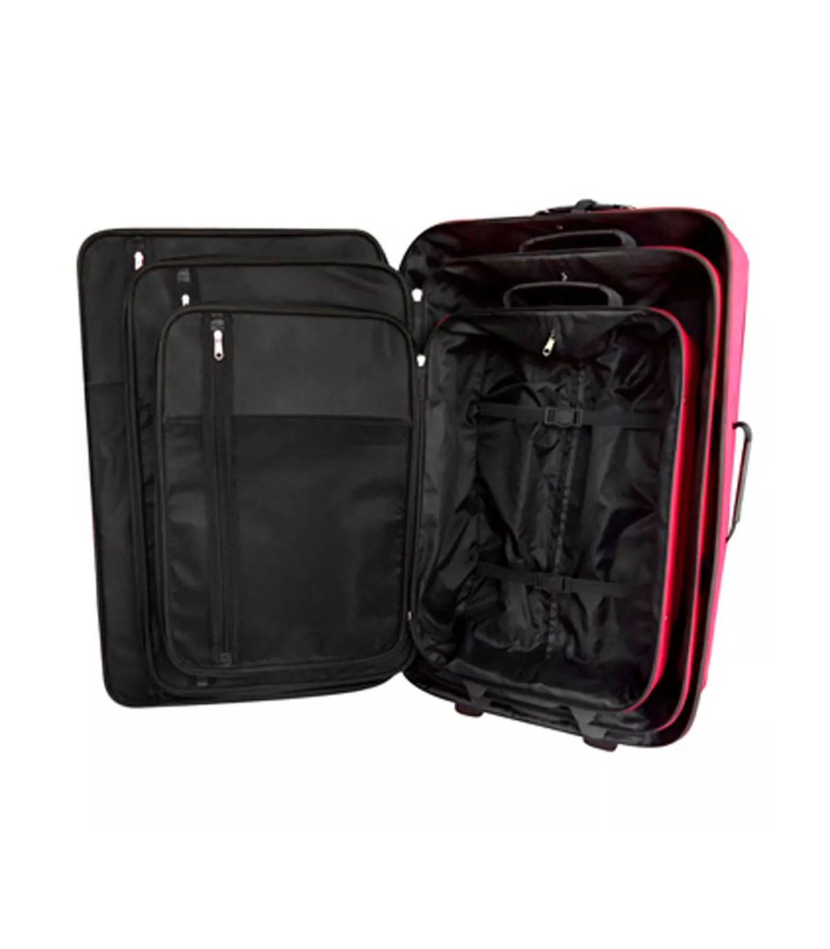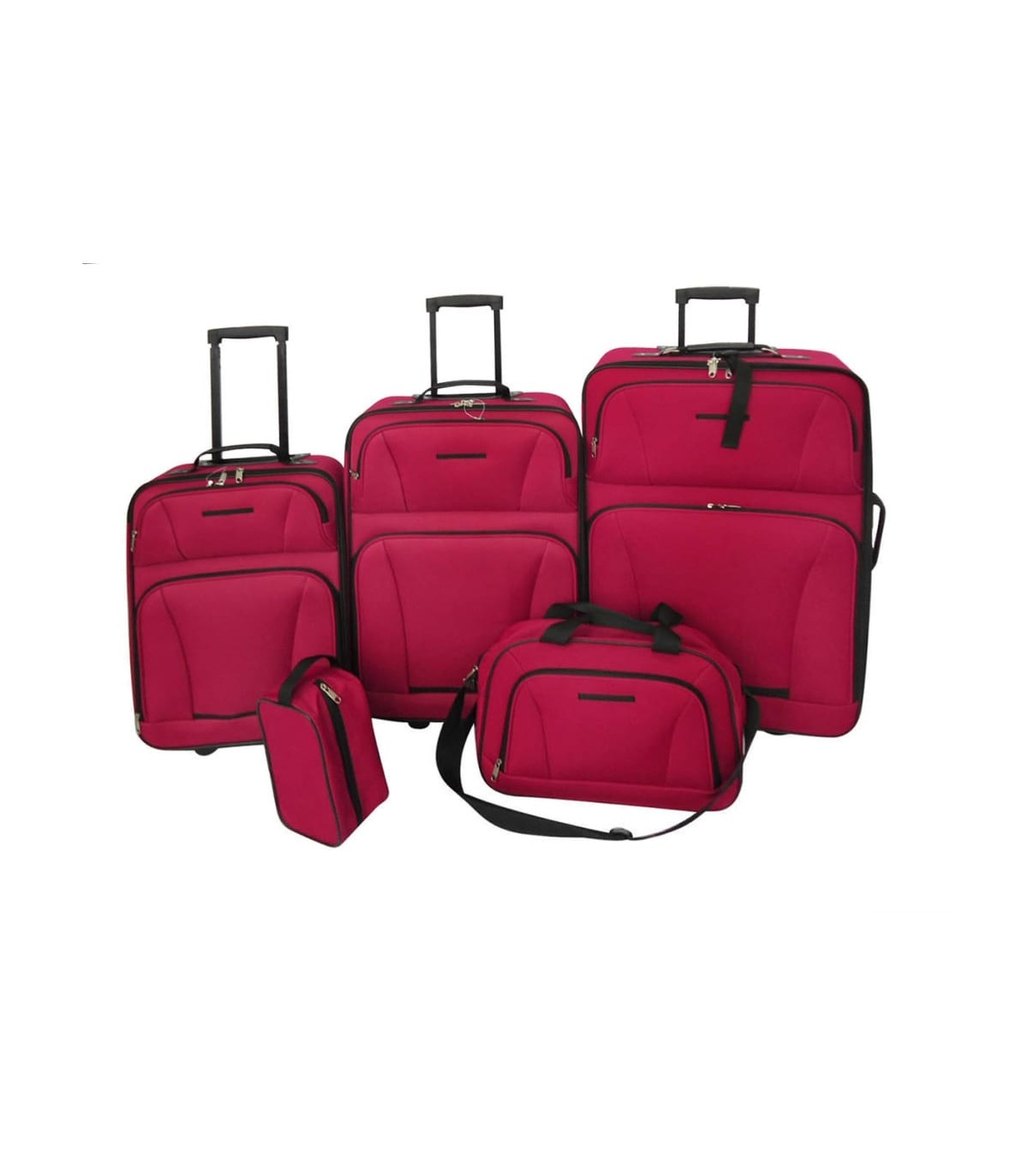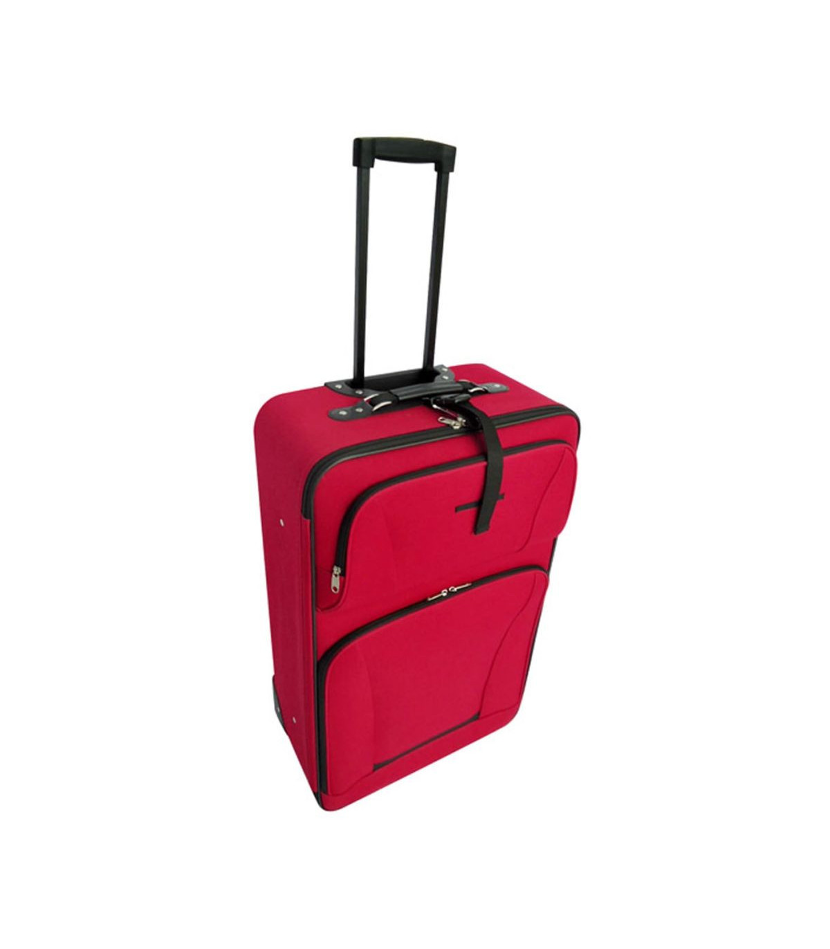 In this sustainable luggage set you can easily pack all your bagage. Because of the different size of the trolleys the set is suitable for small and big travels. The pull-out telescopic handles and the 2 wheels underneath the trolleys make this set practical when used. The trolleys are made of fabric (100% polyester) with PVC coating. The edges of thje trolleys are additionally lined so they are resilient. The luggage set is delivered including a handy travel bag and toiletry bag. When you store the trolleys it's possible to interlock them so you only have to find a storage place for the biggest trolley. In this way you can save a lot of extra space! This 5 part luggage set is available in red and black.
