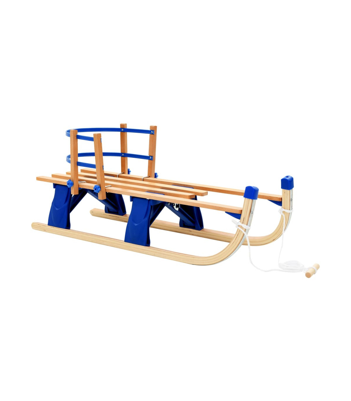 This foldable wooden sledge with backrest offers you an exciting experience this winter. The durable, full-length metal runners offer a smooth ride on even the steepest descent. Thanks to the safety lock, the slide is extremely stable and safe. The sledge is constructed from wood so it is lightweight yet strong, which is important when you're dragging it back up the hill. The clever folding mechanism makes it fold flat in seconds without tools required, and also easy to store and transport. The pull rope is attached so children can be towed by adults on flat, snowy ground or enjoy a ride on gentler slopes.
