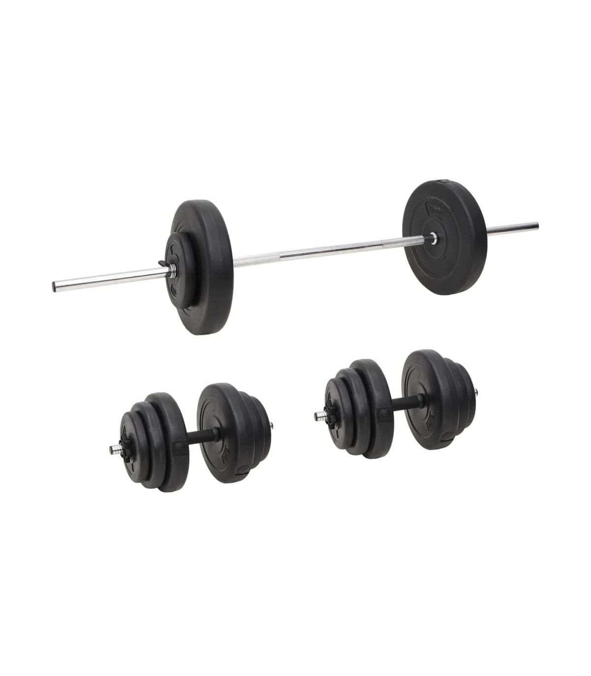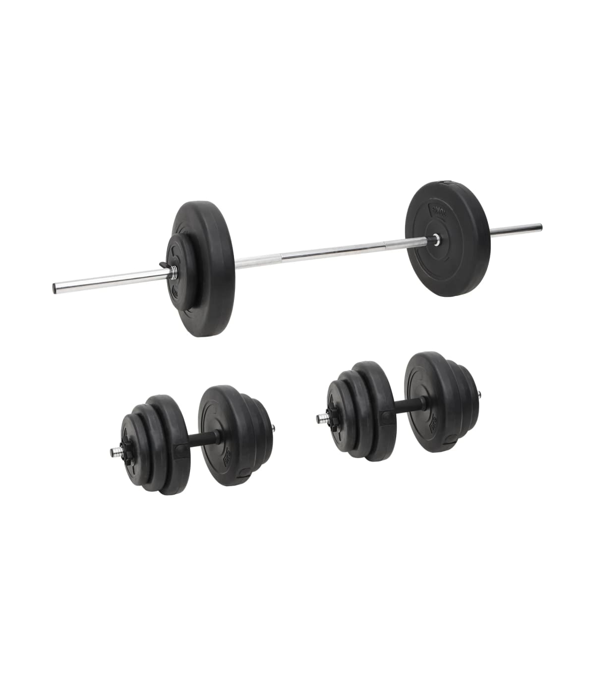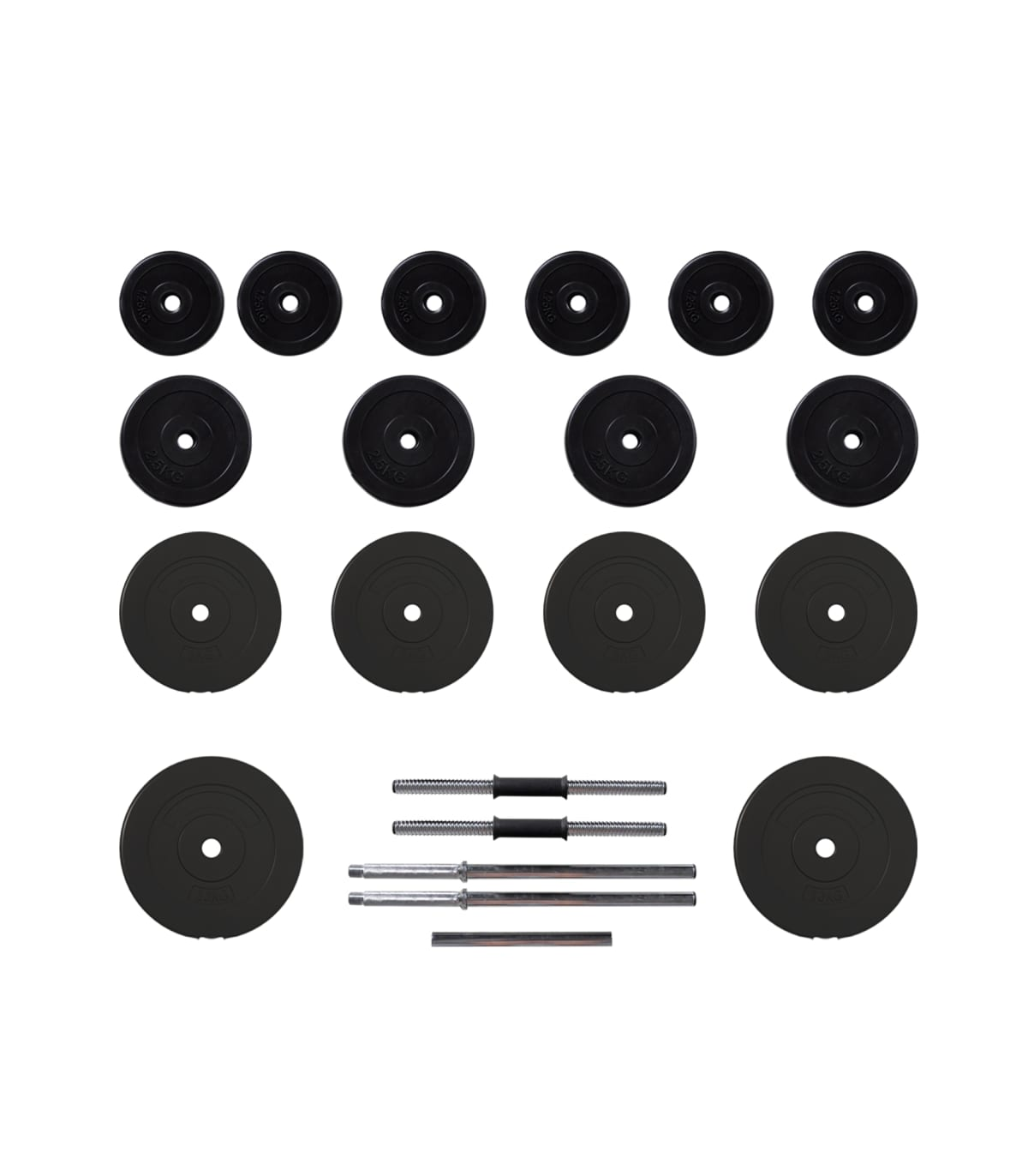 This versatile barbell with plates set is a perfect choice for those who looking for varied workout options. Durable material: Made of chrome plated steel, the barbell is surely sturdy and stable. Additionally, the barbell plate is made of cement and covered with robust, floor-friendly plastic, allowing you not to experience any annoying clanging sounds of the weights.Different weight set: A suitable combination is easily made with the 4 different weights, 2 x 10 kg, 4 x 5 kg, 6 x 1,25 kg, 4 x 2,5 kg The different weight sets always can meet your different training needs.Clearly stamped weight: The weight is clearly stamped on each weight disc for quick and easy identification.Multifunctional dumbbell: The multifunctional barbell set is suitable for training your chest, biceps, arms, triceps, and back muscles.Practical star lock: The star-shaped locks ensure the weights stay in place firmly. Note:Each product comes with an assembly manual in the box for easy assembly.