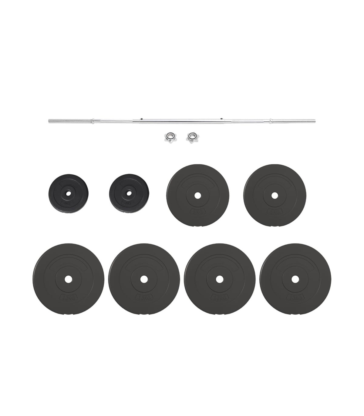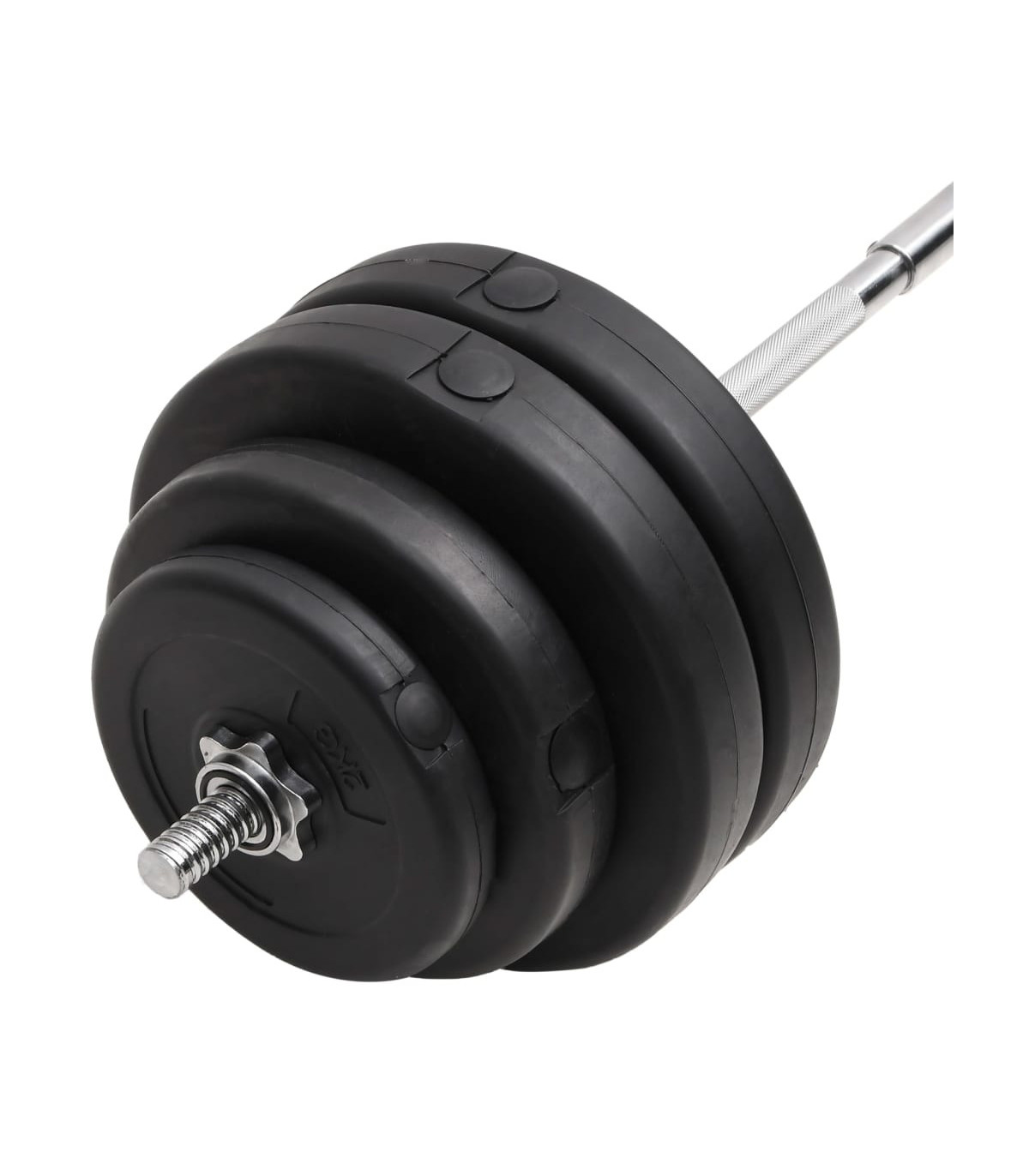 This versatile barbell with plates is a perfect choice for those who looking for varied workout options. Durable material: Made of chrome plated steel, the barbell is surely sturdy and stable. Additionally, the barbell plate is made of cement and covered with robust, floor-friendly plastic, allowing you not to experience any annoying clanging sounds of the weights.Different weight set: A suitable combination is easily made with the 3 different weights, 4 x 10 kg, 2 x 5 kg, 2 x 2 kg. The different weight sets always can meet your different training needs.Clearly stamped weight: The weight is clearly stamped on each weight disc for quick and easy identification.Multifunctional dumbbell: The multifunctional barbell set is suitable for training your chest, biceps, arms, triceps, and back muscles.Practical star lock: The star-shaped locks ensure the weights stay in place firmly. Note:Each product comes with an assembly manual in the box for easy assembly.