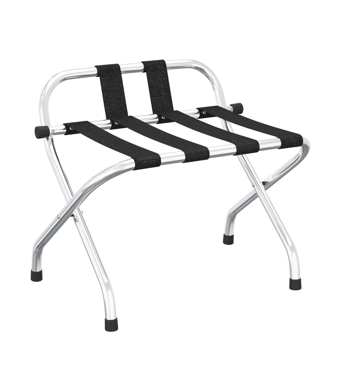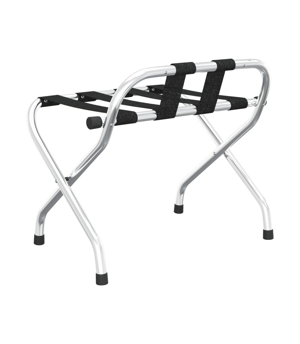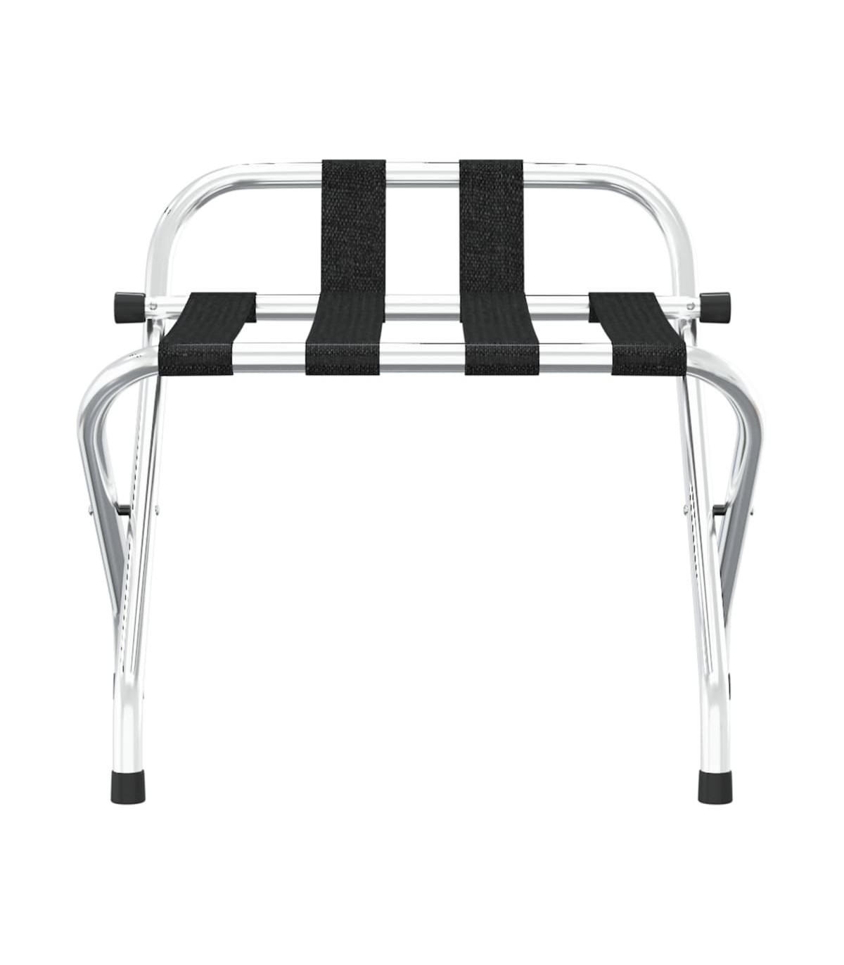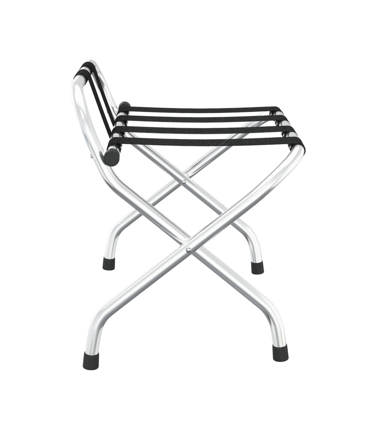 This luggage rack with backrest is made of a sturdy frame and features 4 strong nylon straps. It is perfect for hotels, inns and hostels. Sturdy frame: The metal frames ensure sturdiness and stability.Solid design: This hotel luggage stand features solid 25 mm steel pipes and 4 sturdy nylon webbing, which is ideal for placing your luggage.Foldable function: Foldable design makes the inns luggage stand easy to store without taking up much space.Built-in backrest design: Backrest prevents luggage from tipping over.