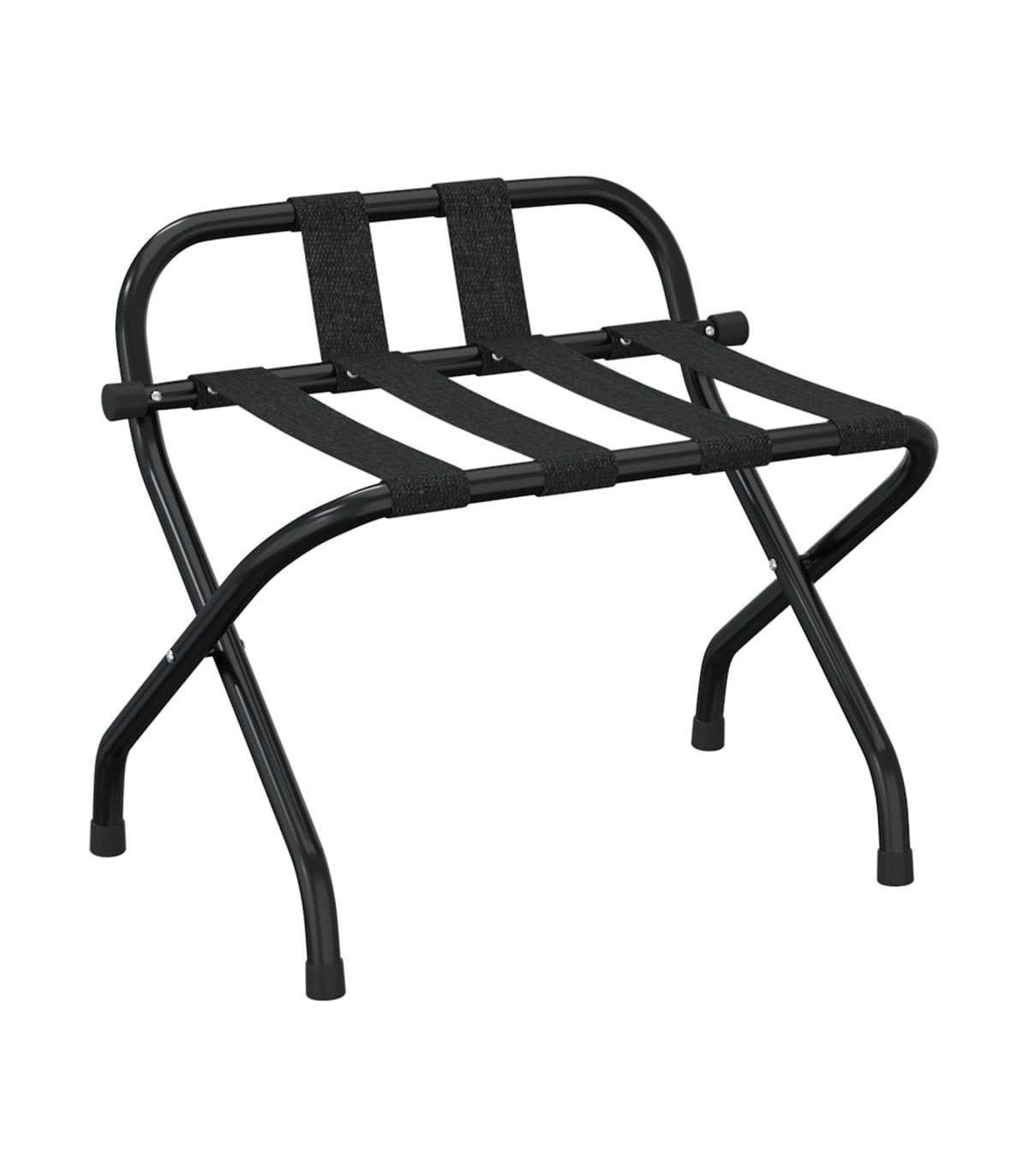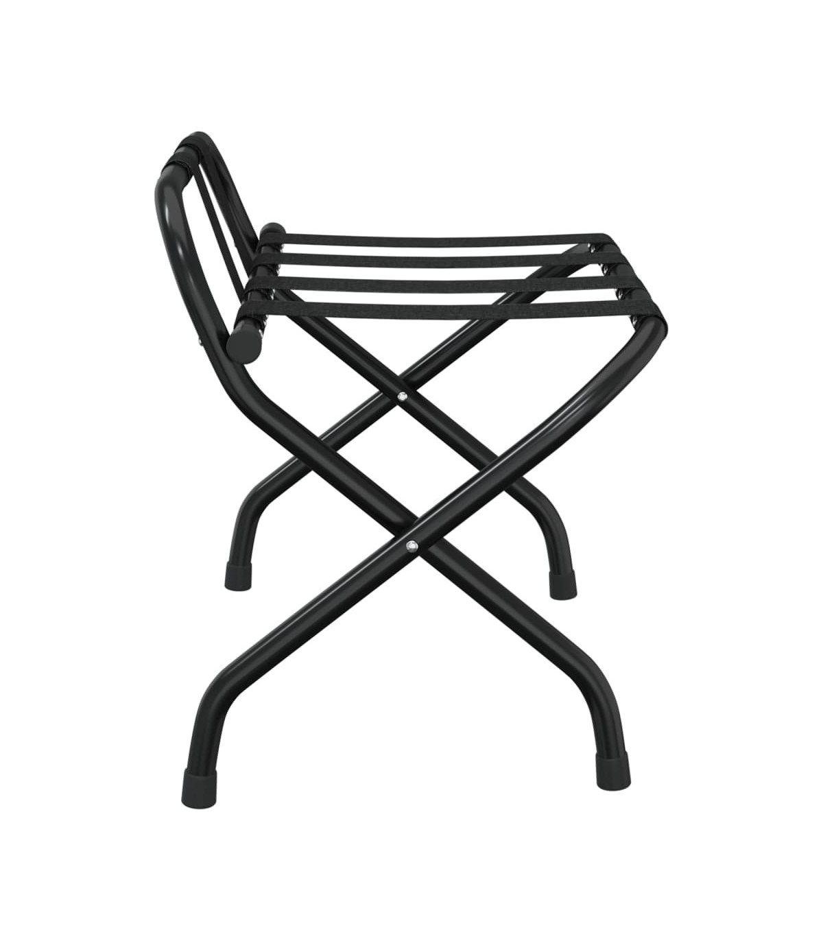 This luggage rack with backrest is made of a sturdy frame and features 4 strong nylon straps. It is perfect for hotels, inns and hostels. Sturdy frame: The metal frames ensure sturdiness and stability.Solid design: This hotel luggage stand features solid 25 mm steel pipes and 4 sturdy nylon webbing, which is ideal for placing your luggage.Foldable function: Foldable design makes the inns luggage stand easy to store without taking up much space.Built-in backrest design: Backrest prevents luggage from tipping over.