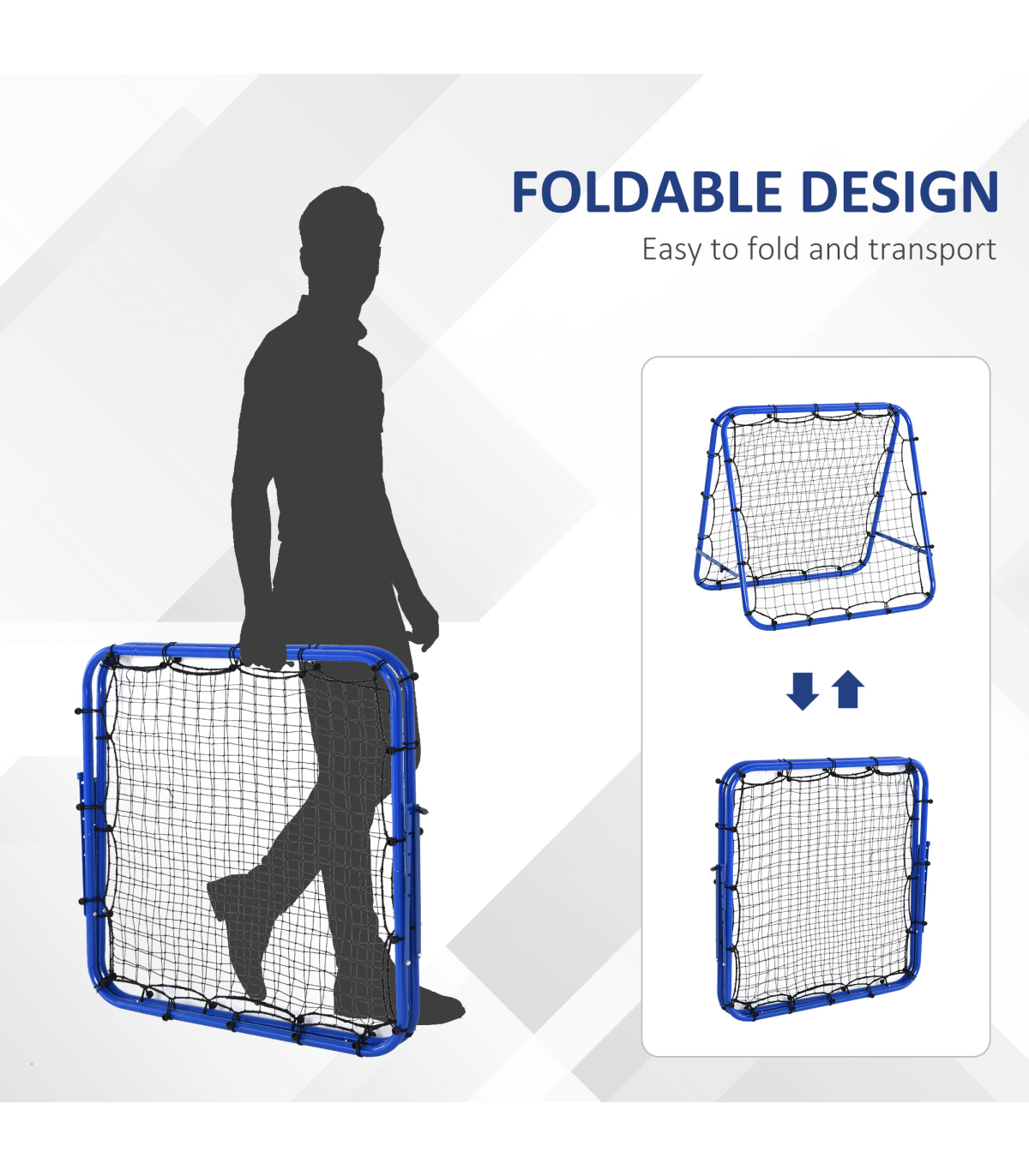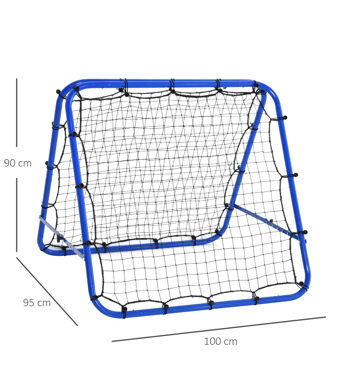 SOLID CONSTRUCTION: Made from premium power-coated steel tube and all weather PE net , the rebounder net can bear intense impact during your training.ADJUSTABLE ANGLES: Allows you to adjust the angle by the steel bars on both sides to meet the different training demands. Includes stability anchors to prevent toppling when in use.PORTABLE: Lightweight and easy to carry. Can be folded flat for storage. You can take it anywhere as you like, such as club, school and your garden, backyard.WIDE USE: Perfect training aid for sports including football, soccer and more. Can be used for a variety of exercises to improve reactions, hand or foot eye co-ordination, improve kicking, catching, passing, throwing, hitting.DIMENSIONS: 100L x 95D x 90Hcm. Single Net Size: 91L x 91Wcm. Folded Size: 100L x 99W x 8.5H cm. Easy assembly required. Depth adjustable: 68-95cm.