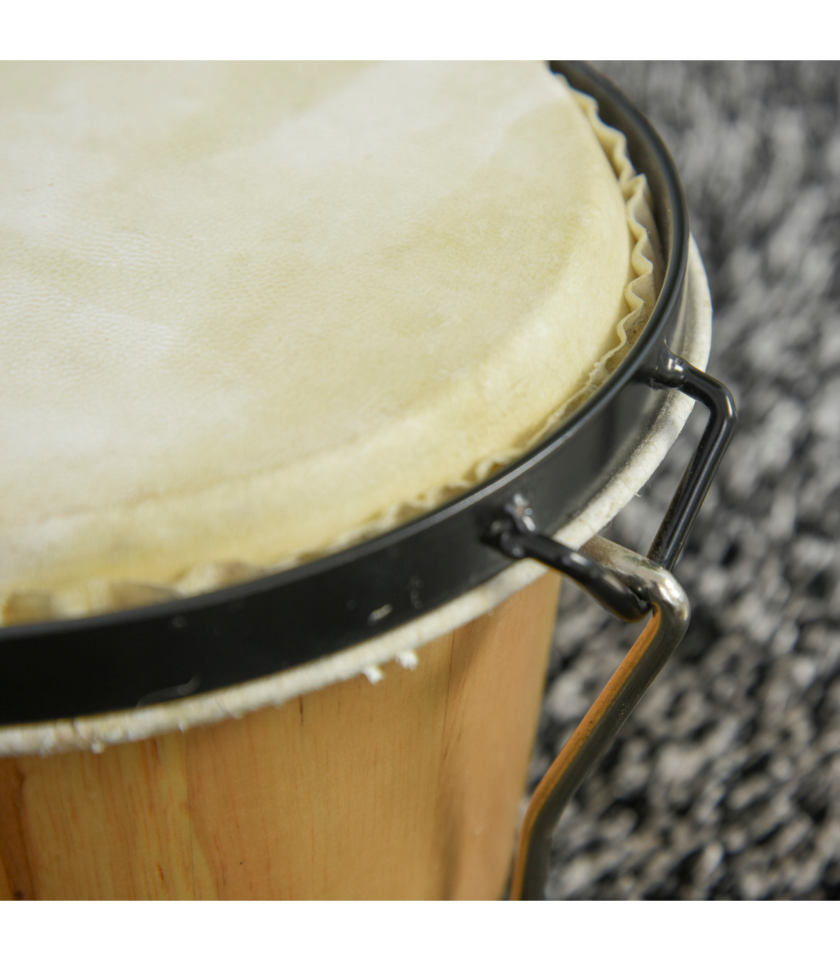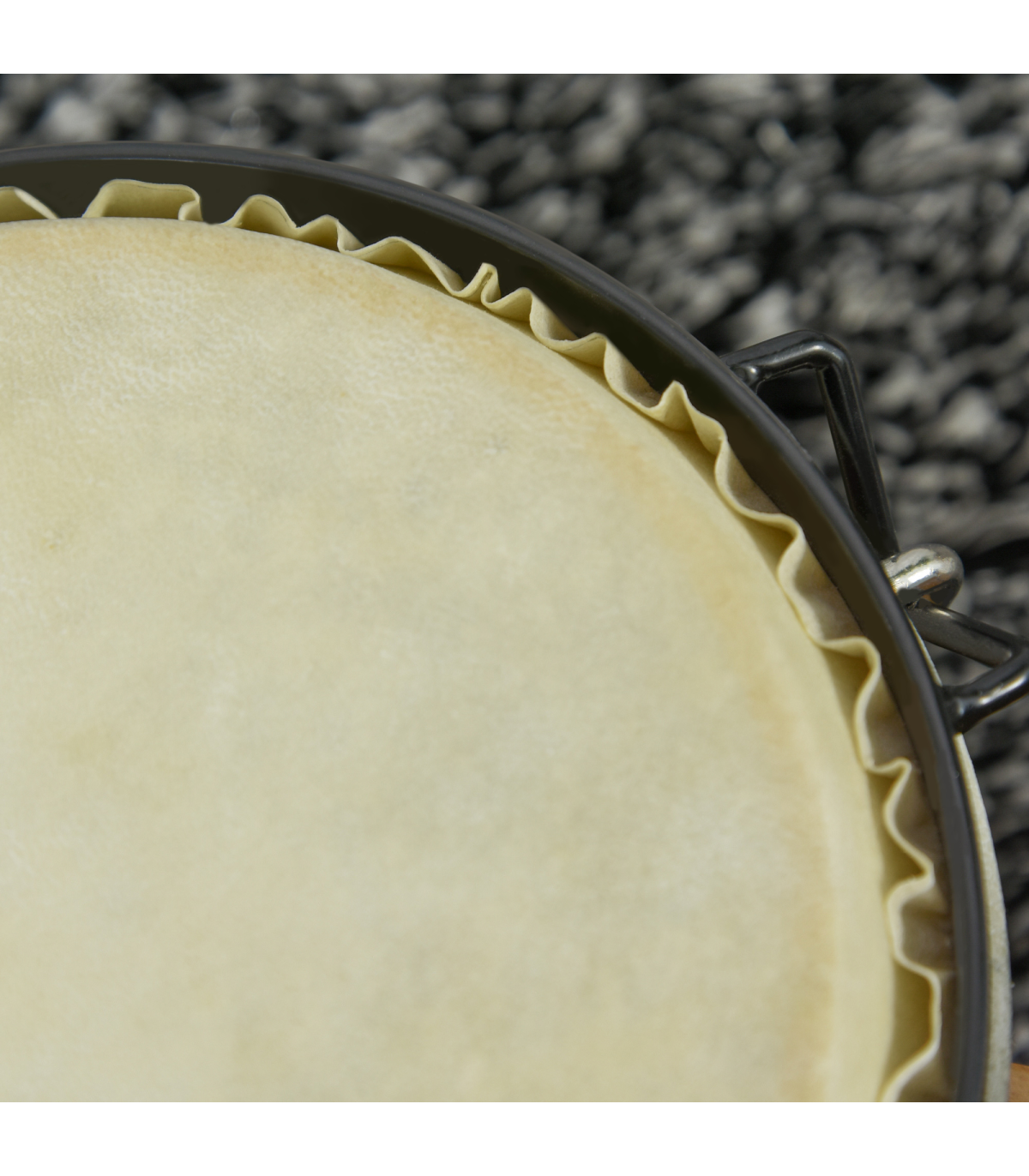 SHEEPSKIN HEADS: A traditional material for drums, radiates each hit clearly for the best possible and clear sound. Delivers a deep and vibrant sound with every use.STURDY: Solid basswood body is tough for hours of practice and playing. Metal accents to hold the drumhead in place.