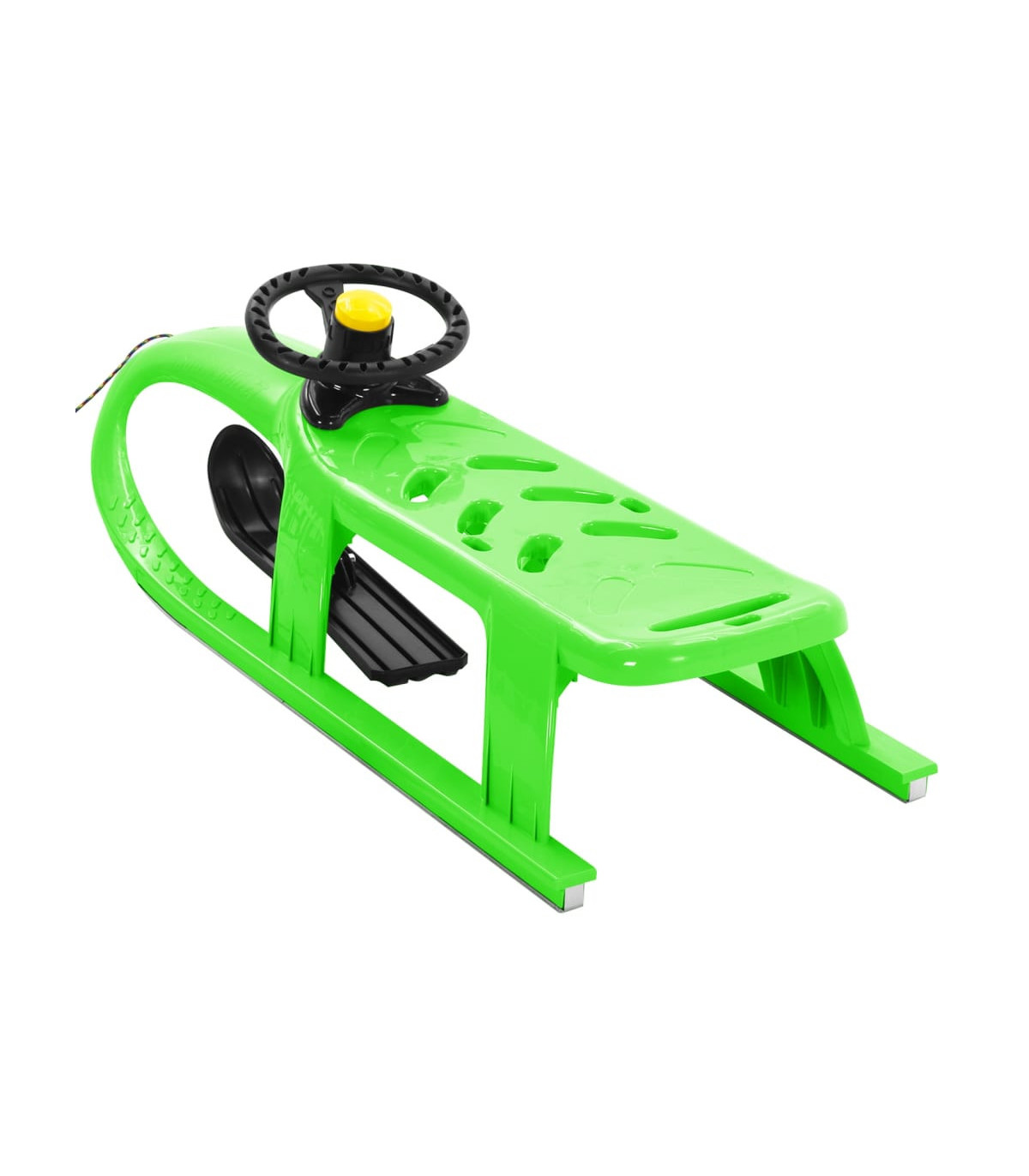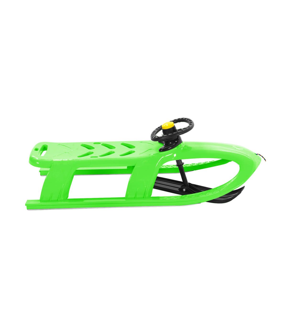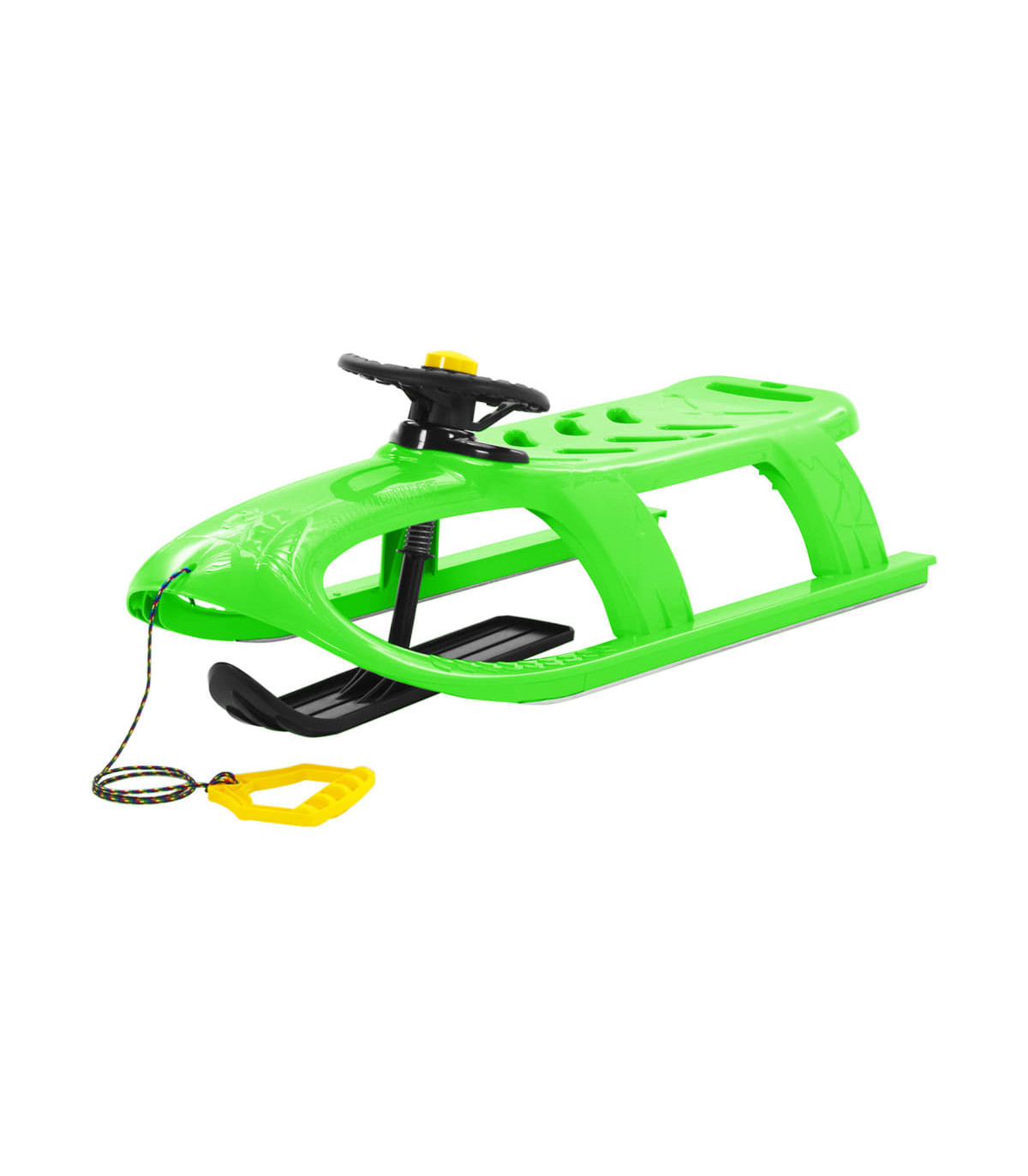 This winter, let your little one enjoy the exciting riding fun with this supercool sledge! Durable PP: Made of weather-resistant polypropylene, the sled is highly resistant to abrasion and low temperature, allowing long-term service.Smooth steel runner: The toboggan is secured with durable steel runners, offering a smooth ride on even the steepest descent.Pull rope: This sleigh is attached with a pull rope, so children can be towed by adults on the flat, snowy ground or enjoy a ride on gentler slopes.Bullet-shape design: This snow sledge, featuring a resistance-reducing bullet design, is fast and excellent for an exciting ride.
