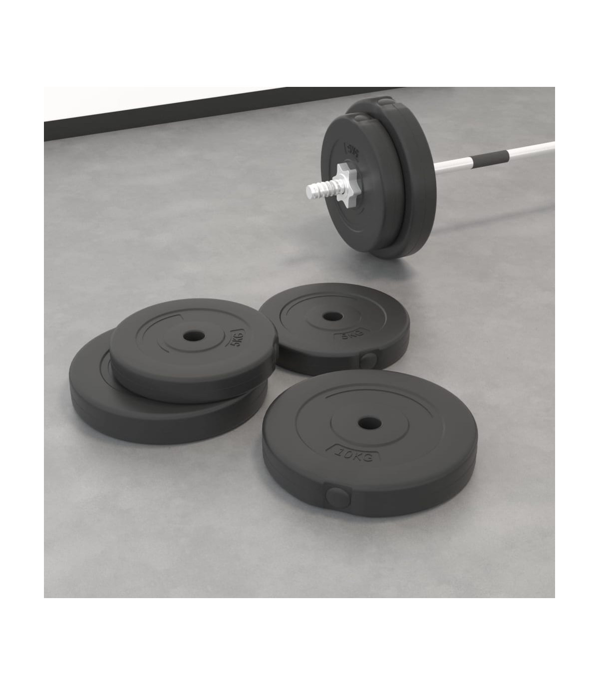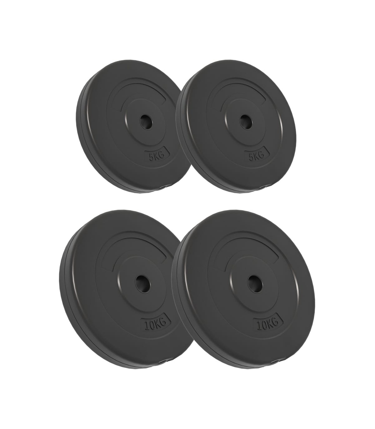 These 4 weight plates are suitable for professional dumbbell workouts at home. The weight plates are covered with robust, floor-friendly plastic. Durable material: The barbell plate is made of cement and covered with robust, floor-friendly plastic. This allows you not to experience any annoying clanging sounds of the weights.Clearly stamped weight: The weight is clearly stamped on each weight disc for quick and easy identification.Variable weight selection: These barbell weight plates consist of 2 different weights: 2 x 10 kg and 2 x 5 kg. The different weight sets always can meet your different training needs.Multifunctional dumbbell: The multifunctional dumbbell weight plate is suitable for training your chest, biceps, arms, triceps, and back muscles. Note:Each product comes with an assembly manual in the box for easy assembly.