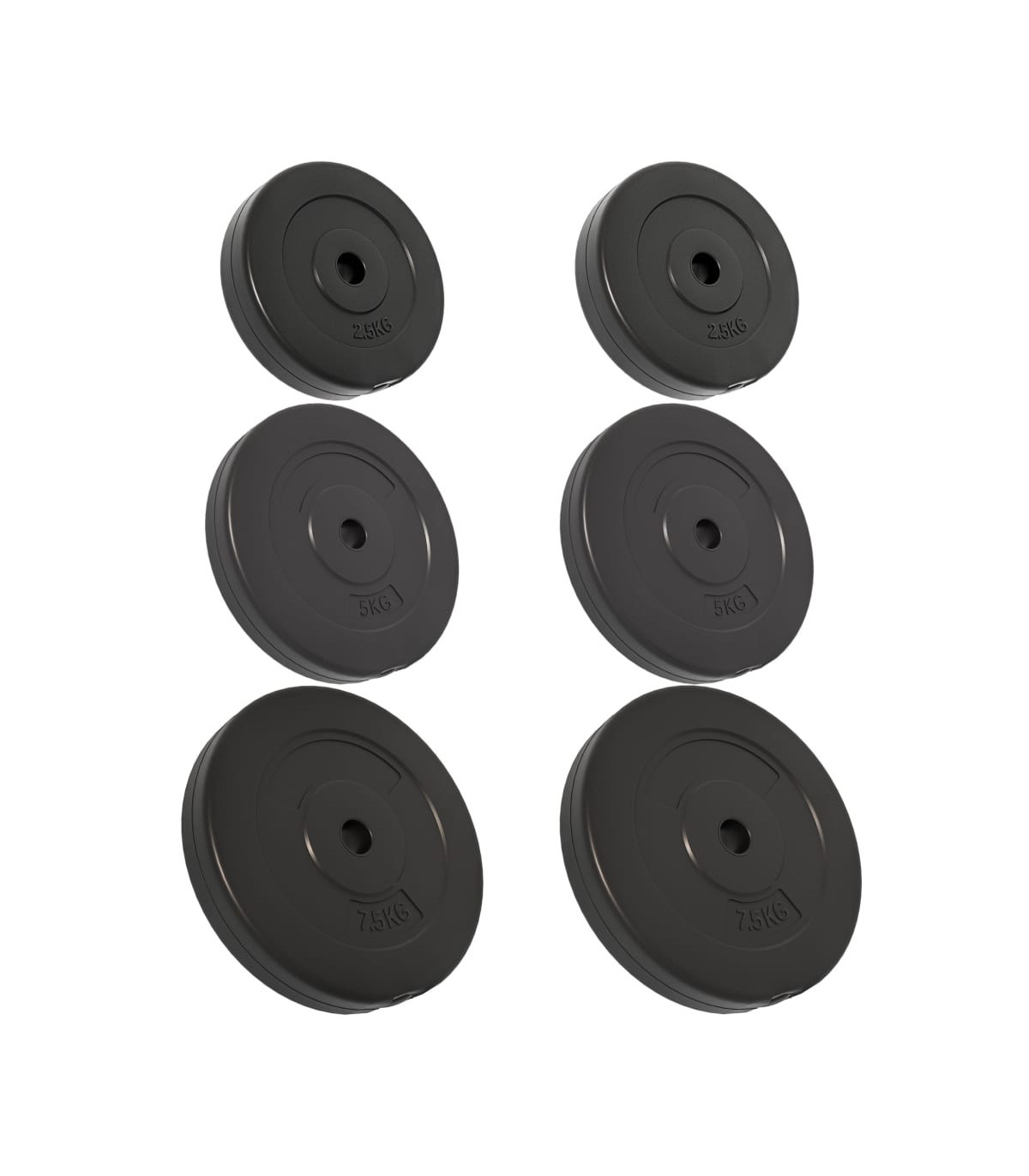 These weight plates are suitable for professional dumbbell workouts at home. The weight plates are covered with robust, floor-friendly plastic. Durable material: The barbell plate is made of cement and covered with robust, floor-friendly plastic. This allows you not to experience any annoying clanging sounds of the weights.Clearly stamped weight: The weight is clearly stamped on each weight disc for quick and easy identification.Variable weight selection: These barbell weight plates consist of 3 different weights: 2 x 2,5 kg, 2 x 5 kg and 2 x 7,5 kg. The different weight sets always can meet your different training needs.Multifunctional dumbbell: The multifunctional dumbbell weight plate is suitable for training your chest, biceps, arms, triceps, and back muscles. Note:Each product comes with an assembly manual in the box for easy assembly.