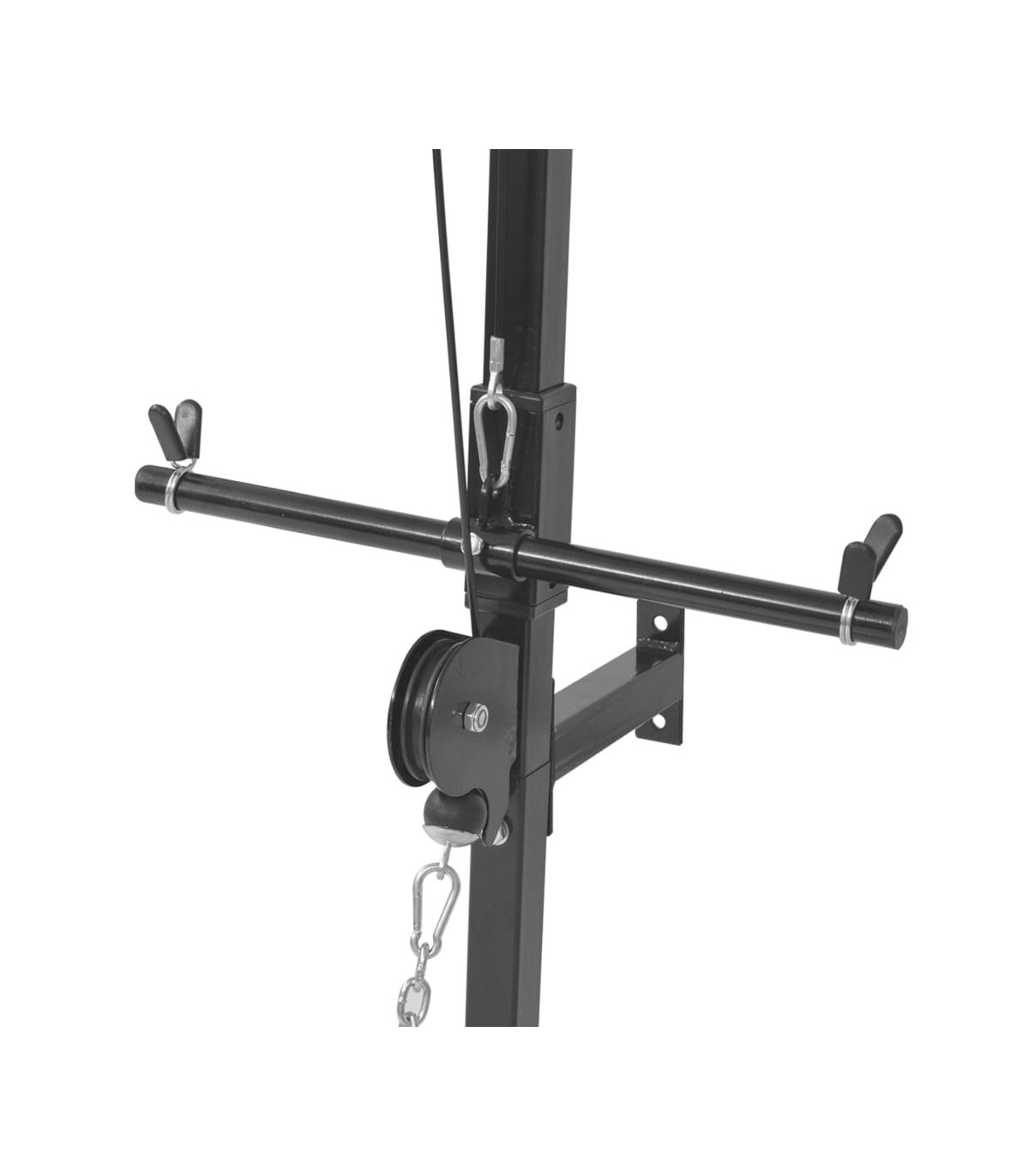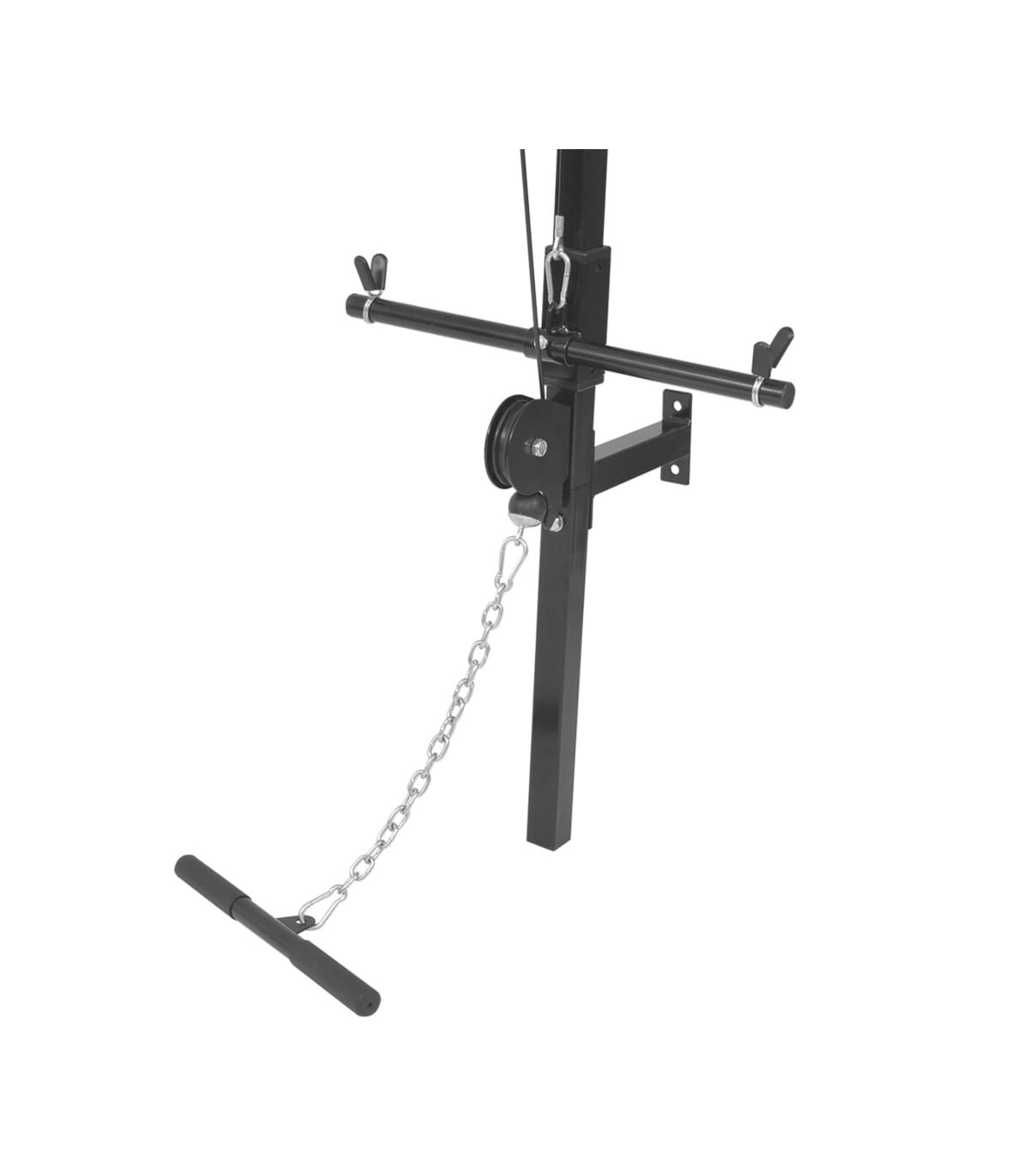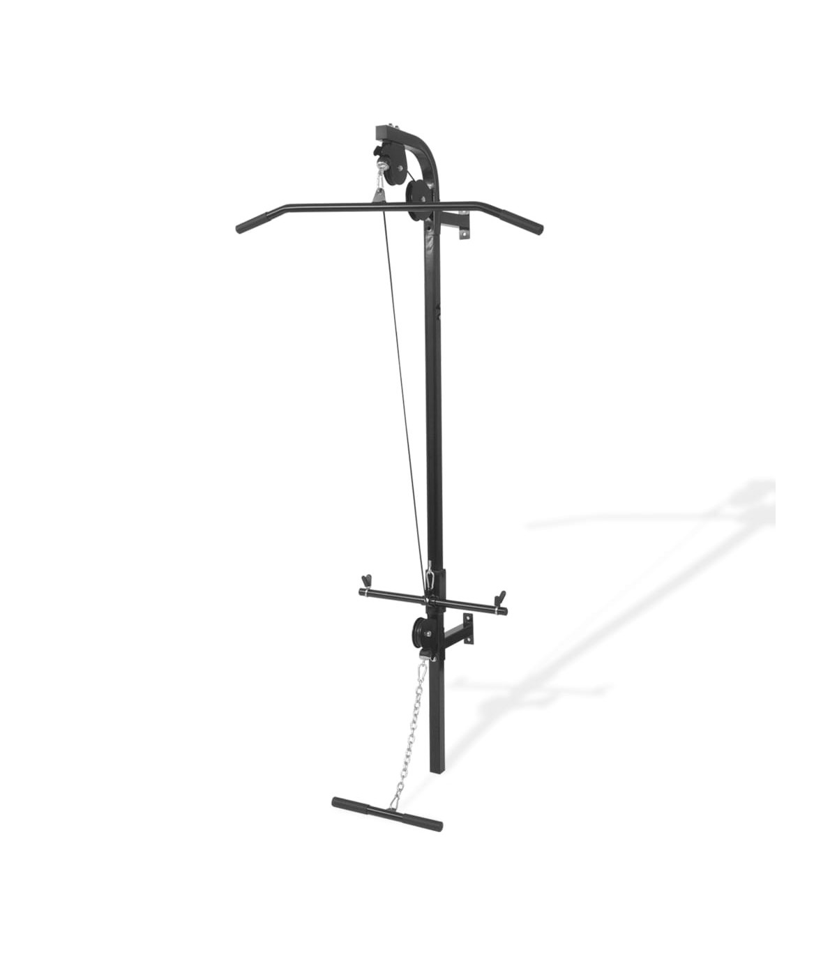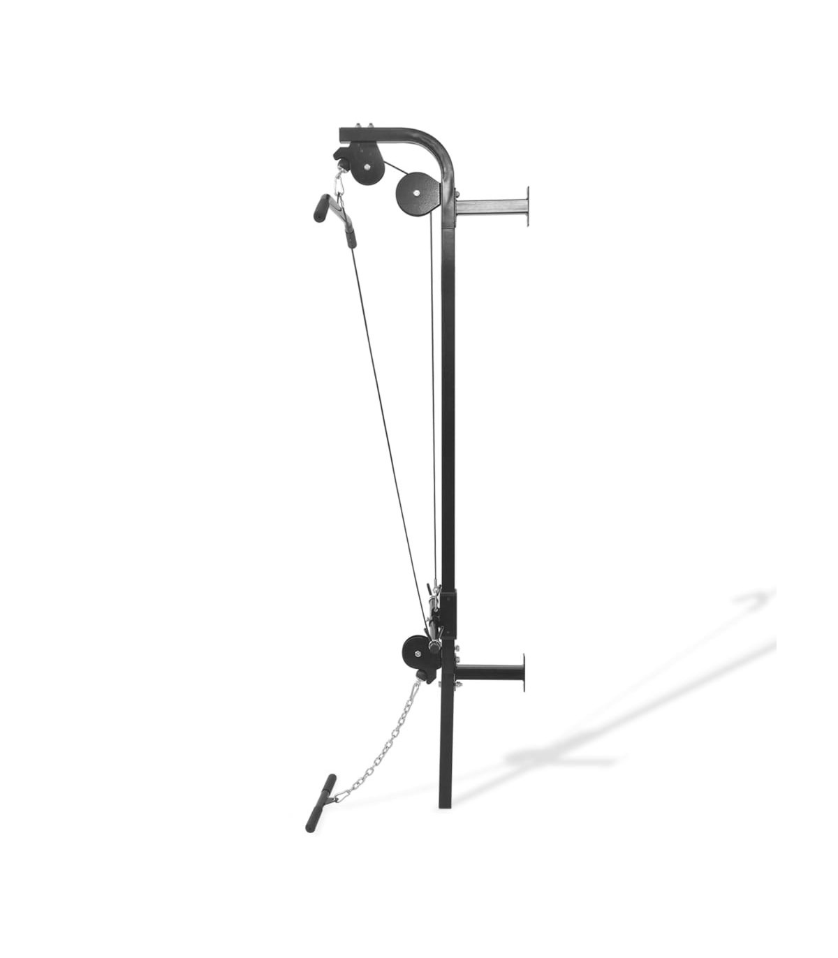 - With a lat pull-down bar and a low pull-up bar