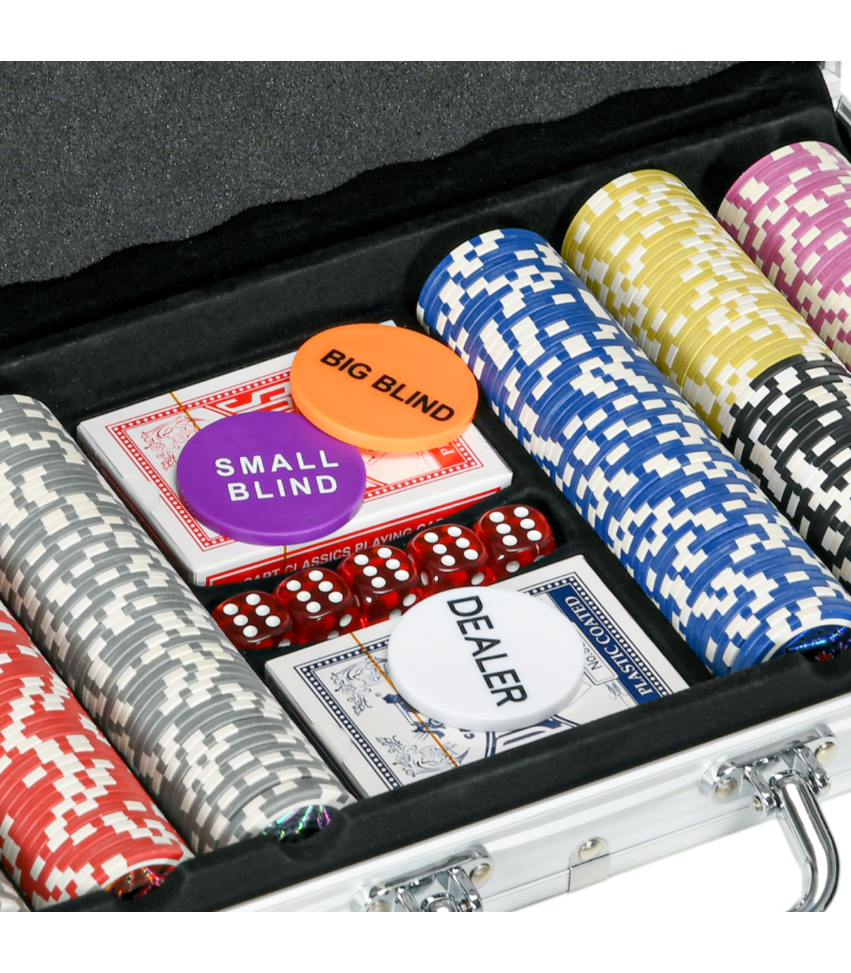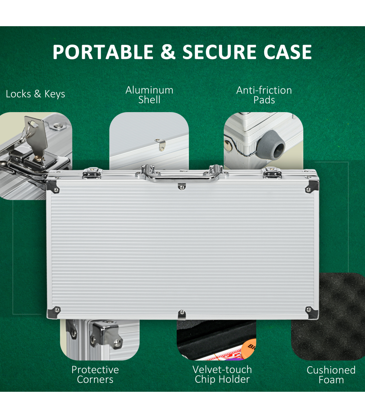 ● Robust aluminium case featuring foam cushioning inserts and velvet-touch chip holder
