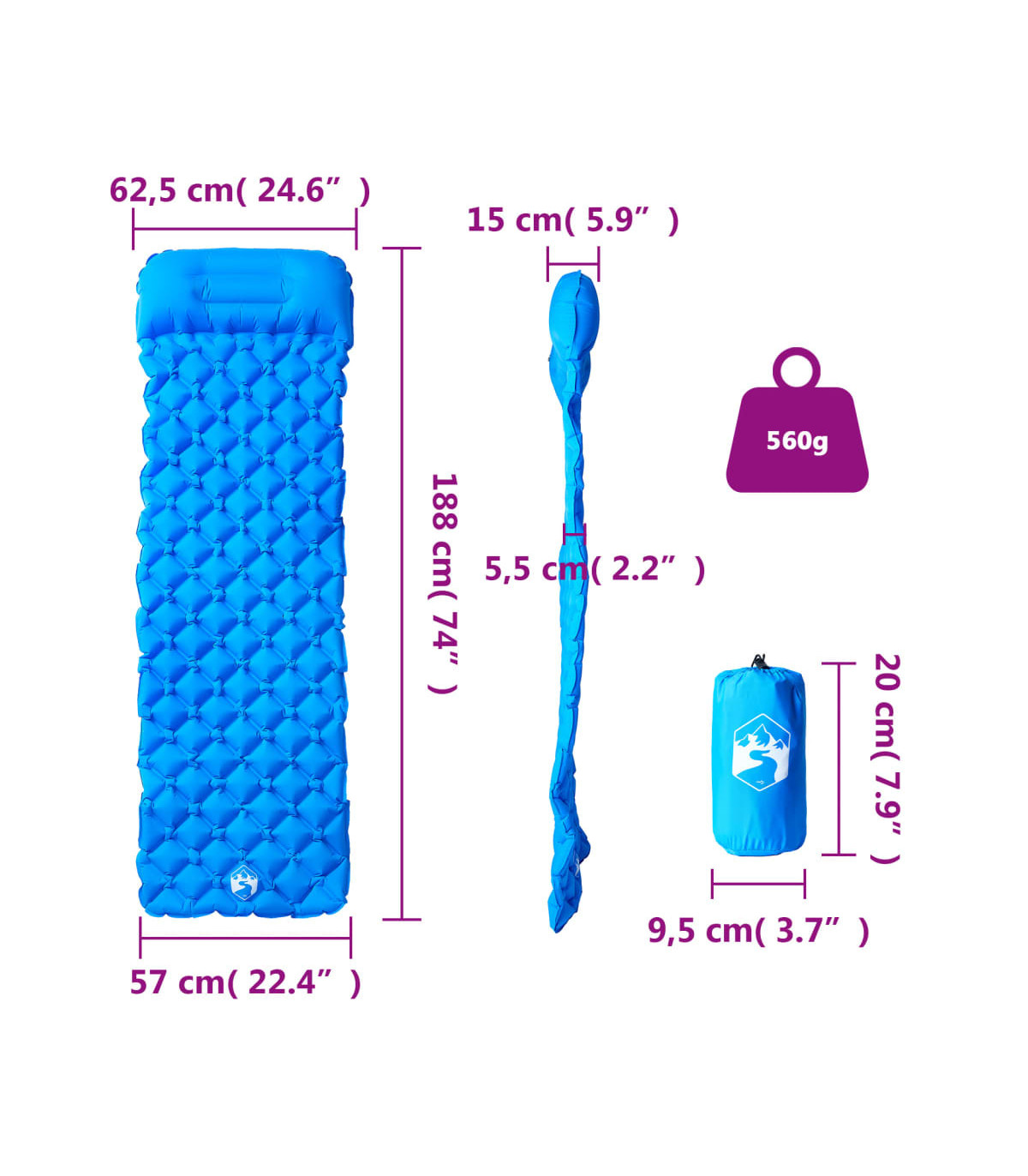 vidaXL Inflating Camping Mattress with Pillow 1-Person Blue