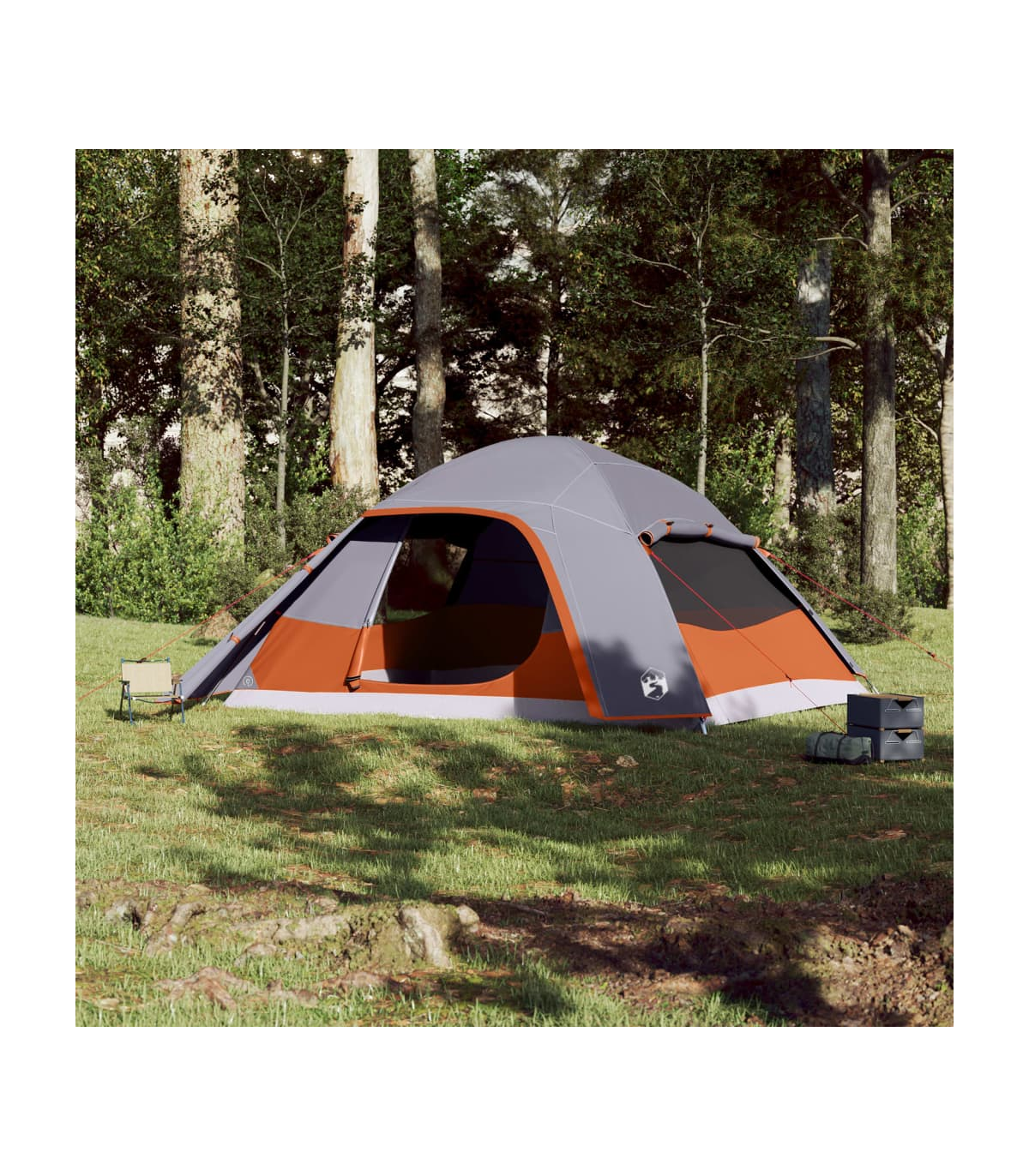 This camping tent with a modern look protects you from the unpleasant weather and provides a comfortable place for anywhere adventures. All-round waterproof design: This camping tent, made from polyester with a PU coating, is waterproof and wind resistant. The taped seams effectively prevent rainwater infiltration, while the heavy-duty ground sheet helps maintain a dry and comfortable interior.Detachable rainfly: The detachable rainfly can be attached to the tent's top for weather protection and privacy.Good ventilation & mosquito protection: The mesh walls not only offer excellent ventilation but also effectively keep insects at bay, ensuring a comfortable and bug-free experience for users.Convenient electrical cord access: The E-port allows you to easily connect an extension cord from an external power source to your tent.Easy setup and takedown: Setting up and taking down the tent is a breeze thanks to the highly flexible and lightweight fibreglass poles and the convenient pin-and-ring connection system. Warning:Keep all flame and heat sources away from this product fabric.