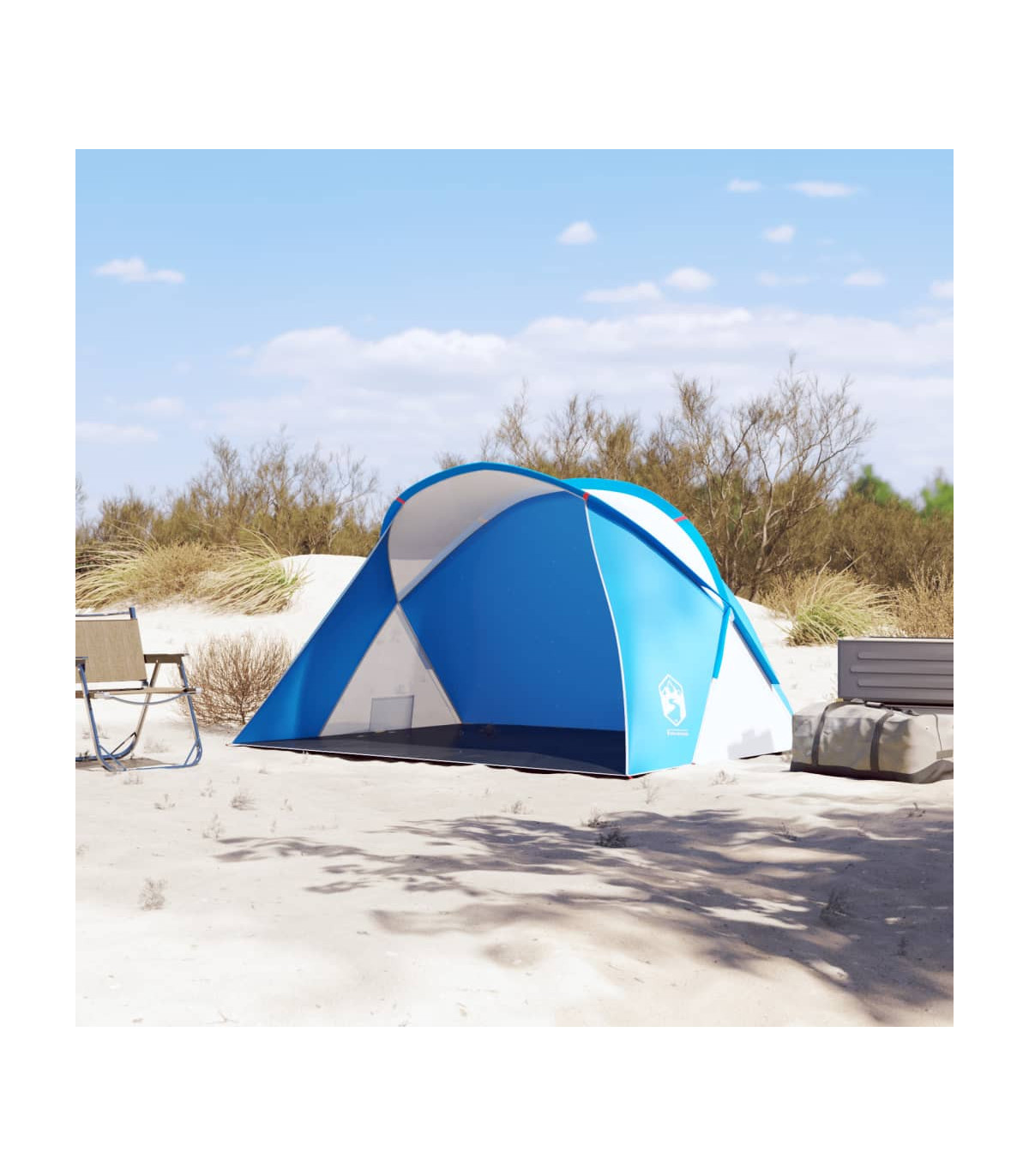 This beach tent offers you and your friends a cosy shelter in the hot summer or use it as a shade over the sandpit and paddling pool. Waterproof: This camping tent, made from polyester with a PU coating, is waterproof and wind resistant.Pop-up design: Thanks to the pop-up design, you can easily set up and fold the tent in seconds. Just take it out of the bag, toss it on the ground, and watch it pop up automatically.Opened door: The fully open door allows you to enjoy the beautiful beach scenery with your family or entertain the children freely on a delightful summer afternoon.Lightweight and portable: The foldable and lightweight design allows you to easily pack the tent and store it in the included carry bag for easy transport.Stable and safe: Secure your tent firmly to the ground with the stakes and guy ropes provided to ensure stability and safety. Warning:Keep all flame and heat sources away from this product fabric.