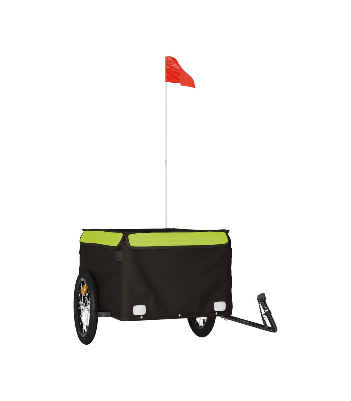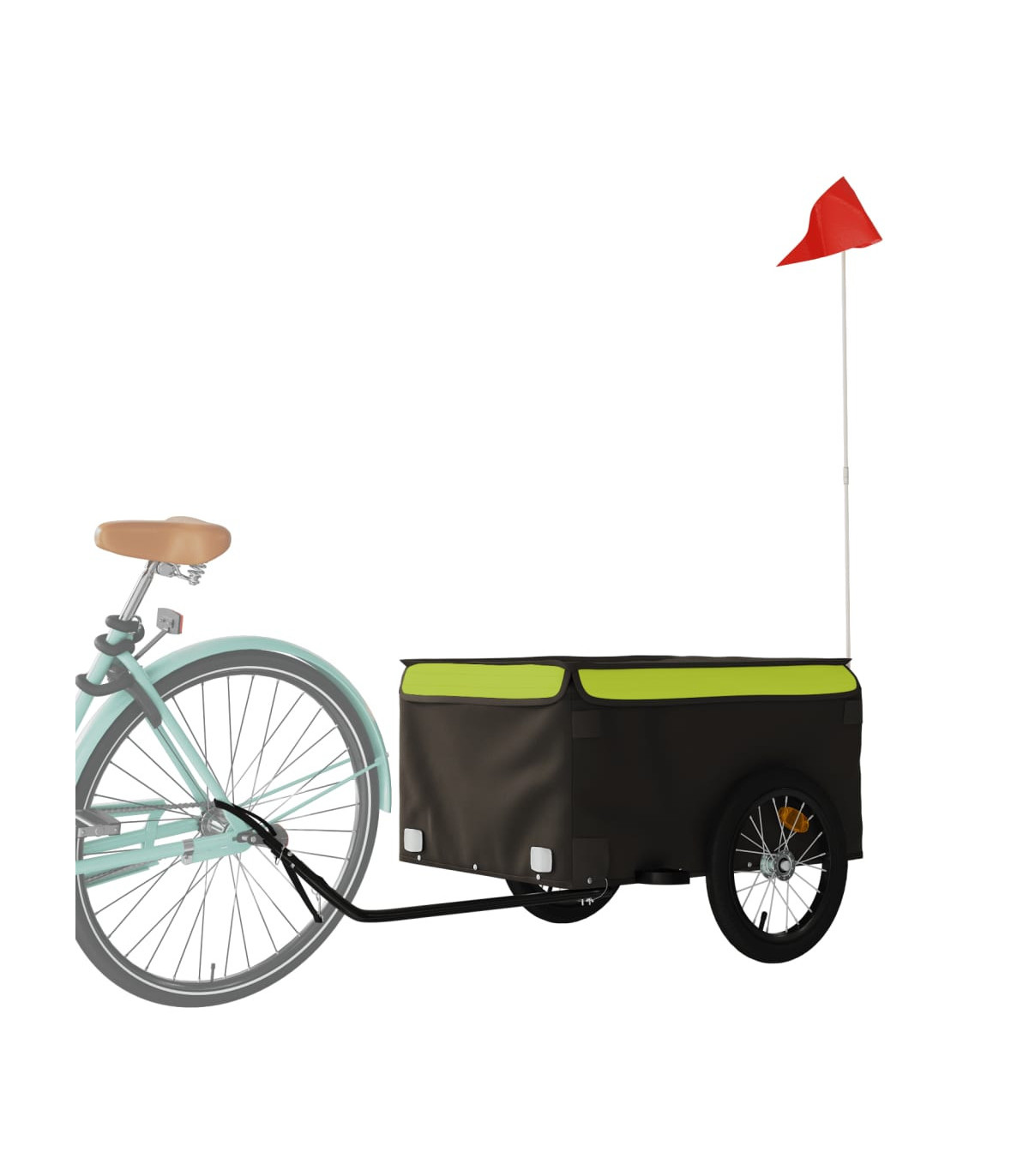 This versatile and sturdy bike trailer will be ideal for transporting heavy goods thanks to its maximum load capacity of 30 kg. Sturdy material: Iron is a strong and hard material. It's a solid favourite in industrial and furniture construction. Made of iron, this bicycle cargo trailer is very sturdy and durable.Practical design: This bike cart with a maximum load capacity of 45 kg, is perfect for hauling heavy goods like luggage, plants, tools or groceries.Considerate design: The bike trailer has a tow bar that makes it easy to connect it to a bicycle. At the same time, a safety flag is included for extra visibility.