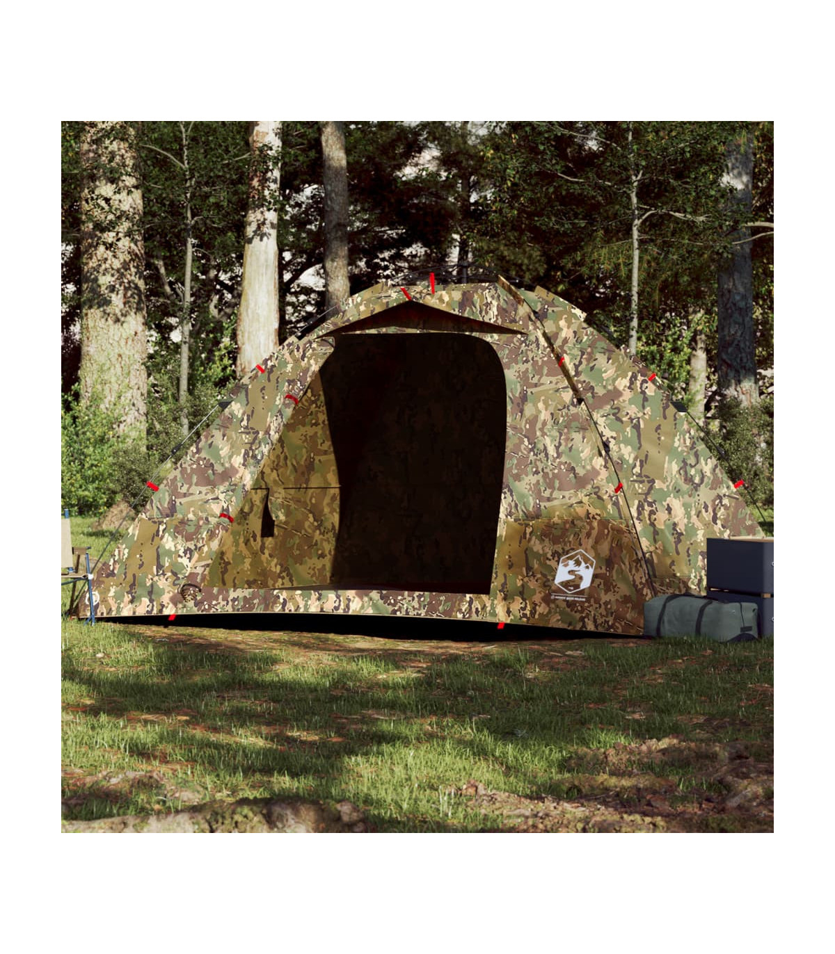 This fishing tent is perfect for creating some shade and protection from the sun's harmful UV rays when fishing. All-round waterproof design: This camping tent, made from polyester with a PU coating, is waterproof and wind resistant. The taped seams effectively prevent rainwater infiltration, while the heavy-duty ground sheet helps maintain a dry and comfortable interior.Quick-release system: Set up the tent effortlessly with the quick-release system! Lay the tent down, extend the pre-assembled poles until they lock into place, and you're all set!Easy access: The zippered door allows for easy access. You can roll it up and secure it with the door toggles. It also promotes airflow and provides ample natural light.Convenient electrical cord access: The E-port allows you to easily connect an extension cord from an external power source to your tent.Lightweight and portable: The foldable and lightweight design allows you to easily pack the tent and store it in the included carry bag for easy transport. Warning:Keep all flame and heat sources away from this product fabric.
