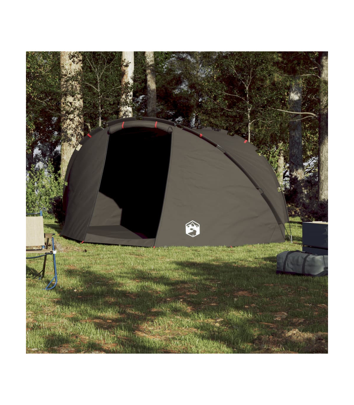 This fishing tent is perfect for creating some shade and protection from the sun's harmful UV rays when fishing. All-round waterproof design: This camping tent, made from polyester with a PU coating, is waterproof and wind resistant. The taped seams effectively prevent rainwater infiltration, while the heavy-duty ground sheet helps maintain a dry and comfortable interior.Easy access: The zippered door allows for easy access. You can roll it up and secure it with the door toggles. It also promotes airflow and provides ample natural light.Stable and safe: Secure your tent firmly to the ground with the stakes and guy ropes provided to ensure stability and safety.Lightweight and portable: The foldable and lightweight design allows you to easily pack the tent and store it in the included carry bag for easy transport.Easy setup and takedown: Setting up and taking down the tent is a breeze thanks to the highly flexible and lightweight fibreglass poles and the convenient pin-and-ring connection system. Warning:Keep all flame and heat sources away from this product fabric.