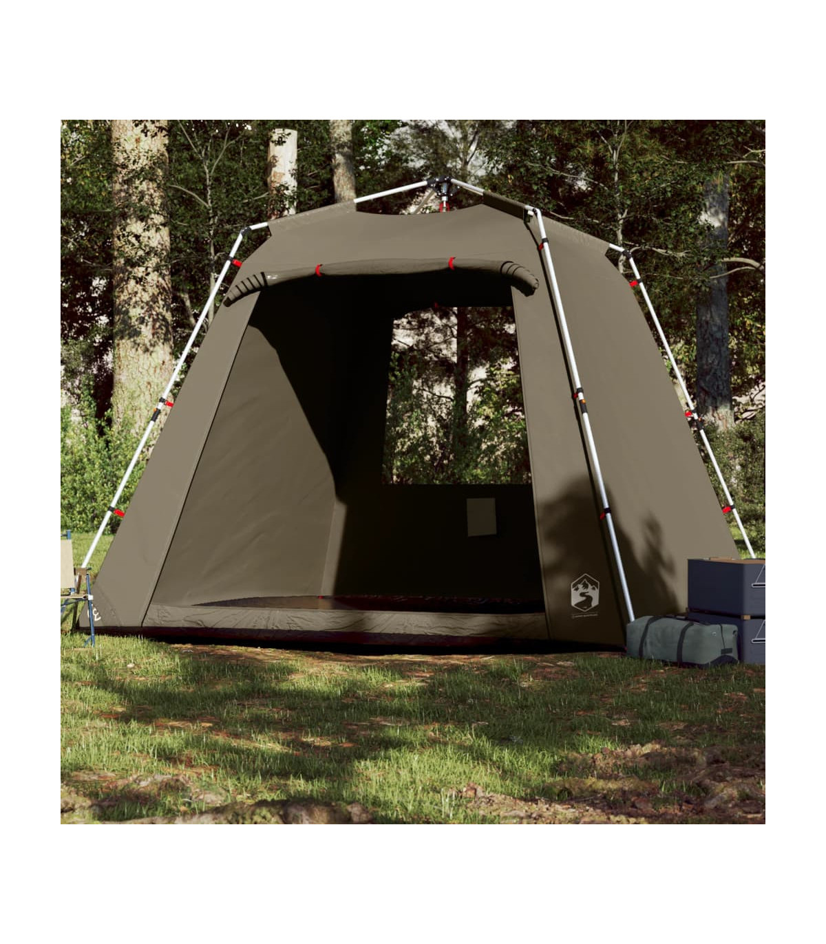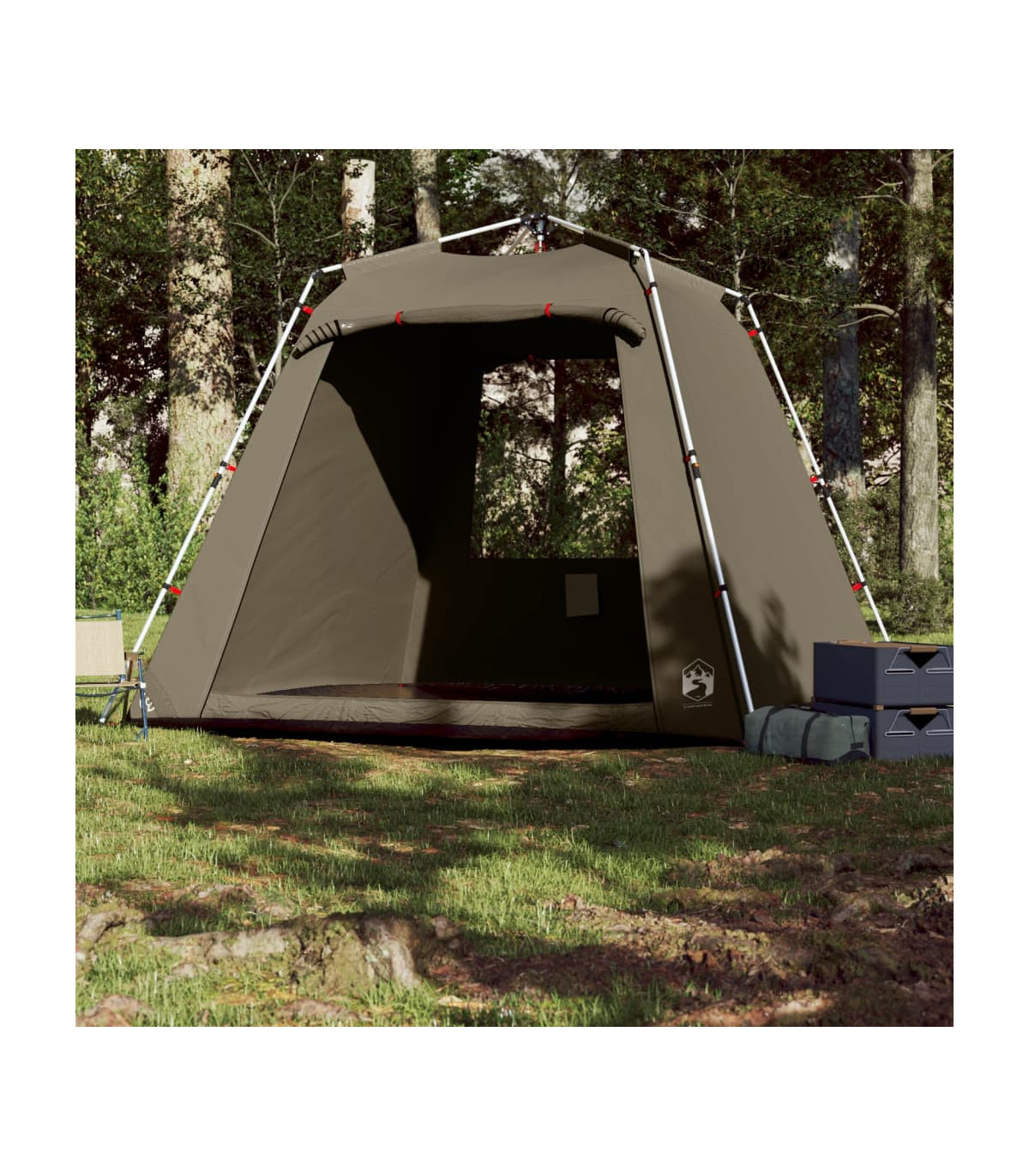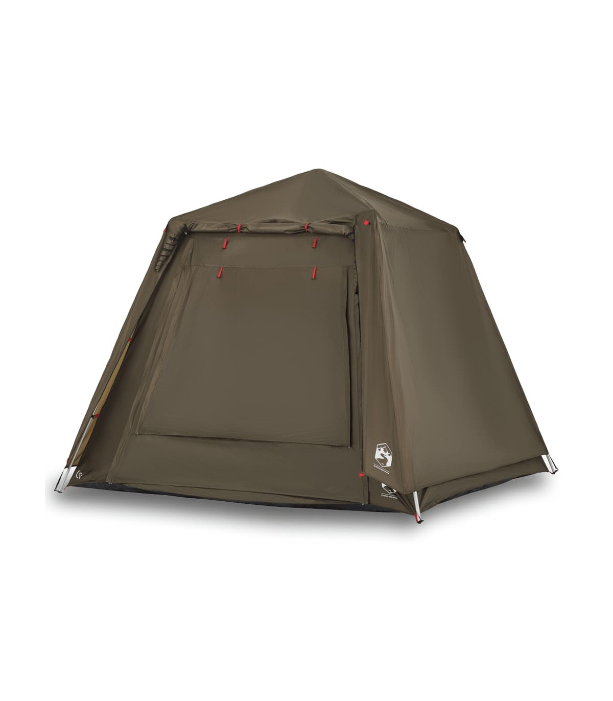 This fishing tent is perfect for creating some shade and protection from the sun's harmful UV rays when fishing. All-round waterproof design: This camping tent, made from polyester with a PU coating, is waterproof and wind resistant. The taped seams effectively prevent rainwater infiltration, while the heavy-duty ground sheet helps maintain a dry and comfortable interior.Quick-release system: Set up the tent effortlessly with the quick-release system! Lay the tent down, extend the pre-assembled poles until they lock into place, and you're all set!Easy access: The zippered door allows for easy access. You can roll it up and secure it with the door toggles. It also promotes airflow and provides ample natural light.Convenient electrical cord access: The E-port allows you to easily connect an extension cord from an external power source to your tent.Lightweight and portable: The foldable and lightweight design allows you to easily pack the tent and store it in the included carry bag for easy transport. Warning:Keep all flame and heat sources away from this product fabric.