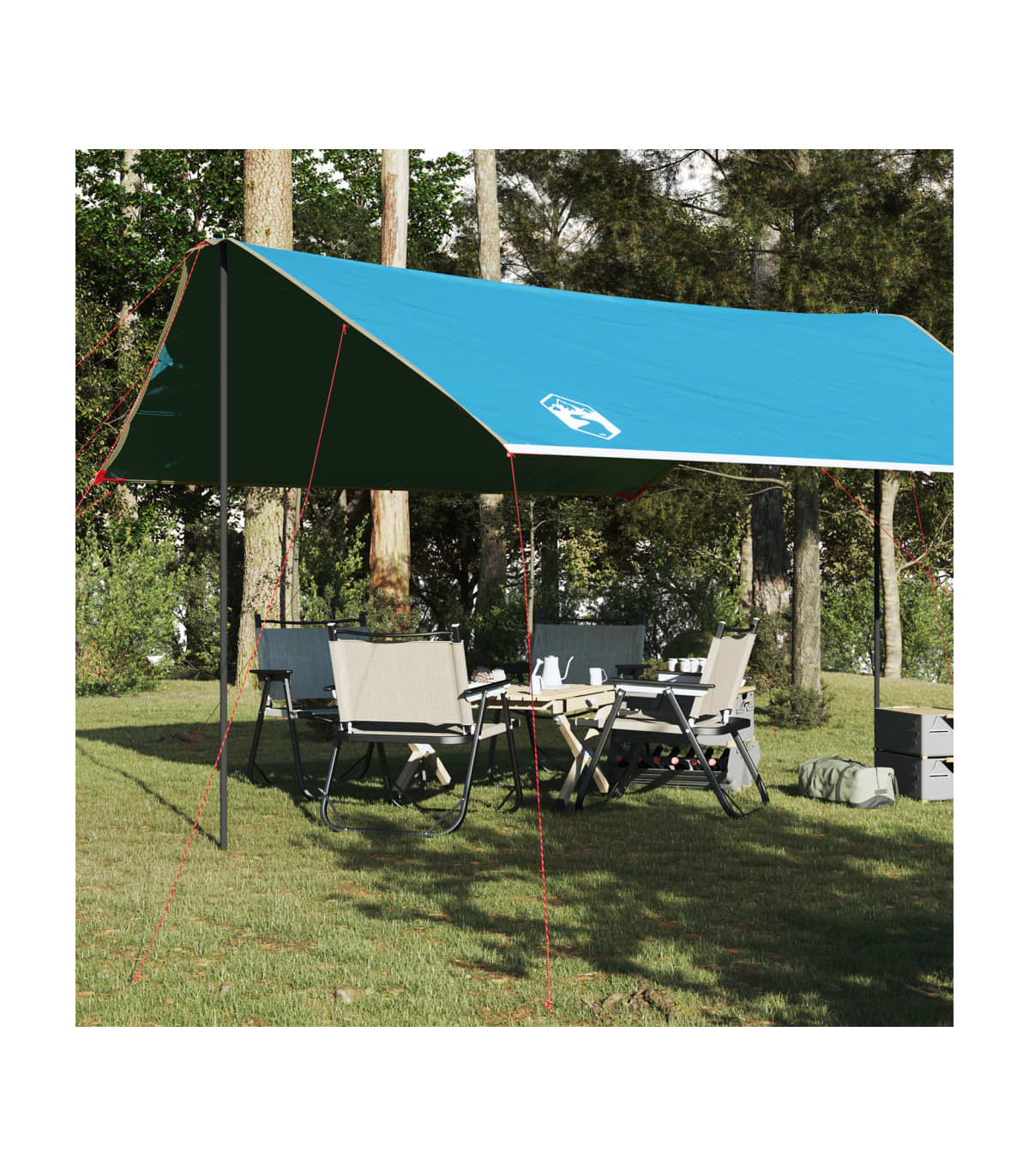 This camping tarp is an irreplaceable companion for your outdoor and trekking tours. Durable taffeta material: This tarp is made from taffeta fabric with a PU coating#is waterproof and wind resistant. Also#the taped seams effectively prevent rainwater infiltration#helping maintain a dry and comfortable interior. Multi-functional: This tarp is versatile. It can serve as a camping tarp or a ground sheet#thanks to the grommets at each corner. Lightweight and portable: The foldable and lightweight design allows you to easily pack the tent tarp and store it in the included carry bag for easy transport. Standing poles for extra support: This tarp is equipped with two standing poles#so you can easily use it outdoors even without tree support. Warning:Keep all flame and heat sources away from this product fabric.