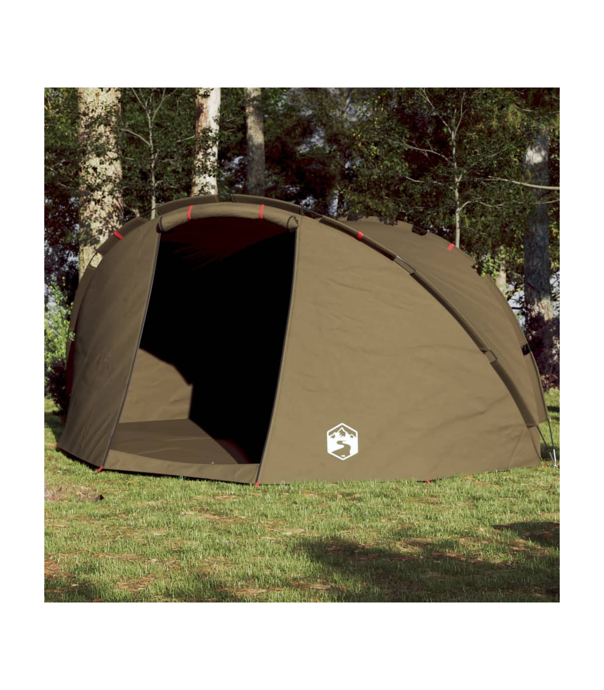 This fishing tent is perfect for creating some shade and protection from the sun's harmful UV rays when fishing. All-round waterproof design: This camping tent, made from polyester with a PU coating, is waterproof and wind resistant. The taped seams effectively prevent rainwater infiltration, while the heavy-duty ground sheet helps maintain a dry and comfortable interior.Easy access: The zippered door allows for easy access. You can roll it up and secure it with the door toggles. It also promotes airflow and provides ample natural light.Stable and safe: Secure your tent firmly to the ground with the stakes and guy ropes provided to ensure stability and safety.Lightweight and portable: The foldable and lightweight design allows you to easily pack the tent and store it in the included carry bag for easy transport.Easy setup and takedown: Setting up and taking down the tent is a breeze thanks to the highly flexible and lightweight fibreglass poles and the convenient pin-and-ring connection system. Warning:Keep all flame and heat sources away from this product fabric.