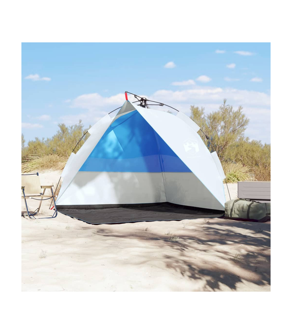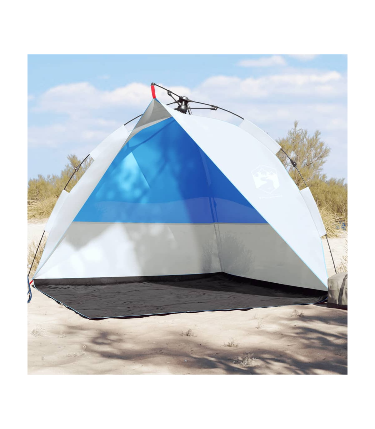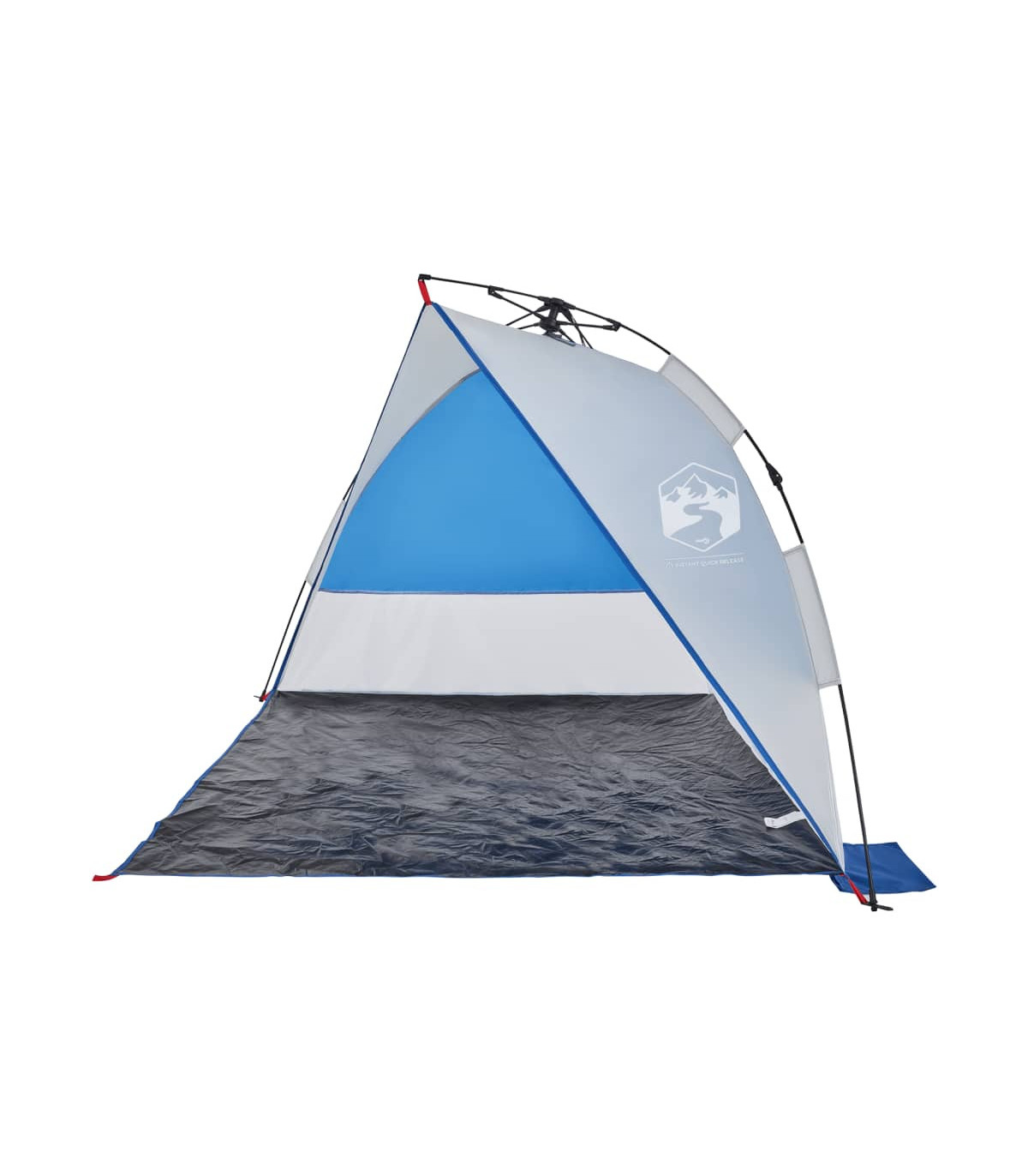 This beach tent offers you and your friends a cosy shelter in the hot summer or use it as a shade over the sandpit and paddling pool. Waterproof: This camping tent, made from polyester with a PU coating, is waterproof and wind resistant.Quick-release system: Set up the tent effortlessly with the quick-release system! Lay the tent down, extend the pre-assembled poles until they lock into place, and you're all set!Opened door: The fully open door allows you to enjoy the beautiful beach scenery with your family or entertain the children freely on a delightful summer afternoon.Lightweight and portable: The foldable and lightweight design allows you to easily pack the tent and store it in the included carry bag for easy transport. Warning:Keep all flame and heat sources away from this product fabric.