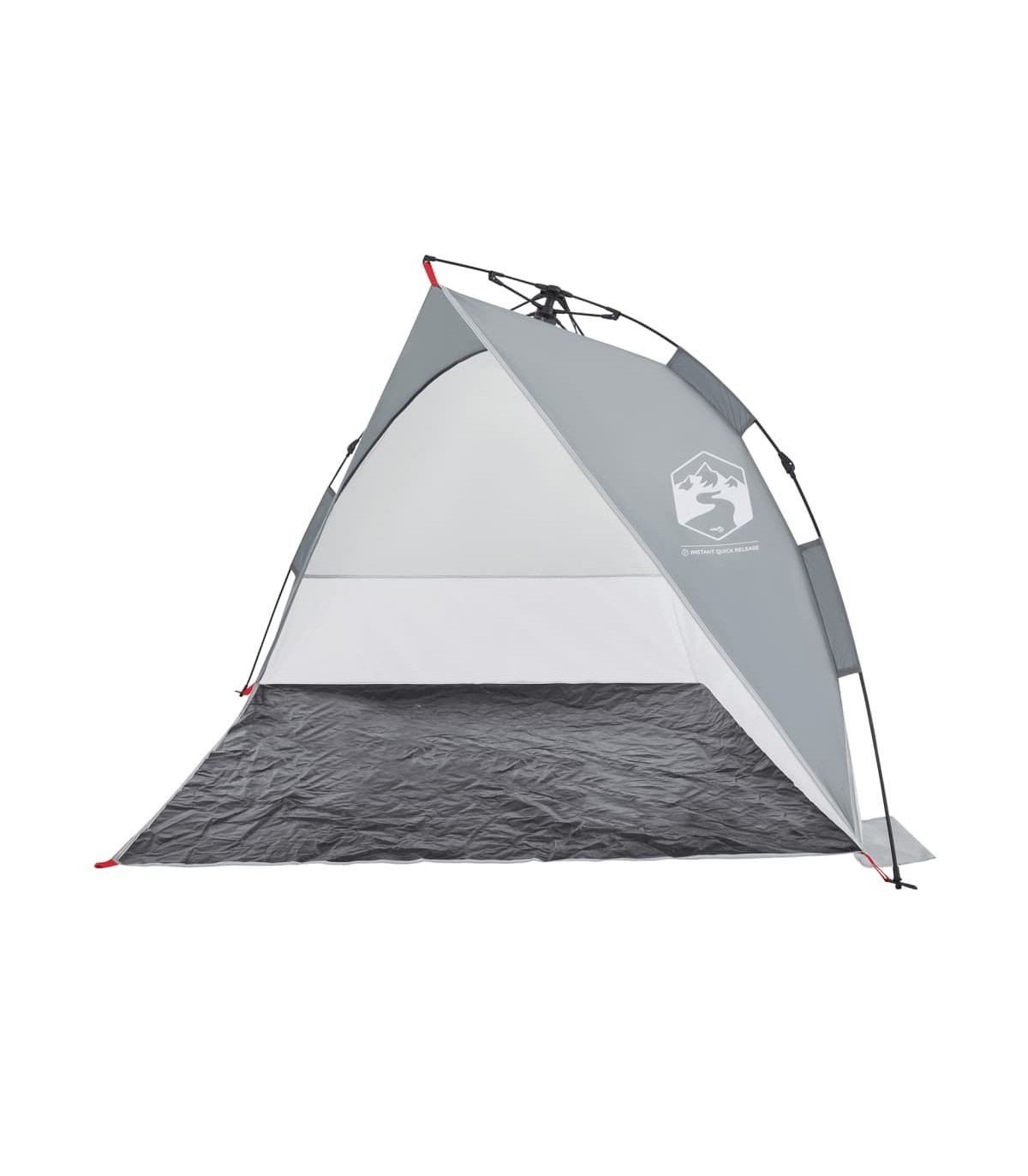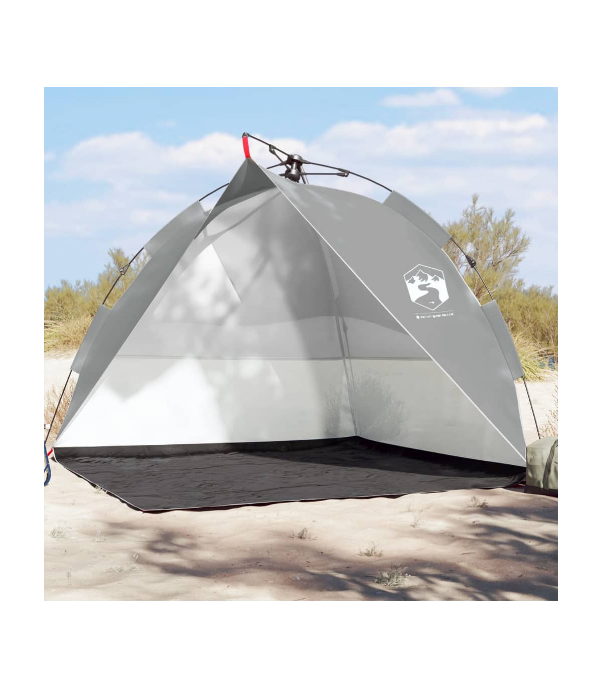 This beach tent offers you and your friends a cosy shelter in the hot summer or use it as a shade over the sandpit and paddling pool. Waterproof: This camping tent, made from polyester with a PU coating, is waterproof and wind resistant.Quick-release system: Set up the tent effortlessly with the quick-release system! Lay the tent down, extend the pre-assembled poles until they lock into place, and you're all set!Opened door: The fully open door allows you to enjoy the beautiful beach scenery with your family or entertain the children freely on a delightful summer afternoon.Lightweight and portable: The foldable and lightweight design allows you to easily pack the tent and store it in the included carry bag for easy transport. Warning:Keep all flame and heat sources away from this product fabric.