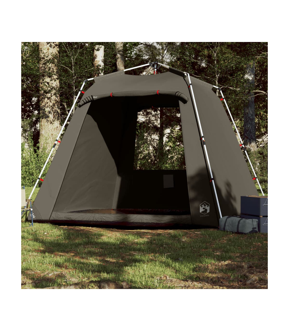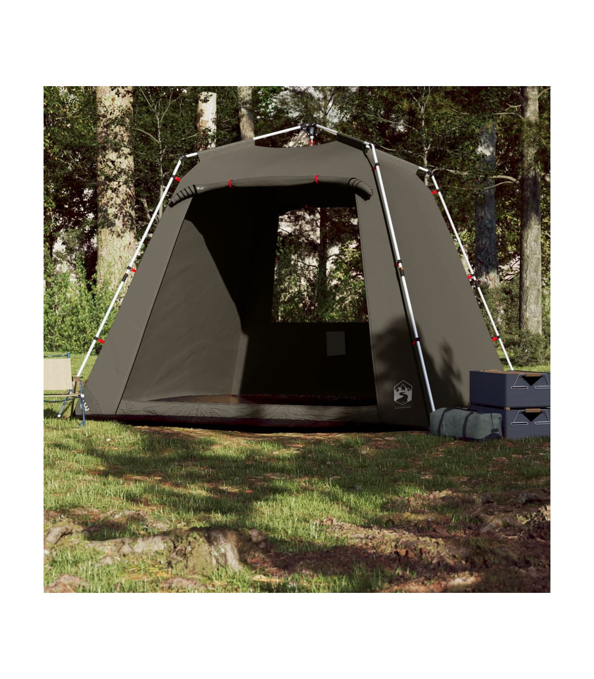 This fishing tent is perfect for creating some shade and protection from the sun's harmful UV rays when fishing. All-round waterproof design: This camping tent, made from polyester with a PU coating, is waterproof and wind resistant. The taped seams effectively prevent rainwater infiltration, while the heavy-duty ground sheet helps maintain a dry and comfortable interior.Quick-release system: Set up the tent effortlessly with the quick-release system! Lay the tent down, extend the pre-assembled poles until they lock into place, and you're all set!Easy access: The zippered door allows for easy access. You can roll it up and secure it with the door toggles. It also promotes airflow and provides ample natural light.Convenient electrical cord access: The E-port allows you to easily connect an extension cord from an external power source to your tent.Lightweight and portable: The foldable and lightweight design allows you to easily pack the tent and store it in the included carry bag for easy transport. Warning:Keep all flame and heat sources away from this product fabric.