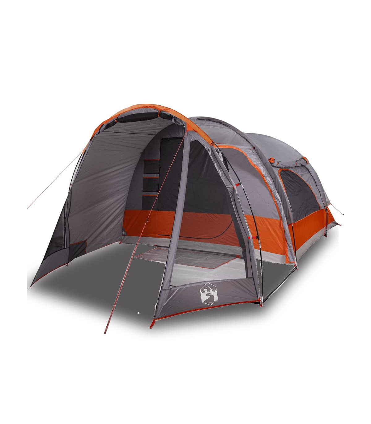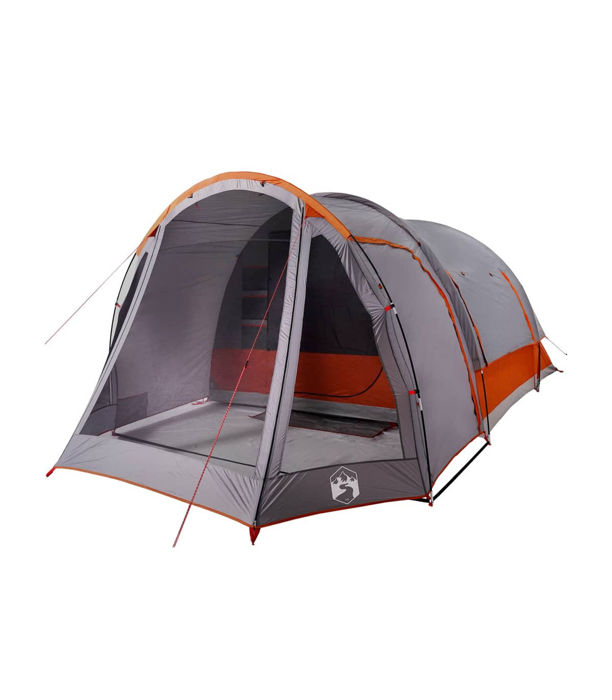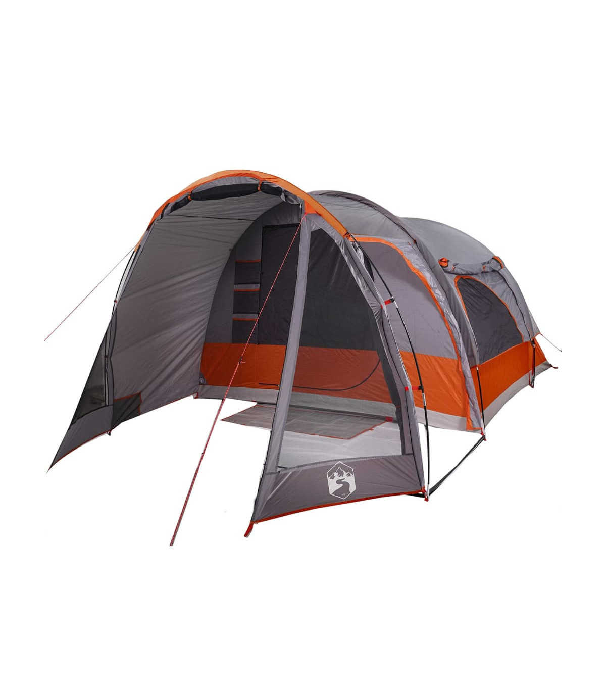 This family tent with a modern look protects you from the unpleasant weather and provides a comfortable place for anywhere adventures. All-round waterproof design: This camping tent, made from polyester with a PU coating, is waterproof and wind resistant. The taped seams effectively prevent rainwater infiltration, while the heavy-duty ground sheet helps maintain a dry and comfortable interior.Easy setup and takedown: Setting up and taking down the tent is a breeze thanks to the highly flexible and lightweight fibreglass poles and the convenient pin-and-ring connection system.Easy access: The zippered door allows for easy access. You can roll it up and secure it with the door toggles. It also promotes airflow and provides ample natural light.Convenient electrical cord access: The E-Port allows you to easily connect an extension cord from an external power source to your tent.Lightweight and portable: The foldable and lightweight design allows you to easily pack the tent and store it in the included carry bag for easy transport. Warning:Keep all flame and heat sources away from this product fabric.